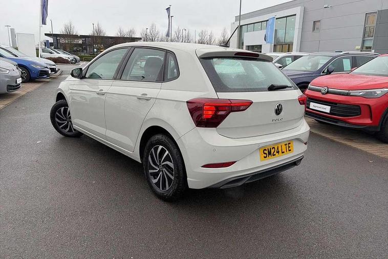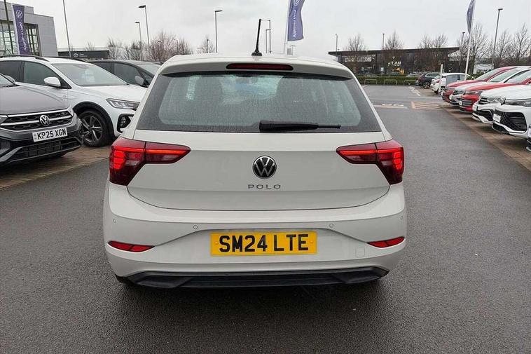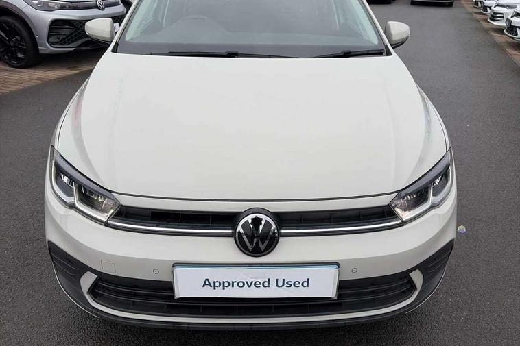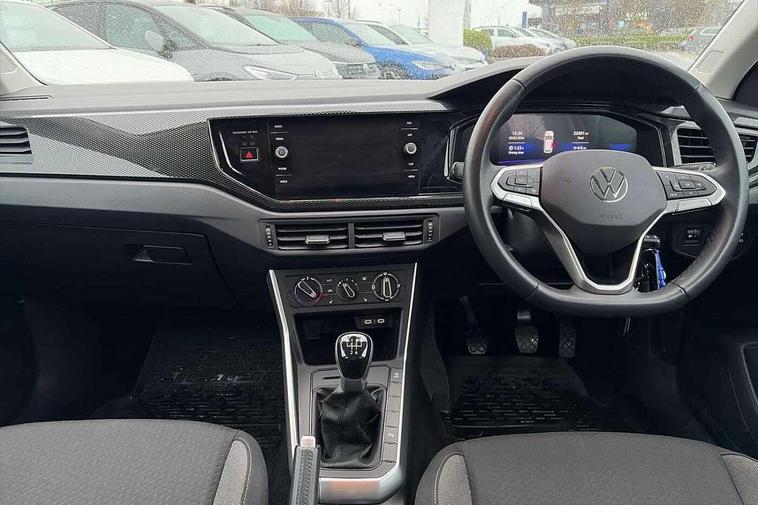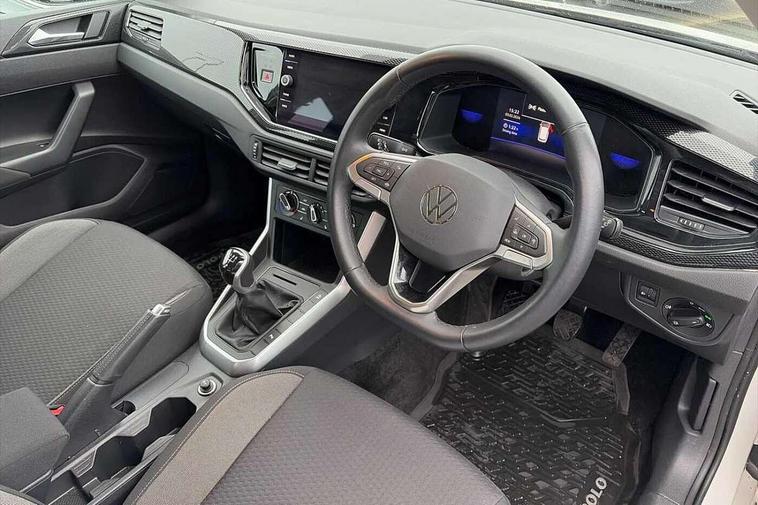 Advanced driver attention and drowsiness monitor, Bluetooth mobile phone interface, Cruise control + speed limiter, Dynamic road sign display, Emergency call service, Lane keeping system Lane Assist, Power assisted speed sensitive steering, Preparation for navigation system with media and internet package, Preparation for We connect and We connect plus, Speedo and rev counter, electronic odometer, trip, service interval display and exterior temperature gauge, Standard rear axle, Trip computer, Warning signal and warning light for front and rear seatbelts not fastened, Washer fluid level indicator, Wireless app connect, Front wheel drive, Rear shock absorpion, Start-stop system with battery regeneration (recuperation - energy recovery during braking), DAB Digital radio, Diversity antenna for FM reception, Front and rear 6 speakers, Automatic dimming interior rear view mirror, Automatic headlight control with LED separate daytime running lights with coming/leaving home function, Body colour bumpers with chrome inserts, Body colour door handles, Body colour door mirrors, Electric front windows, Engine badge deletion, Headlight range adjustment, Heat insulating and laminated safety glass windshield, Heat insulating darkened glass in side and rear windows, Heat insulating glass windscreen, LED Headlights, LED rear combination lamps, Power folding adjustable/heated exterior mirrors and front passenger exterior mirror lowering function, Rain sensor, Rear electric windows, Rear fog light, Rear side wing doors, Rear windscreen washer and wiper with interval delay, Third brake light, 12V power socket in centre console, 2 front and 2 rear reading lights with switch off delay and dimmer, 2 USB-C ports in the front, 2 USB-C charging sockets on the center console in the rear, 3 rear head restraints, 60/40 split folding rear seat and rear seat bench not split, Ceramique roof lining, Chrome plated radiator grille inserts, air vent surrounds and light switch surrounds, Door and side trim panel, Driver and front passenger seat height adjustment, Driver/passenger sunvisors with illuminated vanity mirrors, Front centre armrest, Front seat backrest storage pockets, Front standard seats, Handbrake lever handle in leather, Hartley/Thomas cloth upholstery, Headliner in recycled material, Isofix child seat preparation easy-fit (for two outer rear seats, and front passenger seat) compatible with I-size, Leather trimmed gear knob, Luggage compartment cover, Luggage compartment lighting, Removable luggage compartment floor, Single front passenger seat, Standard climatic zones, Standard pedal cluster, Three spoke leather wrapped multifunction steering wheel, Light and vision pack - Polo, 3 point height adj front seatbelts + pretensioners, 3x3 point rear seatbelts, ABS, Driver and front passenger airbag with front passenger airbag deactivation, Drivers and front passengers safety optimised head restraints, ESC (Electronic stability control) + EDL (Electronic Differntial lock) and ASR (Traction control), Extended and predictive pedestrian/ cyclist protection, Front assist with autonomous emergency braking (for Adaptive Cruise Control ACC up to 130 mph), Front curtain and side airbags with center airbag, Front disc brakes, Hill hold control, Manual child lock in rear doors, Rear drum brakes, Single tone horn, Tyre pressure loss indicator, Alarm with interior protection, Anti-theft alarm system with interior monitoring, backup horn, and towing protection, Anti-theft wheel bolts, Electronic engine immobiliser, Lava stone black gloss/matt decorative inserts in dash and front door panels, Low rolling resistance tyres,