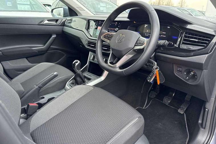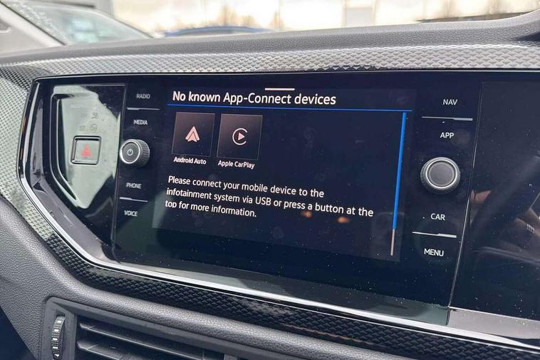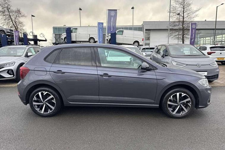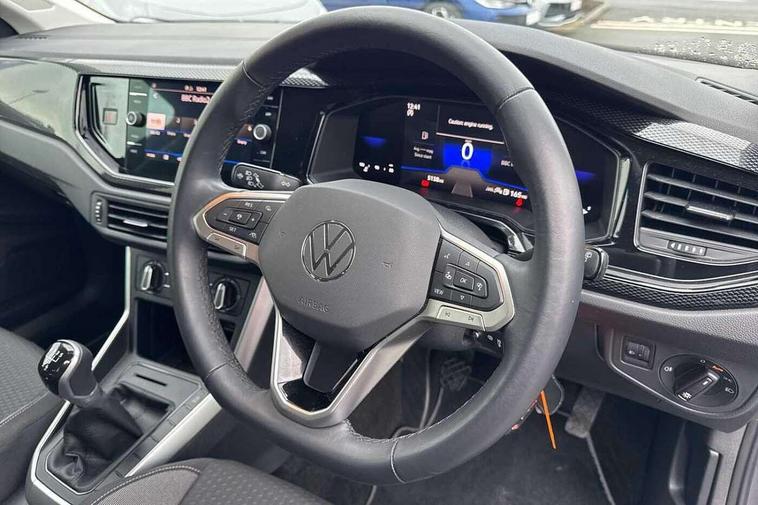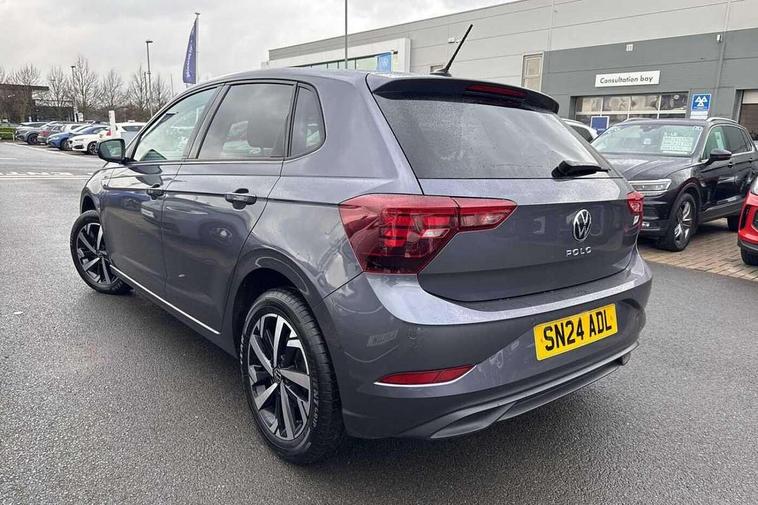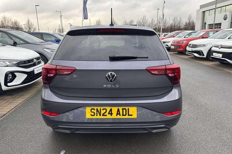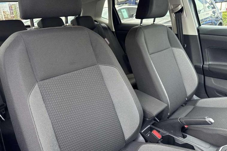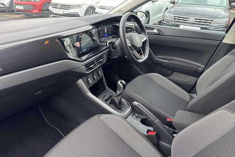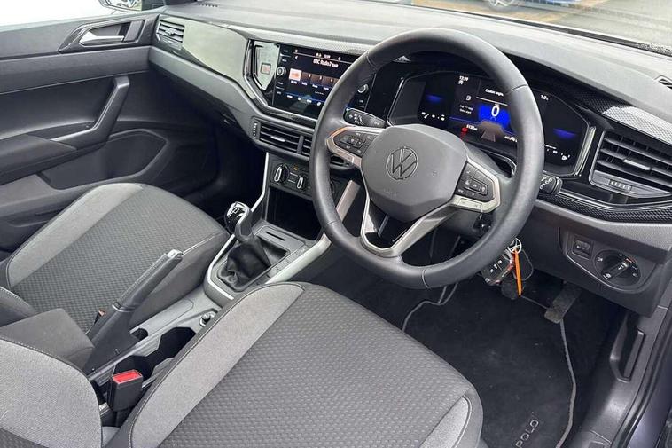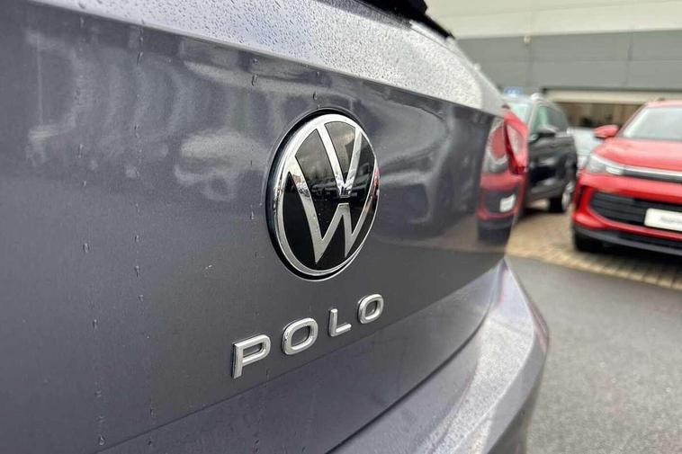 Adaptive cruise control without follow-to-stop and speed limiter, Advanced driver attention and drowsiness monitor, Bluetooth mobile phone interface, Dynamic road sign display, Emergency call service, Mobile phone preparation with inductive charging function, Multifunction front facing camera for distance control, Park distance control, Power assisted speed sensitive steering, Preparation for navigation system with media and internet package, Preparation for We connect and We connect plus, Rear view camera, Speedo and rev counter, electronic odometer, trip, service interval display and exterior temperature gauge, Standard rear axle, Travel Assist - Lane keeping system and traffic jam assist, Travel assist including emergency assist, Trip computer, Warning signal and warning light for front and rear seatbelts not fastened, Washer fluid level indicator, Wireless app connect, Front wheel drive, Rear shock absorpion, Start-stop system with battery regeneration (recuperation - energy recovery during braking), DAB Digital radio, Diversity antenna for FM reception, Front and rear 6 speakers, Automatic dimming interior rear view mirror, Automatic headlight control with LED separate daytime running lights with coming/leaving home function, Body colour bumpers with chrome inserts, Body colour door handles, Body colour door mirrors, Electric front windows, Engine badge deletion, Headlight range adjustment, Heat insulating and laminated safety glass windshield, Heat insulating darkened glass in side and rear windows, LED Headlights, LED rear combination lamps, Power folding adjustable/heated exterior mirrors and front passenger exterior mirror lowering function, Rain sensor, Rear electric windows, Rear fog light, Rear side wing doors, Rear tinted glass from B-pillar backwards approx 65% tinted, Rear windscreen washer and wiper with interval delay, Removable/lockable towbar, Third brake light, 12V power socket in centre console, 2 front and 2 rear reading lights with switch off delay and dimmer, 2 USB-C ports in the front, 2 USB-C charging sockets on the center console in the rear, 3 rear head restraints, 60/40 split folding rear seat and rear seat bench not split, Ceramique roof lining, Chrome plated radiator grille inserts, air vent surrounds and light switch surrounds, Door and side trim panel, Driver and front passenger seat height adjustment, Driver/passenger sunvisors with illuminated vanity mirrors, Front centre armrest, Front seat backrest storage pockets, Front standard seats, Handbrake lever handle in leather, Hartley/Thomas cloth upholstery, Headliner in recycled material, Isofix child seat preparation easy-fit (for two outer rear seats, and front passenger seat) compatible with I-size, Leather trimmed gear knob, Luggage compartment cover, Luggage compartment lighting, Removable luggage compartment floor, Single front passenger seat, Standard climatic zones, Standard pedal cluster, Three spoke leather wrapped multifunction steering wheel, Light and vision pack - Polo, 3 point height adj front seatbelts + pretensioners, 3 point seat belt for centre rear seat, 3 point seatbelts, outer rear with ECE lable, ABS, Driver and front passenger airbag with front passenger airbag deactivation, Drivers and front passengers safety optimised head restraints, ESC (Electronic stability control) + EDL (Electronic Differntial lock) and ASR (Traction control), Extended and predictive pedestrian/ cyclist protection, Front assist with autonomous emergency braking (for Adaptive Cruise Control ACC up to 130 mph), Front curtain and side airbags with center airbag, Front disc brakes, Hill hold control, Manual child lock in rear doors, Rear drum brakes, Single tone horn, Tyre pressure loss indicator, Alarm with interior protection, Anti-theft alarm system with interior monitoring, backup horn, and towing protection, Anti-theft wheel bolts, Electronic engine immobiliser, Lava stone black gloss/matt decorative inserts in dash and front door panels, 16" Torsby alloy wheels, Low rolling resistance tyres,