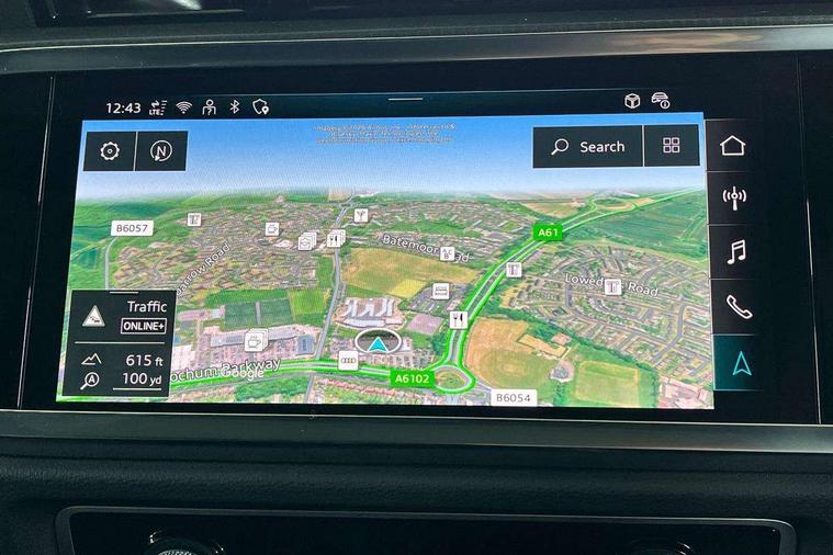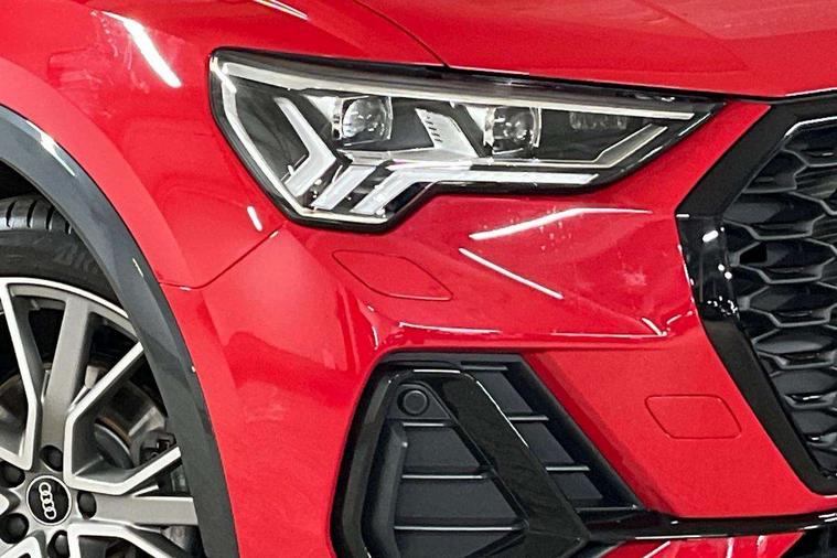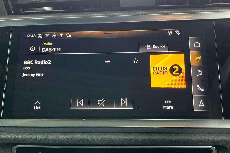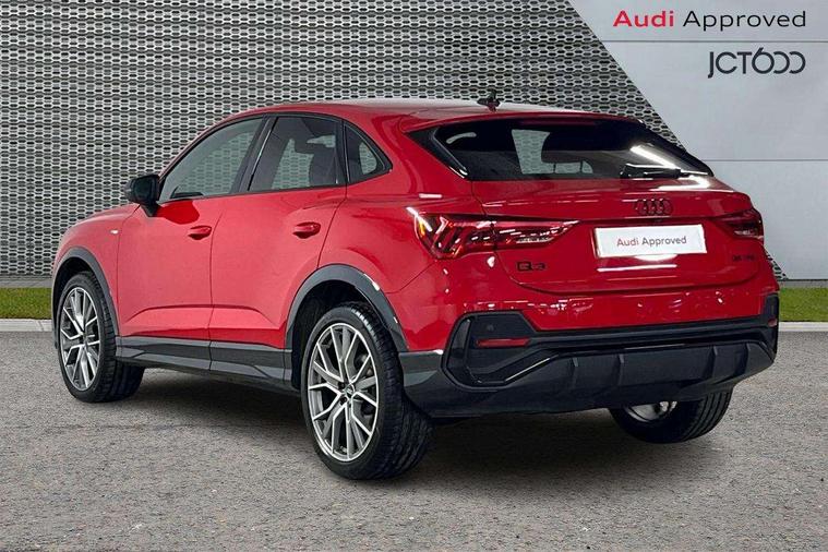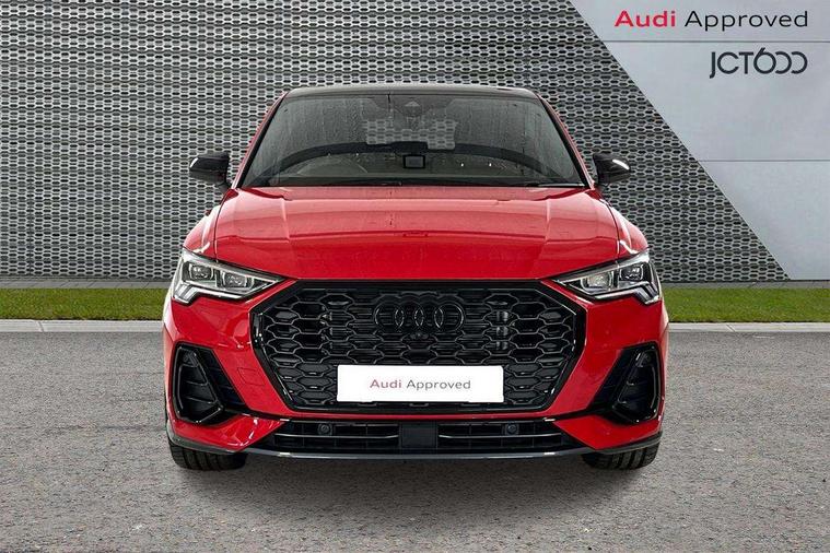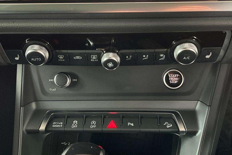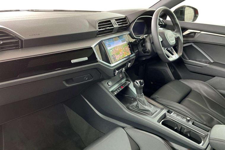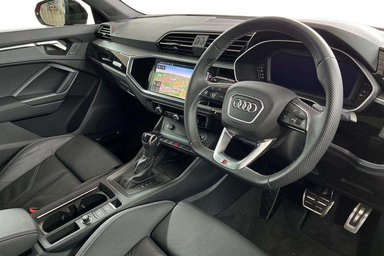Audi connect safety and service, Audi drive select, Audi lane departure warning, Audi Virtual Cockpit - 10.25" display, Bluetooth interface, Camera based traffic sign recognition, Distraction and Fatigue warning, Legal emergency call, MMI Navigation Plus with high resolution 10.1 inch touchscreen colour display, Power operated tailgate, Progressive steering, Service interval indicator, Smartphone interface includes wireless Apple carplay/Android Auto, Start stop system with recuperation, Voice control system with natural language interaction, Sports suspension, 2 USB-C ports with charge and data functions, 6 passive loudspeakers, DAB digital radio module, Acoustic windscreen, Audi Beam uses LEDs to project the Audi logo onto the ground as you exit your Q3, Auto dimming door mirrors, Auto dimming frameless rear view mirror, Electrically folding, adjustable and heated door mirrors with integrated LED side indicators and kerb view function for passenger side, Front and rear electric windows, Front fog lights, Front underbody protection in manhattan grey paint finish, High gloss black finish B and C pillars, Honeycomb design radiator grille in matt anthracite black, LED Dynamic rear indicators, LED headlights with LED daytime running lights, LED rear lights, LED third brake light, Privacy glass dark tinted rear and rear-side windows (from B-pillar backwards), Rain and light sensors, Rear diffuser grille in grained matt black, Rear diffuser strip in matt anthracite black, Rear side wing doors, Rear underbody protection in matt black, Rear wiper, S line front and rear bumpers and side skirts in contrasting Manhattan grey paint finish, Variable front intermittent wipers, 12V socket in rear centre console, 3 seat bench in 2nd row, 40:20:40 folding with manual adjustment for 60:40 forwards/backwards position and backrest angle, Adjustable rear seat bench/backrest with centre armrest and cupholder, Black carpet mats, Black cloth headlining, Dual zone electronic climate control, Electric lumbar support, Front and rear black floor mats with contrast stitching in rock grey, Front and rear headrests, Front centre armrest, Height and reach adjustable steering wheel, Illuminated door sill trims with S logo, ISOFIX child seat mounting for front passenger with airbag deactivation and outer rear seat including top tether attachment point for outer rear seats, Luggage compartment sill protection in stainless steel, Manual front seats with height adjustment, Perforated leather gearknob, Single front passenger seat, Stainless steel pedals, Twin leather upholstery with front sport seats + S embossing, Black styling pack - Q3, Non smoking pack - Q3, 3x3 point rear seatbelts, 6 airbags - Driver, front passenger, curtain and side windows, Audi pre-sense front with pedestrain and cyclist recognition, Electrically operated child locks on rear doors, Electromechanical parking brake, Electronic stabilisation control including ABS, ASR and EDL, Front seatbelt reminder, Hill descent control, Hill hold assist, Pre sense basic, Seatbelt monitoring, Tyre pressure warning, Warning triangle and first aid kit, Anti theft wheel bolts, Immobiliser, Remote central locking, Thatcham approved category 1 anti theft alarm, Aluminium look interior elements, Detail dashboard around MMI touch colour display in glass look, black with surround in aluminium look, Leatherette door armrest, Piano black inlay,