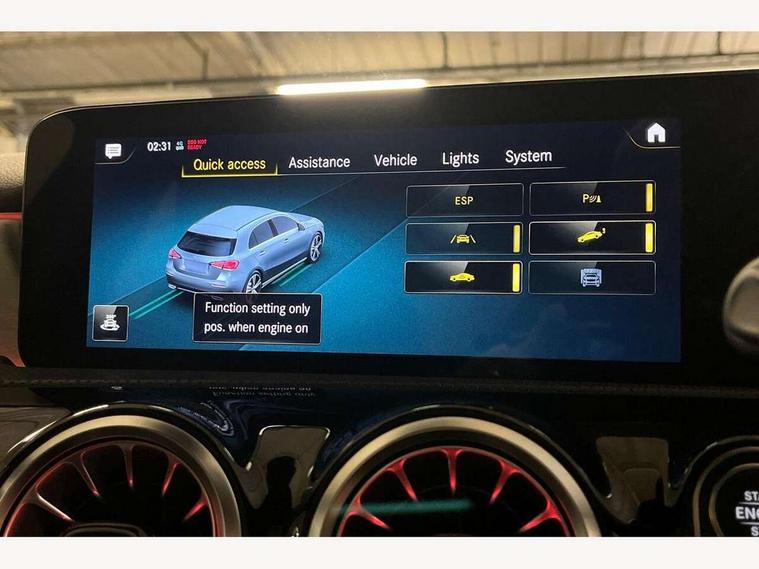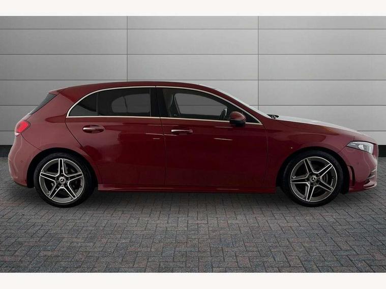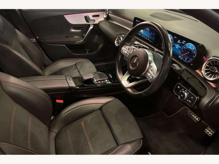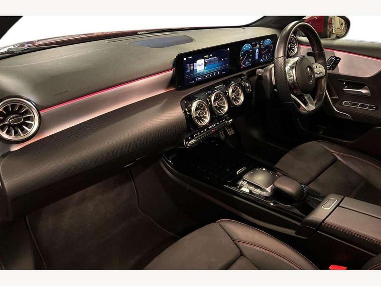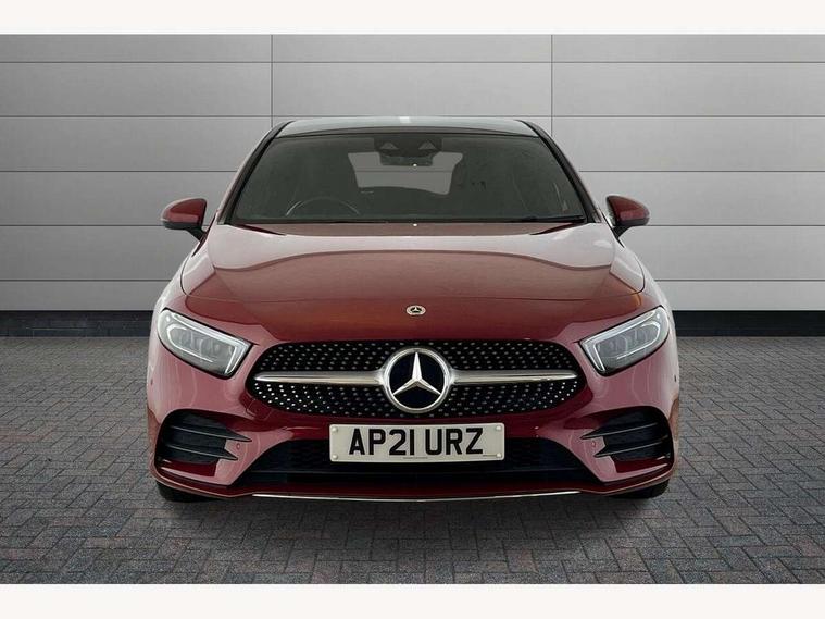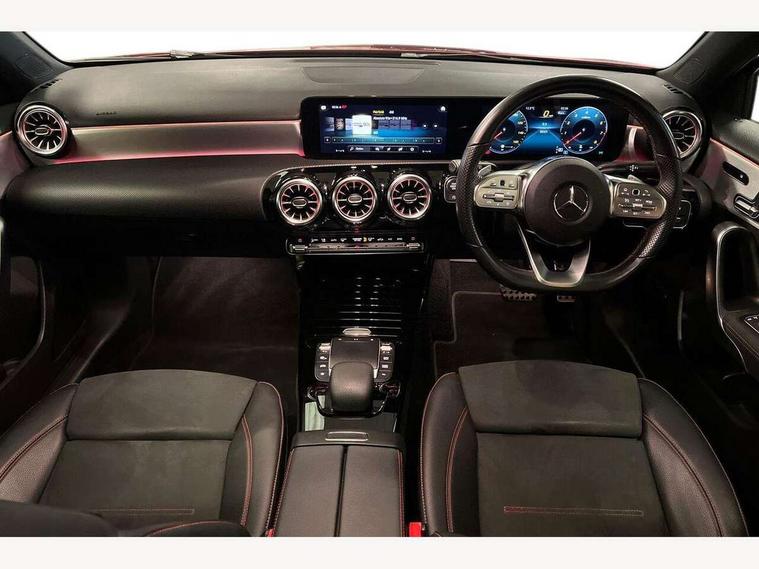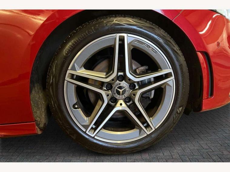 10.25" Digital instrument cluster display screen, 10.25" media display, 180 degree rear view camera with parking guidelines, Active parking assist with visual and audible warning of detected obstacles, Attention assist, Brake pad wear indicator warning light, Car wash mode, Direct steering, Dual bluetooth interfaces, DYNAMIC SELECT with a choice of driving modes (ECO, Comfort, Sport and Individual), ECO start/stop function, Fluid level warning indicator for fuel, oil, coolant and washer fluid, Hard-disk navigation, Hey Mercedes Voice activation, Lamp failure indicator, MBUX augmented reality for navigation, Mercedes me connect including emergency call system, accident recovery, breakdown and maintenance management, Mercedes me remote services, Outside temperature gauge, Owners manual in English, Pre-installation for private car sharing, Preinstallation for Mercedes Benz link, Service indicator (ASSYST), Smartphone integration with Apple CarPlay and Android auto, Traffic sign assist, Trip computer, Ultrasonic sensors positioned in the front and rear bumpers, Wireless charging, Lowered comfort suspension, Rear axle torsion beam, 10 speakers, 2 USB ports (type C) in rear stowage compartment and one in front of center console, DAB Digital radio, MBUX multimedia system with DAB digital radio and touchpad including satellite navigation, Mercedes-Benz advanced sound system - 225W, 4 Electric Front and Rear windows, Adaptive brake lights, AMG bodystyling - Front apron with splitter in chrome, rear apron with chrome trim and chrome visible trim elements in tailpipe, Black weather strip, Body colour bumpers, Body colour door handles, Body colour side skirt, Body coloured door mirrors, Chrome beltline trim, Diamond radiator grille with chrome pins and silver louvre + chrome insert, Electric adjustable and heated door mirrors with integrated LED side indicators, Exhaust system - Twin visible tailpipes in polished stainless steel, Headlamp assist automatic headlamp activation, Heated glass rear windscreen + timer control, LED high performance headlamps with integrated LED daytime running lights, LED tail lamp, LED third brake light, Multibeam LED with adaptive highbeam assist plus, Panoramic sliding sunroof, Privacy glass, Radio aerial, Rain sensing windscreen wipers with two sensitivity settings, Rear fog lights, Rear wiper, Window line trim strip in chrome, 3 Spoke flat bottom leather multi function steering wheel with perforated leather in grip area, 40:20:40 split folding rear seats, Artico man-made leather/Microfibre Dinamica upholstery with red contrast stitching, Auto Mercedes-Benz child seat recognition sensor, Black air vents with surround in silver chrome, Black roof lining, Brushed stainless steel sports pedals with rubber studs, Controller on centre console with chrome surround, Electrically adjustable front memory seats including lumbar support, Floor mats with stitched edging and AMG lettering, Front centre armrest with storage compartment, Front seat backs luggage nets, Front seat cushion length adjustment, Galvanished gear shift paddles on steering wheel, Heated front seats, Height/reach adjustable steering column, Illuminated front door sills with changeable cover, Interior lighting - 64 colour Ambient lighting, Interior mirror with reading lamps in black and frameless, Rear armrest with 2 cupholders, Rear head restraints, Seat occupancy sensor for front passenger seat, Sports seats with integrated headrests, Stowage compartment in centre console with retractable cover, Sunvisors with illuminated vanity mirrors, Touchpad on center console, Twin front cupholders, Two zone thermotronic luxury automatic climate control, Light and sight pack - A Class, Mirror package - A Class, Seat comfort pack - A Class, 3 rear 3 point seatbelts, ABS with Brake Assist, Active bonnet, Adaptive brake assist with hold function and hill start assist, Black seatbelts, Childproof locks manually operated for rear doors and electrically operated for rear power windows, Crash responsive emergency lighting, Driver and passenger head and side airbags, Drivers knee airbag, Dual stage driver/passenger airbags, Electronic parking brake, ESP curve dynamic assist, ESP with ASR, Front and rear seatbelt reminder, Front brake callipers with Mercedes Benz lettering, ISOFIX and top tether child seat fixing points in two outer rear seats, Tyre pressure monitoring system, Warning triangle and first aid kit, Window airbags, Alarm system/interior protection/immobiliser, Keyless entry lock/unlock, Keyless Go, Remote central locking and crash sensor with emergency opening function, Urban guard vehicle protection system with immobiliser and interior protection, Light aluminium with longitudinal grain interior trim, 18" AMG 5 twin spoke light alloy wheels in titanium grey with highsheen finish, Summer tyres, Tirefit sealant kit,