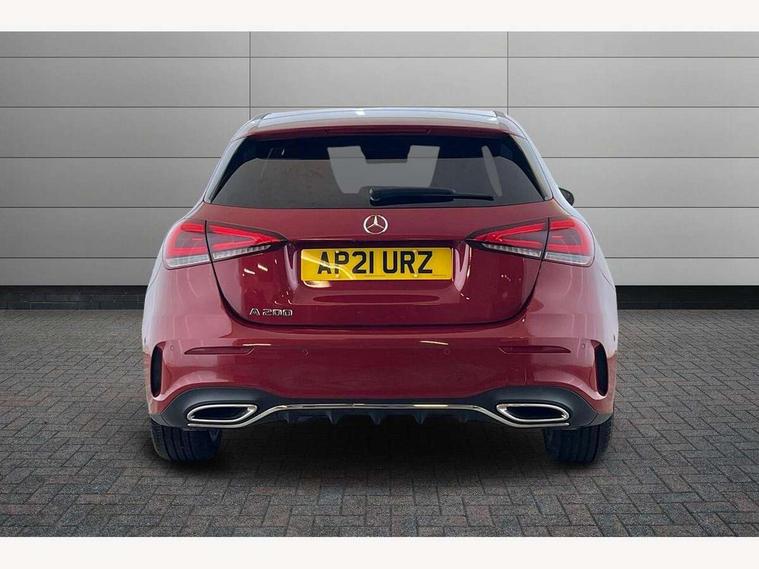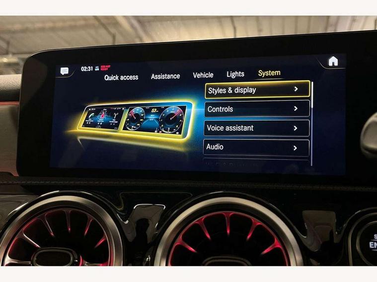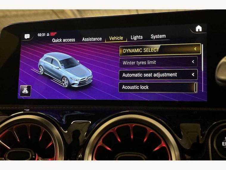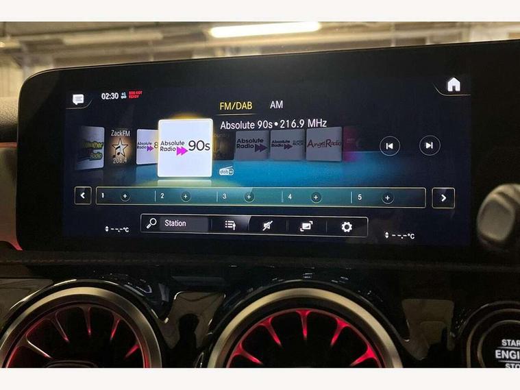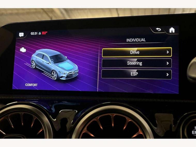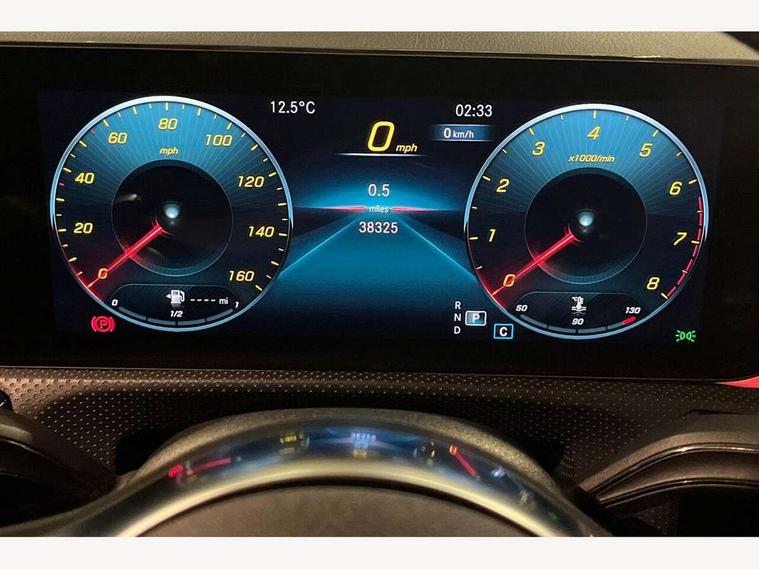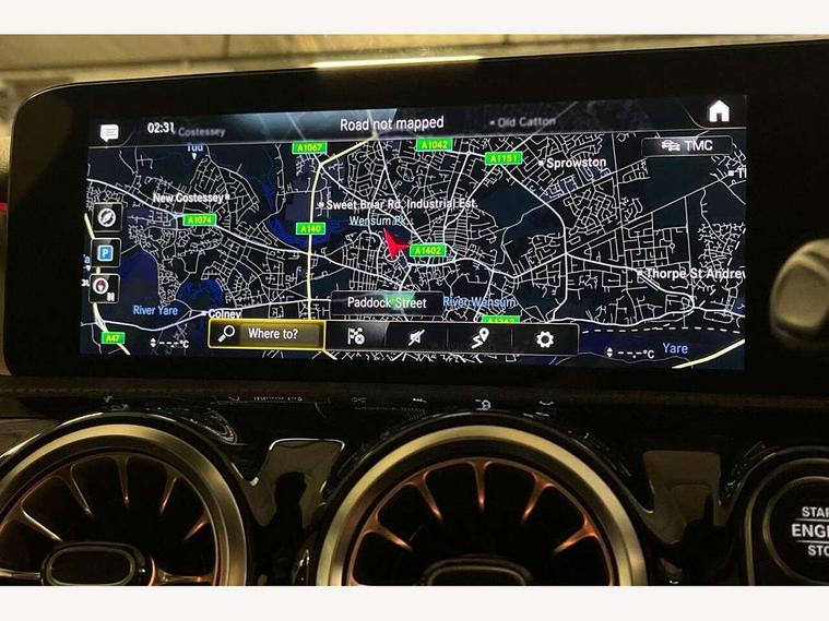 10.25" Digital instrument cluster display screen, 10.25" media display, 180 degree rear view camera with parking guidelines, Active parking assist with visual and audible warning of detected obstacles, Attention assist, Brake pad wear indicator warning light, Car wash mode, Direct steering, Dual bluetooth interfaces, DYNAMIC SELECT with a choice of driving modes (ECO, Comfort, Sport and Individual), ECO start/stop function, Fluid level warning indicator for fuel, oil, coolant and washer fluid, Hard-disk navigation, Hey Mercedes Voice activation, Lamp failure indicator, MBUX augmented reality for navigation, Mercedes me connect including emergency call system, accident recovery, breakdown and maintenance management, Mercedes me remote services, Outside temperature gauge, Owners manual in English, Pre-installation for private car sharing, Preinstallation for Mercedes Benz link, Service indicator (ASSYST), Smartphone integration with Apple CarPlay and Android auto, Traffic sign assist, Trip computer, Ultrasonic sensors positioned in the front and rear bumpers, Wireless charging, Lowered comfort suspension, Rear axle torsion beam, 10 speakers, 2 USB ports (type C) in rear stowage compartment and one in front of center console, DAB Digital radio, MBUX multimedia system with DAB digital radio and touchpad including satellite navigation, Mercedes-Benz advanced sound system - 225W, 4 Electric Front and Rear windows, Adaptive brake lights, AMG bodystyling - Front apron with splitter in chrome, rear apron with chrome trim and chrome visible trim elements in tailpipe, Black weather strip, Body colour bumpers, Body colour door handles, Body colour side skirt, Body coloured door mirrors, Chrome beltline trim, Diamond radiator grille with chrome pins and silver louvre + chrome insert, Electric adjustable and heated door mirrors with integrated LED side indicators, Exhaust system - Twin visible tailpipes in polished stainless steel, Headlamp assist automatic headlamp activation, Heated glass rear windscreen + timer control, LED high performance headlamps with integrated LED daytime running lights, LED tail lamp, LED third brake light, Multibeam LED with adaptive highbeam assist plus, Panoramic sliding sunroof, Privacy glass, Radio aerial, Rain sensing windscreen wipers with two sensitivity settings, Rear fog lights, Rear wiper, Window line trim strip in chrome, 3 Spoke flat bottom leather multi function steering wheel with perforated leather in grip area, 40:20:40 split folding rear seats, Artico man-made leather/Microfibre Dinamica upholstery with red contrast stitching, Auto Mercedes-Benz child seat recognition sensor, Black air vents with surround in silver chrome, Black roof lining, Brushed stainless steel sports pedals with rubber studs, Controller on centre console with chrome surround, Electrically adjustable front memory seats including lumbar support, Floor mats with stitched edging and AMG lettering, Front centre armrest with storage compartment, Front seat backs luggage nets, Front seat cushion length adjustment, Galvanished gear shift paddles on steering wheel, Heated front seats, Height/reach adjustable steering column, Illuminated front door sills with changeable cover, Interior lighting - 64 colour Ambient lighting, Interior mirror with reading lamps in black and frameless, Rear armrest with 2 cupholders, Rear head restraints, Seat occupancy sensor for front passenger seat, Sports seats with integrated headrests, Stowage compartment in centre console with retractable cover, Sunvisors with illuminated vanity mirrors, Touchpad on center console, Twin front cupholders, Two zone thermotronic luxury automatic climate control, Light and sight pack - A Class, Mirror package - A Class, Seat comfort pack - A Class, 3 rear 3 point seatbelts, ABS with Brake Assist, Active bonnet, Adaptive brake assist with hold function and hill start assist, Black seatbelts, Childproof locks manually operated for rear doors and electrically operated for rear power windows, Crash responsive emergency lighting, Driver and passenger head and side airbags, Drivers knee airbag, Dual stage driver/passenger airbags, Electronic parking brake, ESP curve dynamic assist, ESP with ASR, Front and rear seatbelt reminder, Front brake callipers with Mercedes Benz lettering, ISOFIX and top tether child seat fixing points in two outer rear seats, Tyre pressure monitoring system, Warning triangle and first aid kit, Window airbags, Alarm system/interior protection/immobiliser, Keyless entry lock/unlock, Keyless Go, Remote central locking and crash sensor with emergency opening function, Urban guard vehicle protection system with immobiliser and interior protection, Light aluminium with longitudinal grain interior trim, 18" AMG 5 twin spoke light alloy wheels in titanium grey with highsheen finish, Summer tyres, Tirefit sealant kit,