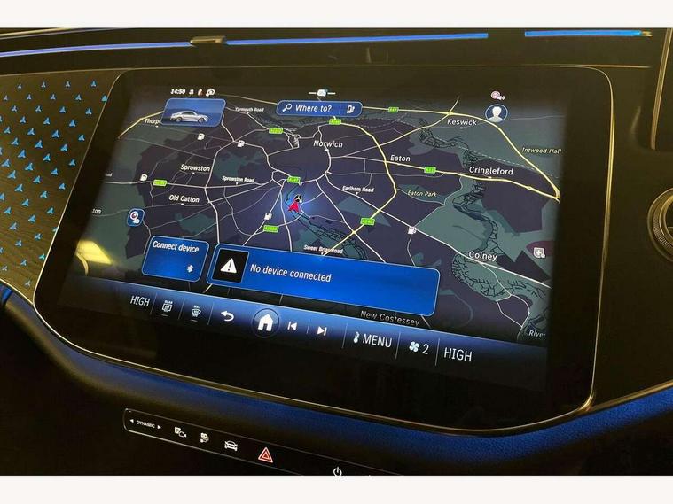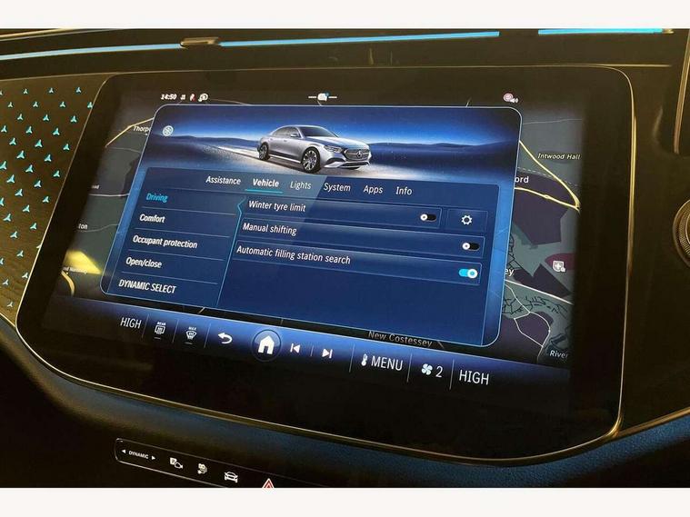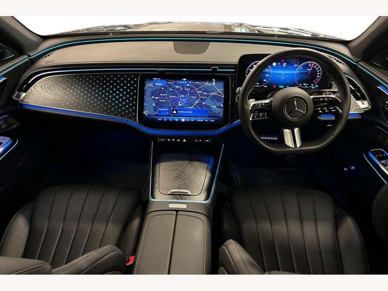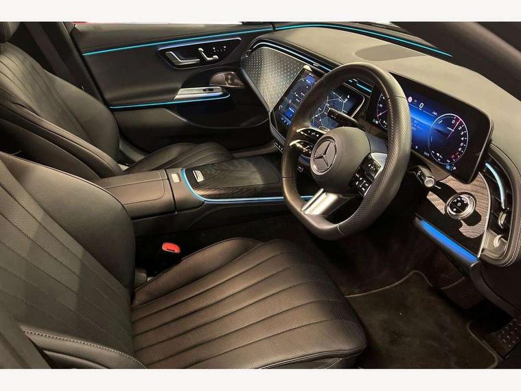 12.3" Driver display screen, 14.4" central media display, 5G Communications module, Acoustic presence indicator, Attention assist, Augmented reality navigation, Blind spot assist, Brake wear warning display, Direct steer speed sensitive steering, ECO start/stop function, Emergency call assistance, Evasive manoeuvre support, Fluorescent jacket for driver, Hard disc navigation, Head up Display, MBUX navigation premium, MBUX voice control, Mercedes connect me, Outside temperature display, Preinstallation for live traffic, Remote and charging services plus, Remote bootlid closing, Selfie and video camera, Service indicator (ASSYST), Status display for rear seat belts in instrument cluster, Trip computer in multifunction display showing current fuel consumption, Wireless charging, Wireless smartphone integration with Apple CarPlay and Android auto, 5m Domestic charging cable, 5m Public charging cable, 9G TRONIC automatic transmission, AC charging, Agility control suspension, Sporty engine sound system, Burmester 4D premium sound system, DAB Digital radio, Preinstallation for MBUX Entertainment Plus, Sound visualisation, 3rd brake light, Acoustic glass, Adaptive brake lights, Aerial integrated in rear window, AMG bodystyling, Auto dimming driver's door mirror, Auto dimming rear view mirror, Black radiator grille, Digital air vent control, Electric folding door mirrors, Electric windows with one touch opening/closing and obstruction sensors, Electrically adjustable and heated door mirrors, Heat insulating privacy glass, LED daytime running lights, LED digital light with adaptive highbeam assist plus, Pre-installation for roof rail systems, Rear boot, Rear side wing doors, Surround lighting with logo projection, 3 seat bench in 2nd row, 4 way lumbar support, Active ambient lighting, AMG brushed stainless steel sports pedals with rubber studs, AMG floor mats, AMG line interior, Automatic child seat recognition sensor, Central stowage compartment with USB socket for use with Android Auto and Apple CarPlay, Comfort seats, Courtesy lights in rear grab handles with reading light functionality, Folding rear seat backrest, Front centre armrest with stowage compartment, Glove compartment - lockable, air conditioned and illuminated, Head restraints for driver and front passenger (four-way adjustability) and in rear (two-way), Heated front seats, Illuminated door sills, Multifunction sports steering wheel in nappa leather, Roof liner in black fabric, Seat occupancy sensor for front passenger seat, Single front passenger seat, Sunvisors with illuminated vanity mirrors, Thermotronic 4 zone climate control, Keyless Go comfort package - E Class, Leather package - E Class, Memory package - E Class, Parking package with 360 degree camera - E Class, USB plus package - E Class, 3x3 point rear seatbelts, Active bonnet pedestrian safety measure which detects an impact and raises bonnet, Adaptive brake system with HOLD function and brake drying in the wet, Anti-lock braking system (ABS), Automatic front passenger airbag deactivation, Central airbag, Childproof locks manually operated for rear doors and electrically operated for rear power windows, Driver and adaptive front passenger airbags, Electronic parking brake, Electronic Stability Programme, Hill start assist, ISOFIX child seat attachment points two outer rear seats, Knee airbags, Pedestrian protection, Pre-Safe anticipatory safety system, Tyre pressure monitoring system, Warning triangle and first aid kit, Window airbags, Alarm system with interior monitoring, Central locking with interior switch, automatic locking and crash sensor with emergency opening function, Dashcam, Digital vehicle key, Guard 360 degree vehicle protection plus, Increased anti theft protection, Urban guard vehicle protection plus, Open pore black ash wood centre console trim, 19" AMG 5 twin spoke bi colour alloy wheels, Summer tyres, Tirefit,