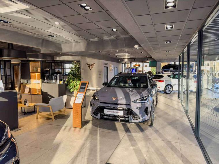 'Lights On' Reminder warning buzzer, Cruise control, Digital clock, Electric speed sensitive power steering, Full Link Smartphone Integration with Mirror Link, Apple Car Play, Google Android Auto with USB Type C cable for Apple and Android compatibility, Low fuel warning light, Outside temperature display, Rear parking sensor, RPM counter, SEAT Drive profile - Four different models normal-sport-eco-individual, steering response, throttle response, Trip computer, Sports suspension, 6 speakers, Bluetooth interface for hands free and audio streaming, DAB digital radio and AM/FM radio, Steering wheel mounted audio controls, Anti theft roof antenna, Auto dimming interior rear view mirror, Automatic activation of hazard warning lights, Automatic headlights, Body coloured bumpers, Body coloured door handle inserts, Chrome front grille frame, Chrome roof rails, Chrome window trim, Coming/leaving home lighting function, Dark tinted rear windows, Electric front/rear windows with one touch/auto up/down, Electrically adjustable, heated and folding door mirrors, Full LED headlights dipped and mainbeam + front and rear fog lights, LED daytime running lights, LED rear tail lights and licence plate lights, Rain sensing wipers, Rear window wash/wipe, Roof colour door mirrors, Twin exhaust pipe styling hidden exhaust pipe, Visible VIN plate, Windshield wiper with intermittent control and potentiometer, 2 cupholders, 60/40 split folding rear seat, Black interior roof, Double boot floor, Driver sunvisor with covered mirror + card holder, Dual zone climate control, Dust/pollen filter, Front courtesy light with front reading lights, Front sport seats, Gear shift indicator, Height adjustable front seats, Height/reach adjustable steering column, Illuminated boot, Instrument lighting with brightness control, Interior footwell lighting, ISOFIX points in outer rear seats with top tether anchorage points, Multi-colour ambient interior lighting, Nora cloth upholstery, Passenger sunvisor with vanity mirror, Perforated flat bottomed leather steering wheel/gear knob/handbrake with red stitching and FR logo, Two front and three rear height adjustable headrests, Connectivity pack plus - Arona, Interior chrome pack - Arona, 3 point seatbelts on all rear seats, ABS, Active front headrests, Child locks on rear doors, Driver and front passenger airbags with front passenger airbag de activation, front side and curtain airbags, Electronic stability control, Emergency Brake Assist (EBA) and front assist, Front and rear seatbelt reminder, Hill hold control, Multi-Collision braking, Tiredness recognition system, Traction control, Tyre pressure monitoring system, 2 folding remote keys with window open/close function, Alarm with back-up horn, Electronic engine immobiliser, Locking wheel bolts, Remote central locking + deadlocks, Tow away protection, Interior chrome line trim, Leatherette dashboard, 17" Dynamic alloy wheels,