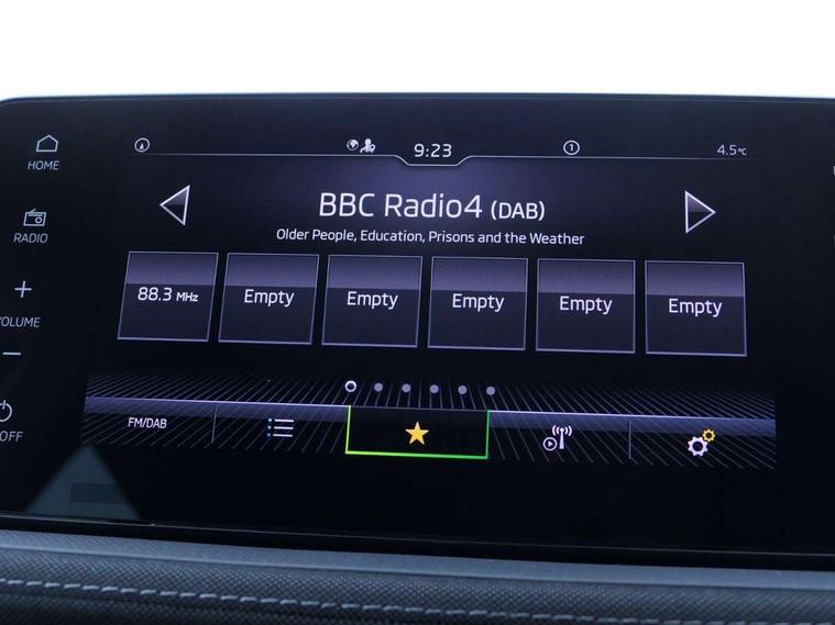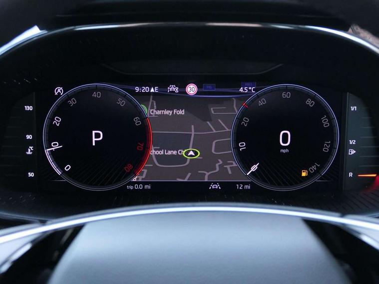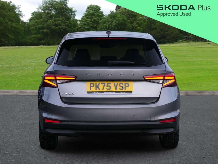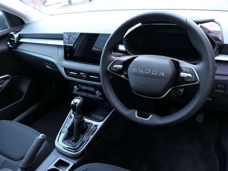 Advanced driver attention and drowsiness monitor, Bluetooth connection, Driver alert system, Electromechanical power steering, Exterior temperature gauge, Service interval indicator, Traffic sign recognition, Virtual cockpit with 10.25" colour display, Wireless SmartLink for Apple CarPlay and Android Auto, 6 Speakers (4 in front and 2 in rear), 9.2" colour display skoda navigation system with voice control and web radio, Auxiliary socket for external MP3 player, DAB digital radio reception, Auto dimming rear view mirror, Body colour door mirrors, Body coloured bumpers, Chrome window surround, Door mirror integrated indicators, Front and rear electric windows, Front window wiper intermittent control, Headlight range control - Automatic, Ice scraper in fuel cap, LED 3rd brake light, LED daytime running lights with coming and leaving home feature, LED rear lights, Privacy glass, Rear LED fog light, Rear side wing doors, Rear window wiper with washing nozzles, Roof mounted spoiler, SKODA tailgate lettering in chrome, Unique dark chrome design logo on alloy wheels, 2 LED reading lights in front and rear, 3 rear headrests, Backrest split and folding, Central console with fixed cup holder and storage box, Chrome handbrake release button, Comfort seats, Door sills with fabia badging, Dual zone air conditioning with climatronic electronic control, Fabric upholstery, Front centre armrest, Gearshift knob/handle in leather, Grain satin black interior door handles, Hand brake lever handle in leather, Height adjustable front headrests, Height adjustable front seats, Height adjustable steering wheel, ISOFIX and TopTether anchorage points to the outer rear seats, ISOFIX and TopTether on the front passenger seat, Luggage compartment lighting, Manually adjustable lumbar support in front seats, Pollen filter, Rear seat bench unsplit, Single front passenger seat, Skoda lettering on steering wheel, Storm grey headlining, Sun visors with mirror and airbag label on passenger side, Textile floor mats, Ticket holder, Ambient lighting pack - Fabia Hatchback, 3-point height adjustable front seats belts with pretensioner and force limiter, Automatic warning lights in case of crash, Driver and passengers airbag with switch off function, e-Call+, ESC including ABS, MSR, ASR, EDS, HBA and XDS, Front and rear seat belt warning, FRONT ASSIST (AEB City and AEB Inter Urban), Front side airbags, Head airbags, Hill hold control, One tone horn, Pedestrian protection, Three rear 3-points safety seat belts with pretensioner and force limiter including stop function for outer rear seat belts, Tyre pressure monitoring system, Anti-theft alarm system including immobiliser, interior monitoring, backup horn, and towing protection, Central locking with radio remote control, interior controls, SAFE function and 2 foldable keys, Chrome edged air vents, Grain satin black central console cover, Metallic grey upper decorative trim, Satin black door and side trim panel in front, Textile microsuede grey lower decorative trim with art grey stitching, Anti-theft wheel bolts protection, Super-low rolling resistance tyres,