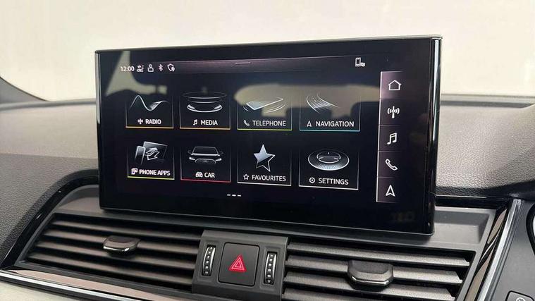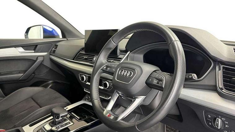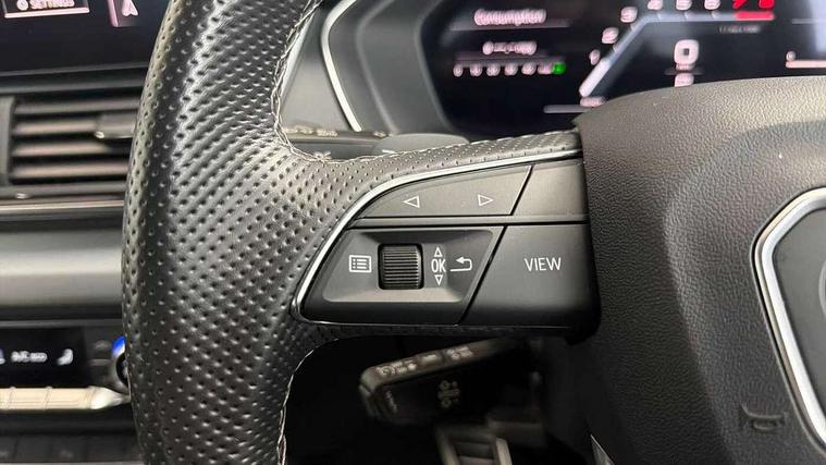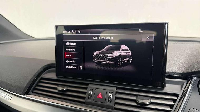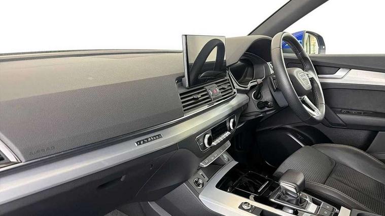 Audi connect safety and service (e-call), Audi connect with Amazon Alexa Integration, Audi drive select, Audi virtual cockpit plus with 12.3" screen and three different layout designs, Audi wireless smartphone interface, Automatic start-stop system with coasting functionality and efficiency programme, Bluetooth interface, Electro - mechanical power assisted steering, MMI navigation plus with 10.1" touch screen, Power tailgate, Reversing camera, Service interval indicator, Voice control system with Audi hotword activation "Hey Audi", Quattro on demand, S line sports suspension, DAB Digital radio, Acoustic windscreen, Aluminium roof rails, Audi matrix LED headlights with dynamic front and rear indicators, Auto dimming door mirrors, Auto dimming rear view mirror, Automatic headlight adjustment, Automatic headlights and windscreen wipers, Body colour door mirrors, Body colour rear diffuser with matt aluminium silver surrounds, Body colour underbody protection, Chrome plated exhaust trims, Daytime running lights, Door sills in Selenite silver, Electric adjustable/heated/folding door mirrors, Front air inlet surrounds in aluminium, Front and rear electric windows, Front radiator grille in honeycomb design, Headlight washers, High level LED brake light, Lower bumpers painted in contrast Manhattan grey, Rear chrome trim strip below lights, Rear privacy glass and rear side windows, Rear side wing doors, Rear wiper, Roof bars, S Line badges on the front wings, S Line front and rear bumpers, S Line rear spoiler, S Line side skirts, 2 x USB charging port with aux input socket, 3 rear headrests, 40:20:40 split folding 3 rear bench seat in 2nd row with rear centre armrest, Black cloth headlining, Comfort front centre armrest, Contrast stitching on seats, steering wheel and gear lever gaiter, Deluxe 3 zone electronic climate control, Front head restraints, Front/rear floor mats, Gear lever in black leather, Heated front seats, Height/reach adjustable steering column, Illuminated door sill trims with S logo, ISOFIX child seat mounting and top tether, Manual seat adjustment with 4-way electric lumbar support, Removable luggage compartment floor, Single front passenger seat, Stainless steel pedals, Sunvisors with vanity mirrors, Trunk roller cover, High gloss pack - Q5, LED interior light pack - Q5, 3 point seatbelts on all seats, 6 airbags - Driver, front passenger, curtain and side airbags, Electrically operated child locks on rear doors, Electromechanical parking brake, Electronic stabilisation control including ABS, ASR and EDL, Front passenger airbag deactivation, Hill descent control, Hill hold assist, Multi collision brake assist, Pop-up bonnet for pedestrian protection, Pre sense city, Seat belt force limiter, Seatbelt monitoring, Tyre pressure warning, Warning triangle and first aid kit, Anti theft alarm, Anti-theft wheel bolts, Keyless Go access/ignition system, Remote central locking, Matt brushed aluminium inlays,