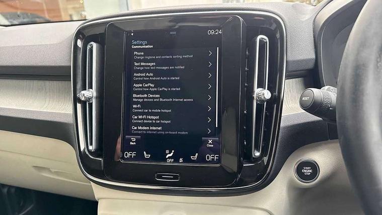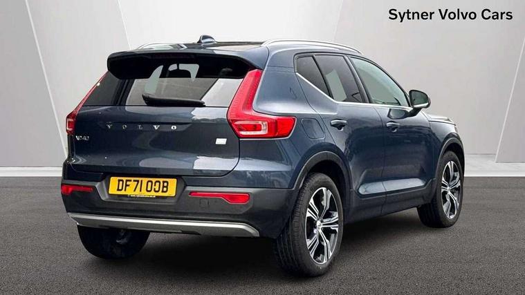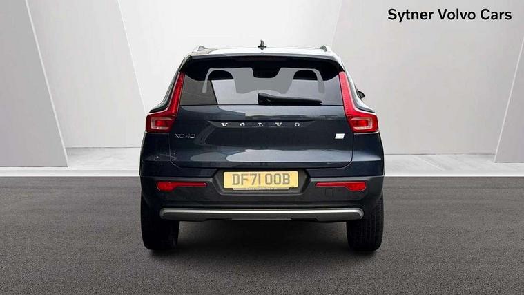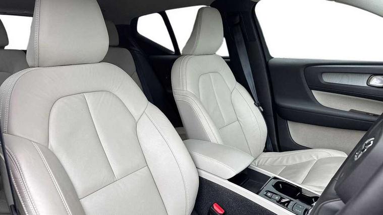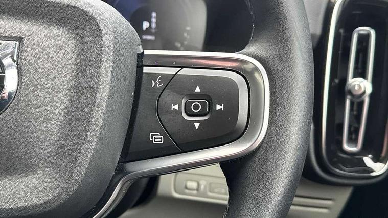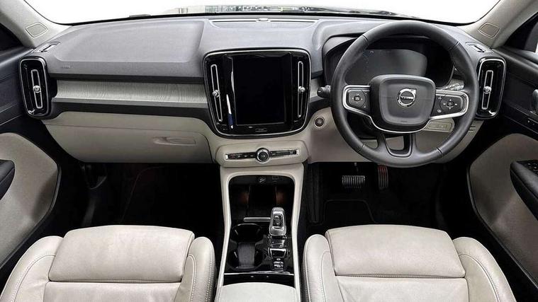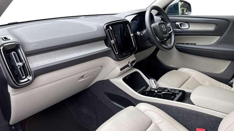 12.3" Active TFT crystal driver's instrument display, 9" centre console portrait touch screen, Adjustable steering wheel force, Bluetooth hands free telephone kit, Drive mode selector, E-call, Lane keep assist with driver alert control, Oncoming Lane Mitigation, Power operated tailgate, Sensus navigation with European mapping and traffic information, Speed limiter, Speed sensitive steering, Voice activated control for key functions, Volvo on call, 7m 10amp charge cable with 3 pin plug and 7m 1 phase 16amp type 2/mode 3 charge cable, Dynamic chassis, Electric front axle drive, Recharging port located in nearside front wing, DAB Digital radio, Low speed exterior sound speaker, Steering wheel mounted remote controls, Adaptive brake lights with high level LED brake lights, Auto dimming interior mirror, Automatic headlamp levelling, Automatic LED Headlights + Active high beam incorporating daytime running lights, Chrome window surround, Colour coordinated auto folding and heated power door mirrors, Front aluminium tread plates, Front and rear electric windows, Heated front windscreen, High gloss black front grille with chrome inserts, High gloss black sensus surround deco, High Gloss silver front and rear skid plate, Home safe and approach lighting, Integrated roof rails in silver, Rain sensor with automatic windscreen wiper activation, Rear side wing doors, Rear wiper, Roof antenna, Roof spoiler, Visible VIN plate, 12V socket in front tunnel console and luggage compartment, 2 zone electronic climate control and rear air vent, 3 seat bench in 2nd row, 3 Spoke tailored steering wheel with chrome trim, 60/40 versatile split folding rear seat, A-pillar parking ticket holder, Blond headlining, Bright metal luggage threshold, Centre console cupholders and storage, Floor mats, Front footwell illumination, Front headrests, Front reading light and theatre lighting, Front seat cushion extensions, Glovebox bag hook, Heated front seats, Height/reach adjustable steering column, Height/tilt adjustable driver's seat, High gloss centre tunnel deco, Illuminated glovebox, Illuminated luggage compartment, Illuminated vanity mirrors, Isofix attachments on outer rear seats, Leather faced upholstery, Load protection net, Multi directional lumbar support, Orrefors Crystal gear lever knob, Power driver seat with memory + exterior mirrors memory, Power passenger seat, Rear armrest / integral cup holders / storage tray, Rear coat hook, Single front passenger seat, Underfloor cargo storage, Vanity mirror with ticket holder, Lighting pack - XC40, Park assist pack - XC40, 3x3 point rear seatbelts, City safety includes pedestrian, cyclist and large animal detection and front collision warning with full auto brake, Drivers knee airbag, Dual stage driver/passenger airbags, Electronic parking brake with auto hold, First aid kit, Front and outer rear seatbelt reminder and pretensioners, Front seats SIPS airbags, Hill descent control, Hill start assist, Inflatable curtain, Passenger airbag cut-off device, Road sign information display, Run off Road Mitigation, Run off Road Protection, SIPS (Side Impact Protection System), Slippery road and hazard light alert, Stability and Traction Control with Spin control, Engine Drag Control and Corner Traction Control, Tyre pressure monitoring system, Vehicle deceleration control with Anti-lock Brake System, Electronic Brake Distribution and Emergency Brake Assist, Warning triangle, WHIPS whiplash protection system - front, Anti-theft alarm including immobiliser/volume sensor + level sensor, Care key with user defined top speed, Key integrated remote control central locking + fuel flap with deadlocking system and auto open/close power windows, Locking wheel nuts, Private locking for tailgate, Driftwood inlays,