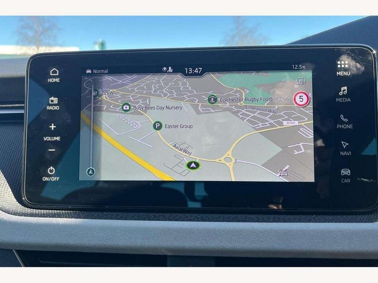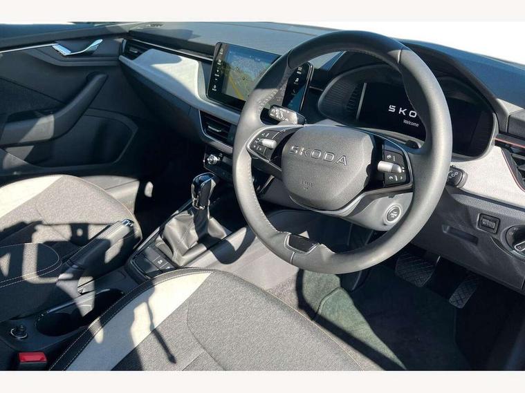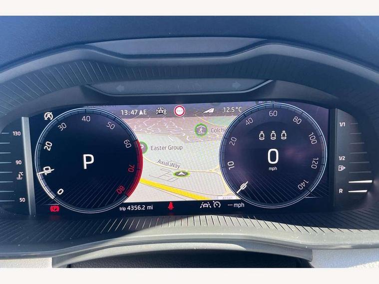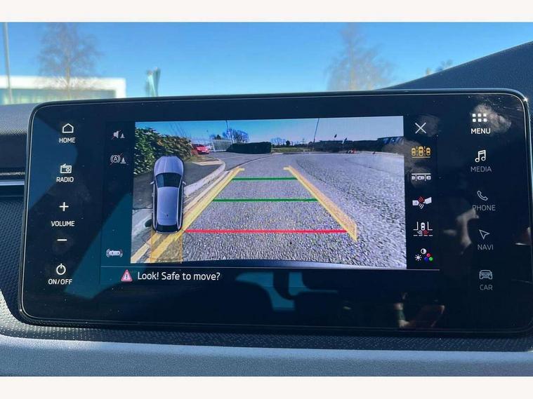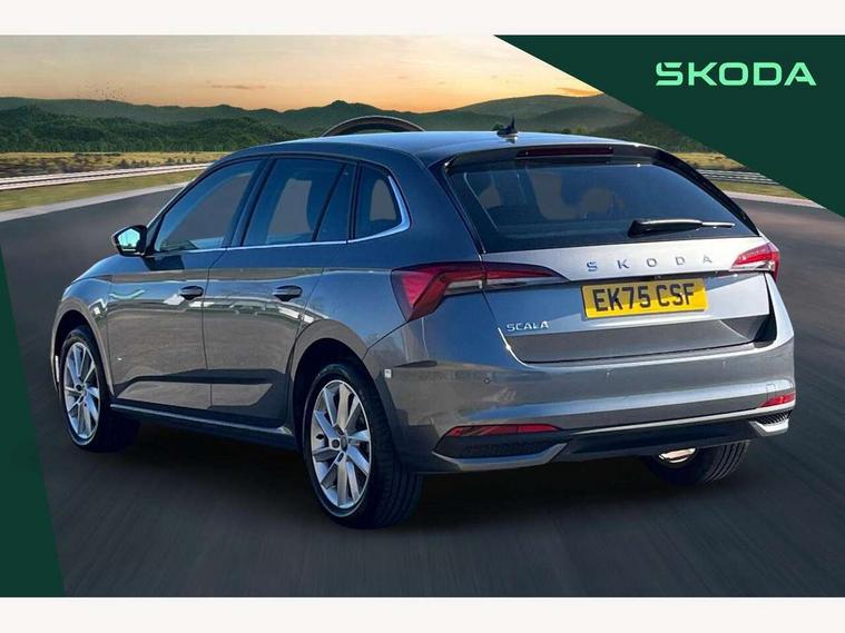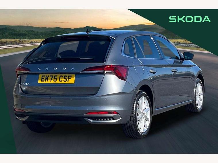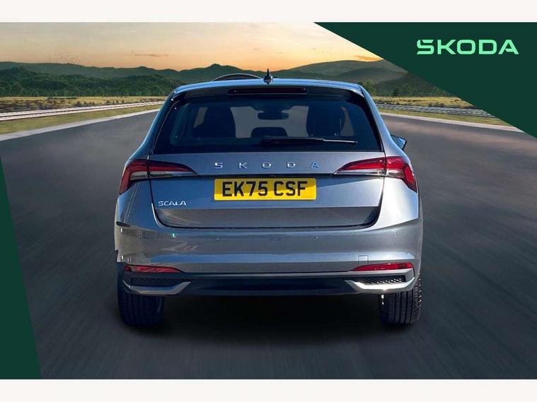 Advanced driver attention and drowsiness monitor, Bluetooth, e-Call (emergency call), Front assist system, PAS, Rear parking sensors, Rear view camera, Speed limiter, Tailgate, Traffic sign recognition, Virtual Cockpit - 10.25" digital display, Voice control system, Wireless smartlink, 4 USB C ports, 8 Speakers, 9.2" Skoda navigation display, DAB radio, Auto dimming rear view mirror, Automatic headlight control with manual coming and leaving home feature, Automatic intermittent wipers, Body colour bumpers, Body colour door mirrors and handles, Chrome moulding around grille, Chrome window frames, Front and rear electric windows, Heated rear window, LED 3rd brake light, LED daytime running lights, LED high beam, LED low beam, Light sensors, Privacy glass, Rear LED fog light, Rear side wing doors, Rear wiper, Tinted windows, Unique dark chrome design logo on alloy wheels, 12V socket in luggage compartment, 3 seat bench in 2nd row, Ambient lighting in white/red, Black / Copper armrest stitching, Cargo elements, Chrome inner door handles, Copper hotstamping, Door inserts in accent black, Driver and passenger sun visors with vanity mirror, Dual zone climate control, Front and rear roof lights, Front centre armrest, Front head restraints, Glasses storage in roof liner, Height adjustable driver seat, Height adjustable passenger seat, Ice scraper, Illuminated glove compartment, Inner circulation control with pollen filter, ISOFIX for front passenger seat, Isofix preparation for back seats, Leather gearknob and handbrake lever, Lodge cloth upholstery, Luggage net under rear parcel shelf, Manual lumbar support for front seats, Net package and top tether hooks in boot space, Pocket on the back of both front seats, incl. mobile phone pockets, Rear centre armrest, Single front passenger seat, Skoda lettering on steering wheel, Textile floor mats, Third rear headrest, Ticket holder, Top tether for front passenger seat, Umbrella in driver's door, Convenience pack without rear camera - Scala, 3x3 point rear seatbelts, ABS, Child locks, Curtain airbags and front side airbags, Disc brakes, Driver and front passenger airbags, ESP, Hill hold control, Manual leather parking brake, One tone horn, Passenger airbag switch off function, Seatbelt reminder for driver and front passenger, Tyre pressure monitoring system, Anti theft alarm system with interior monitoring, backup horn and towing protection, Anti-theft wheel bolts, Remote central locking with 2 remote folding keys, SAFE function for remote central locking, Decorative inserts,