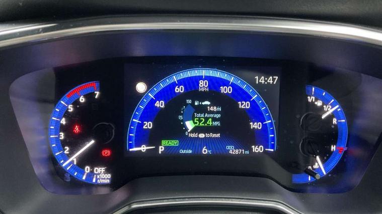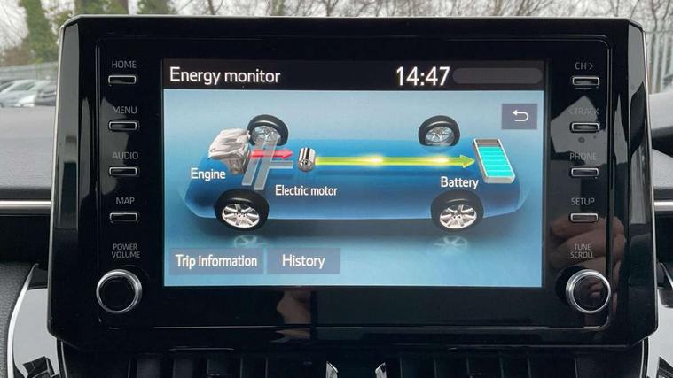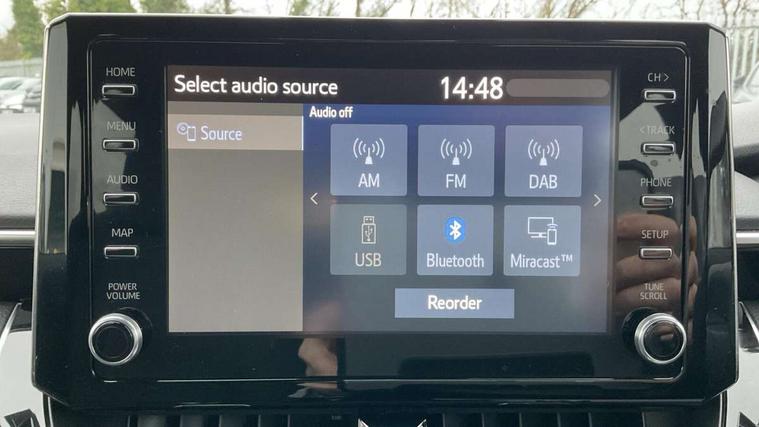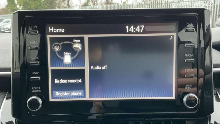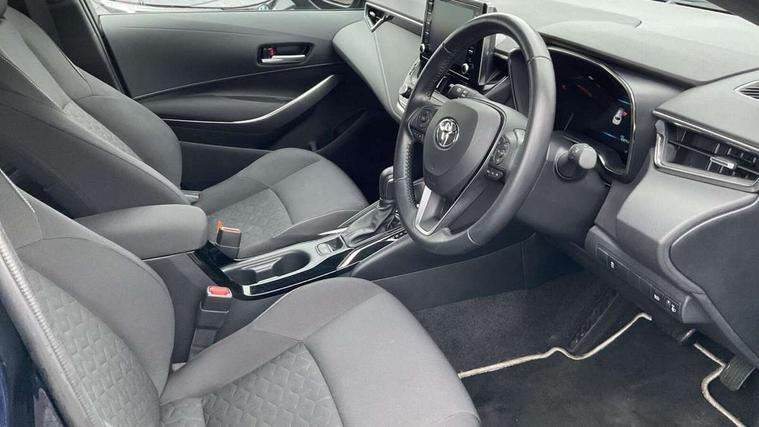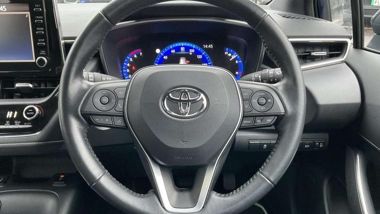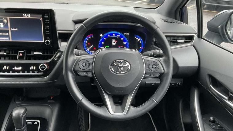 7" Multi information display screen, Bluetooth telephone connectivity, Connected car functionality upgrade, tracker, remote status and e-care, Dynamic radar cruise control (with RSA) including switch on steering wheel, E-call, Electrically assisted power steering, EV drive indicator, Lane Departure Alert (LDA) switch on steering wheel, Memory on adjustable speed limiter, Push button start, Reversing camera, Smartphone integration with Apple CarPlay and Android auto, Gasoline particulate filter, Vehicle Stability Control (VSC), 6 speakers, 8" Touchscreen with MM19 Multimedia system and voice recognition, AM/FM radio, DAB Digital radio, USB and Aux in connectors + 12V front outlet, USB charging port in centre storage box, Aluminium roof rails, Anti-jam protection on power windows, Auto up and down function on all power windows, Automatic headlights with high beam assist, Black metallic surround on lower front grille, Black toyota logo in front, Body colour rear spoiler, Body coloured bumpers, Body coloured door mirrors, Body coloured outside door handles, Follow me home headlights, LED daytime running lights, LED front fog lights, LED Headlights, LED High mounted stop light, Manual day/night rear view mirror, Noise reduction layer on front windows, Power adjustable heated door mirrors, Power front windows, Power rear windows, Rain sensor, Rear side wing doors, Rear window defogger, Rear window wiper, Shark fin antenna, Time adjustment on intermittent wiper, Turning signal integrated indicators in door mirrors, Unique lower skirt, Unique side rocker with black insert, UV-filter on driver and passenger windows, 12v power outlet - luggage side, 3 rear headrests, 3 seat bench in 2nd row, 3 spoke leather steering wheel + gear knob, 60/40 split folding rear seat, Adjustable speed limiter switch on steering wheel, Audio, multimedia and telephone switches on steering wheel, Boot light, Boot underfloor storage, Clean air filter, Driver and front passenger personal light, Driver and passenger assist grip, Driver and passenger sun visor with mirror and light, Dual sided deck board in boot, Dual zone automatic air conditioning with ECO mode switch, Fabric armrests, Front and rear cup and bottle holders, Front and rear door pockets, Front head restraints, Front passenger seat, Heated driver and front passenger seats, Illuminated entry system in room lamp, ISOFIX seat fixing (2 fixings on rear outer seats), Leather gear shift with satin chrome on gear shift console, Manual height adjustable for driver and front passenger seat, Passenger seat back pocket, Pollen filter, Power adjustable lumbar support on driver seat, Power window switches with satin chrome inserts, Quilted fabric upholstery with grey stitches seats, Rear armrest with 2 cupholders, Rear passenger air vents, Rear passenger coat hooks (2), Rear passenger personal lights, Retractable tonneau cover with luggage partition net, Satin chrome inside door handles, Shopping bag hooks in luggage compartment, Side storage in boot, Sliding armrest on centre console box, Slow opening glovebox with lights, Tilt/telescopic steering column, Tonneau cover with under floor storage, Voice recognition switch on steering wheel, Whiplash Injury Lessening (WIL) feature (active headrest) for seats, Toyota safety sense 2 pack - Corolla, 3x3 point rear seatbelts, Adjustable driver and front passenger seat belt extender to top anchor point, Anti lock braking system + Electronic brake force distribution, Brake assist function, Child locks on rear doors, Downhill Assist Control (DAC), Electronic parking brake, Emergency brake light signal (EBS), Front passenger airbag on/off switch, Front seatbelt reminder, HAC - Hill start assist control, Rear seat belt reminder, Seatbelt pretensioners and force limiters, Supplemental restraint system (SRS) 7 airbags - dual driver, dual side curtain, side impact and driver knee airbags, Traction control, Tyre pressure warning system, Acoustic vehicle alert system (AVAS), Alarm with motion sensor and immobilizer, Remote central locking + deadlocks, Satin chrome dash trim, Soft touch texture on upper dashboard, Stitching on lower dashboard, Space saver spare wheel, Unique wheel finish with red wheel cap,