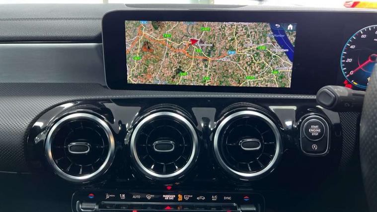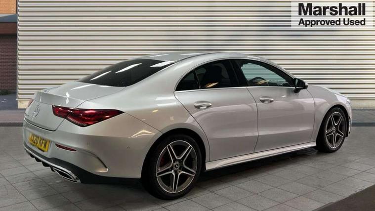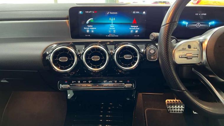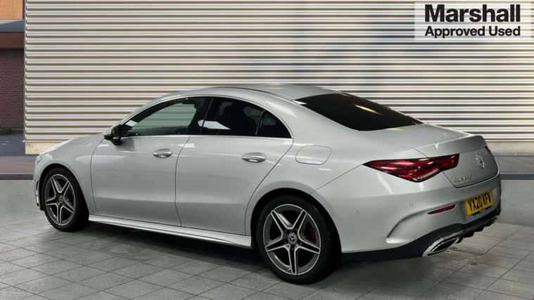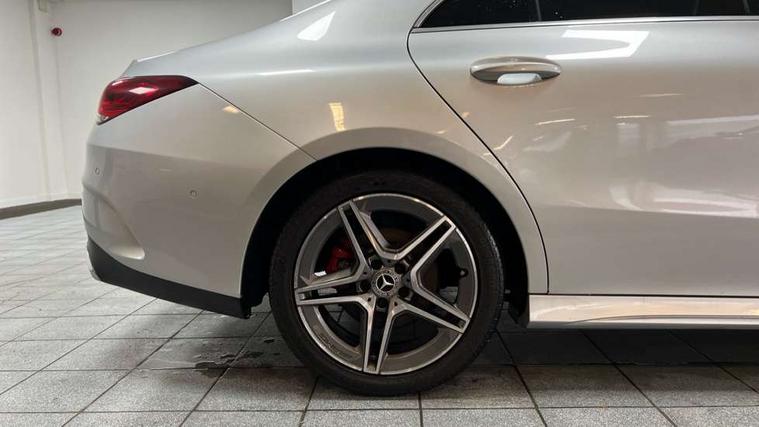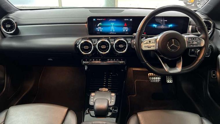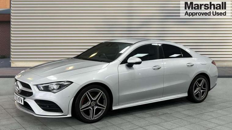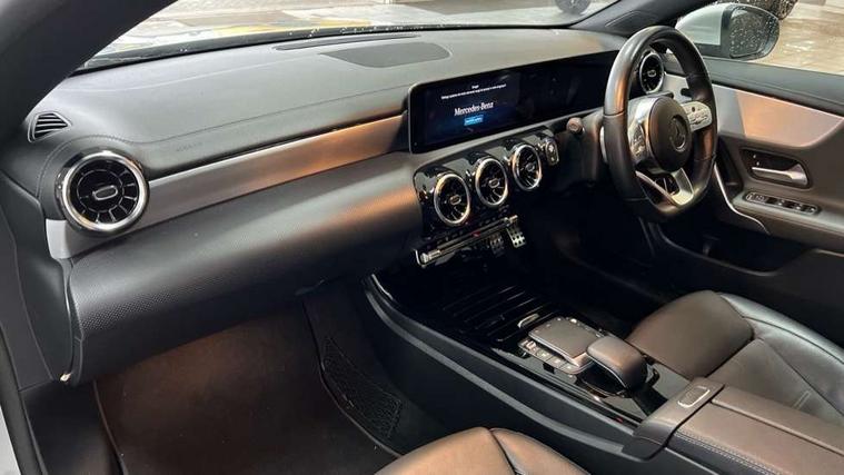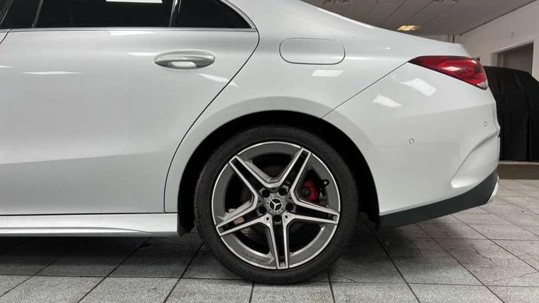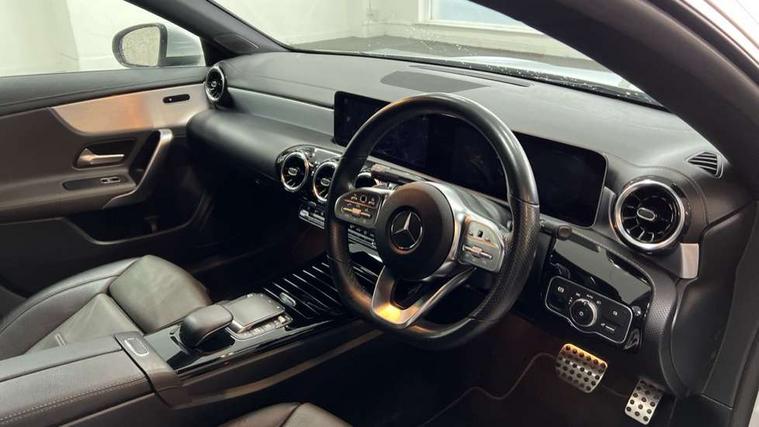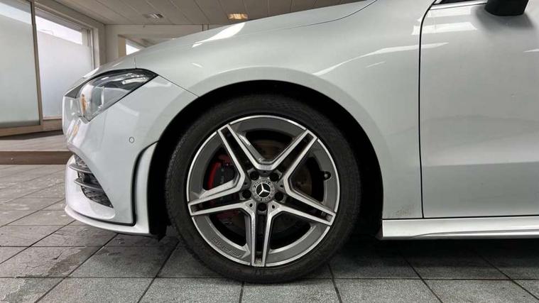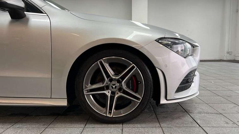 10.25 inch touchscreen central media display, 7 inch Instrument display with digital cockpit, Active lane keeping assist, Attention assist - Monitors steering behaviour and long journey fatigue, Cruise control with limiter, Direct steer system with speed sensitive power steering, Dual bluetooth interfaces, DYNAMIC SELECT with a choice of driving modes (ECO, Comfort, Sport, Sport+ and Individual), ECO start/stop function, Fluid level warning indicator for fuel, oil, coolant and washer fluid, Hard-disk navigation, Hey Mercedes Voice activation, Lamp failure indicator, Mercedes me connect including emergency call system, accident recovery, breakdown and maintenance management, Outside temperature gauge, Owners manual and service booklet in English, Pre-installation for Vehicle Monitoring, Pre-installation for Vehicle Setup, Pre-installation of private car share, Preinstallation for Mercedes Benz link, Radio aerial integrated into front and rear windshields, Service indicator (ASSYST), Smartphone integration with Apple CarPlay and Android auto, Speed limit assist, Trip computer in multifunction display with current consumption indicator, Wireless charging, 7G-DCT 7 speed automatic transmission, Lowered comfort suspension, Rear axle multi-link, Sporty engine sound system, DAB digital radio tuner, MBUX multimedia system with DAB digital radio and touchpad including satellite navigation, Mercedes Benz sound system (100 W) with 6 speakers, USB (type C) ports (2) in stowage compartment and 1 in front of centre console, Adaptive brake lights, AMG body styling with AMG front apron and rear apron and visible exhaust tailpipe in chrome trim elements, AMG bodystyling side skirts, Body colour bumpers, Body colour door handles, Chrome beltline strips, Diamond radiator grille pins in chrome with silver painted louvres and chrome insert, Electric windows, Electrically adjustable and heated door mirrors with integrated LED indicators, Exhaust system with 2 Visible tailpipe trim elements and rear apron with trim in chrome, Headlamp assist automatic headlamp activation, Heated glass rear windscreen + timer control, High level LED third brake light, LED high performance headlamps with integrated LED daytime running lights, LED tail lamp, Privacy glass with dark tinting on rear side windows and rear window, Rain sensing windscreen wipers with two sensitivity settings, Rear fog lamp, Vehicle Monitoring, Vehicle Setup, Window line trim strip in chrome, 3 spoke flattened bottom nappa leather multifunction steering wheel with perforated leather in grip area, 40:20:40 split folding rear seat backrests, Air conditioning - Two zone thermotronic luxury automatic climate control with display, Air vents with surround in silver chrome, Automatic child seat recognition sensor, Black roof lining, Brushed stainless steel sports pedals with rubber studs, Floor mats with stitched AMG lettering, Front centre armrest with stowage, Front door sills with Mercedes Benz lettering, Front seat cushion length adjustment, Galvanished gear shift paddles on steering wheel, Heated front seats, Illuminated glove compartment stowage, Luggage net on driver/front passenger seat backrest, Manually adjustable front seats, Manually height and reach adjustable steering column, Rear head restraints, Rear interior lamp, Spectacles compartment for driver, Sport seats with fixed head restraints, Stowage compartment in centre console with retractable cover, Sunvisors with illuminated vanity mirrors, Touchpad on center console, Twin front cupholders, Two outer rear seat isofix and top tether child seat fixing points, Light and sight pack - CLA, Mirror pack - CLA, Parking package - CLA, Seat comfort pack - CLA, Active bonnet pedestrain safety measure which detects an impact and raises bonnet by 65mm, Active brake assist includes forward collision warning system with autonomous braking, Adaptive brake assist with hold function and hill start assist, Anti-lock braking system (ABS), Black seat belts, Bonnet with power domes, Brake pad wear warning indicator, Childproof locks manually operated for rear doors and electrically operated for rear power windows, Crash responsive emergency lighting, Driver and front passenger head and sidebags, Driver and front passenger windowbags, Drivers knee airbag, Dual stage driver and front passenger airbags, Electric parking brake, Electronic stability programme with acceleration skid control, ESP curve dynamic assist, Front and rear seatbelt reminder, Front brake callipers with Mercedes Benz lettering, Front passenger seat occupancy sensor, Three point rear seat belts, Tyre pressure monitoring system, Warning triangle and first aid kit, Alarm system with immobiliser and interior protection -Thatcham category 1, Keyless Go starting function, Remote central locking and crash sensor with emergency opening function, Light aluminium with longitudinal grain interior trim, 18" 5 twin spoke design alloy wheels painted in titanium grey with high sheen finish, Summer tyres, Tirefit tyre sealant kit,