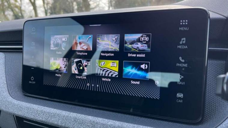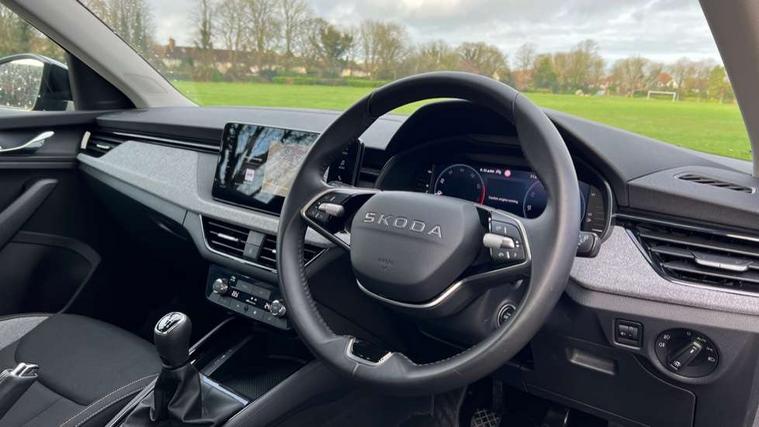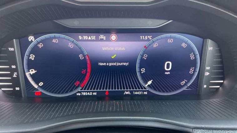 Advanced driver attention and drowsiness monitor, Bluetooth, e-Call (emergency call), Front assist system, PAS, Rear parking sensors, Rear view camera, Speed limiter, Tailgate, Traffic sign recognition, Virtual Cockpit - 10.25" digital display, Voice control system, Wireless smartlink, 4 USB C ports, 8 Speakers, 9.2" Skoda navigation display, DAB radio, Auto dimming rear view mirror, Automatic headlamp activation with Coming home and Leaving home feature, Automatic high/low beam, Body colour bumpers, Body colour door mirrors and handles, Chrome moulding around grille, Front and rear electric windows, Full LED headlights, Heated rear window, LED 3rd brake light, LED brake lights, LED daytime running lights, LED front turning lights, LED high beam, LED low beam, LED taillights, Rear LED fog light, Rear side wing doors, Rear wiper, Tinted windows, Unique dark chrome design logo on alloy wheels, 12V socket in luggage compartment, 3 seat bench in 2nd row, Black / Grey armrest stitching, Black hotstamping, Cargo elements, Chrome inner door handles, Door inserts in satin black, Driver and passenger sun visors with vanity mirror, Dual zone climate control, Front and rear roof lights, Front centre armrest, Front head restraints, Glasses storage in roof liner, Height adjustable driver seat, Height adjustable passenger seat, Ice scraper, Illuminated glove compartment, Inner circulation control with pollen filter, ISOFIX for front passenger seat, Isofix preparation for back seats, Leather gearknob and handbrake lever, Loft cloth upholstery, Luggage net under rear parcel shelf, Manual lumbar support for front seats, Net package and top tether hooks in boot space, Pearl grey ceiling, Pocket on the back of both front seats, incl. mobile phone pockets, Single front passenger seat, Skoda lettering on steering wheel, Textile floor mats, Third rear headrest, Ticket holder, Top tether for front passenger seat, Umbrella in driver's door, 3x3 point rear seatbelts, ABS, Child locks, Curtain airbags and front side airbags, Disc brakes, Driver and front passenger airbags, ESP, Hill hold control, Manual leather parking brake, One tone horn, Passenger airbag switch off function, Seatbelt reminder for driver and front passenger, Tyre pressure monitoring system, Anti theft alarm system with interior monitoring, backup horn and towing protection, Anti-theft wheel bolts, Remote central locking with 2 remote folding keys, SAFE function for remote central locking, Decord pad, door inserts Kota uni,