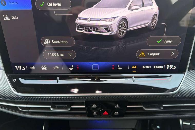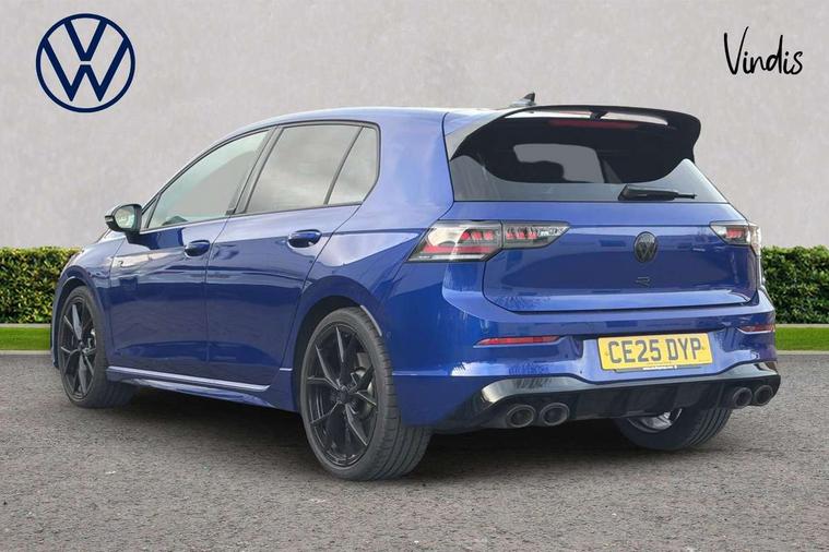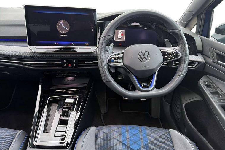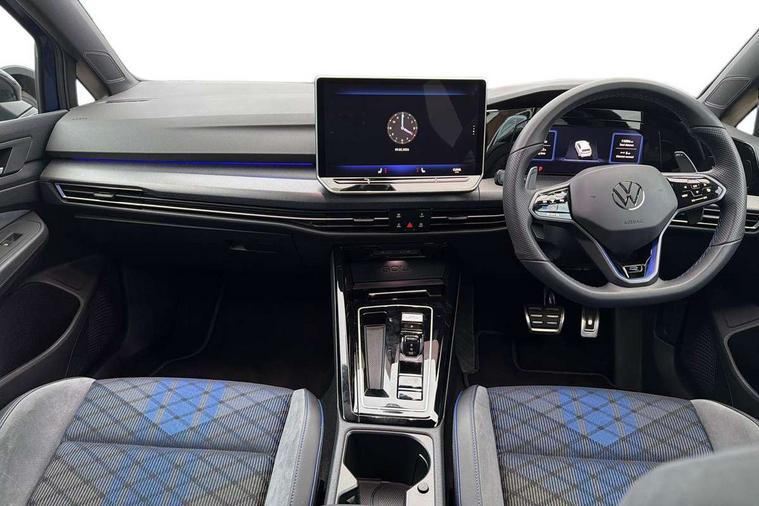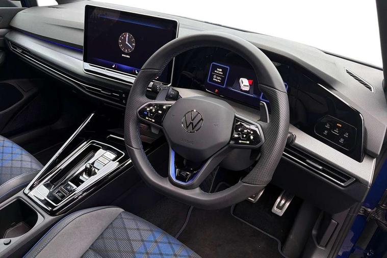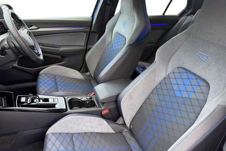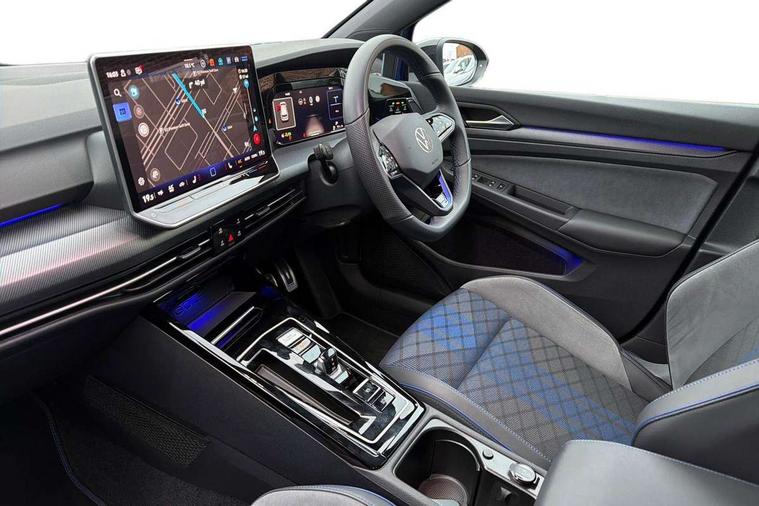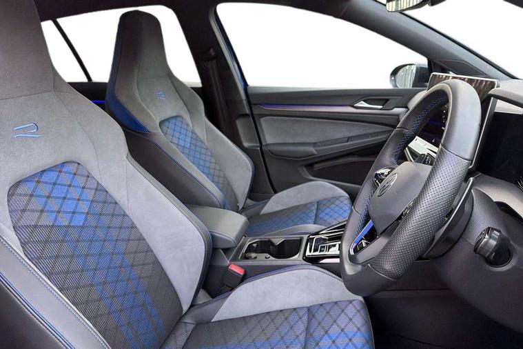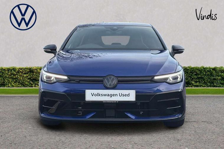 Activated carbon canister, Adaptive cruise control (ACC), Advanced driver attention and drowsiness monitor, Dynamic road sign display, E-Sim card for online connectivity, eCall emergency call system, Electronic maximum speed limit increased to 270 km/h, includes driving Modes 'drift' and 'special', larger roof spolier and GPS laptimer + G-Meter, Multi-color Digital cockpit pro, selection of different info profile possible, Multifunction front facing camera for distance control, Navigation system, Oncoming vehicle braking when turning including swerve support, Preparation for light assist system, Progressive steering, Side assist blind spot lane change system, rear traffic alert and exit warning system, Speed limiter, Speedo, rev counter, electronic odometer, trip, service interval display, exterior temperature and fuel gauge, Traffic jam assist, Voice enhancer and voice control, Warning signal and warning light for front and rear seatbelts not fastened, We connect plus preparation, We connect preparation, Wireless app connect, All wheel drive - 4Motion, Petrol Particulate Filter, Sports suspension, Start-stop system with battery regeneration (recuperation - energy recovery during braking), XDS electronic differential lock for improved traction and handling, 2 USB C ports in front, 2 USB charging sockets on the centre console in the rear charging capacity upto 45W, Comfort telephony + wireless charging, without wireless aerial connection, Digital radio reception (DAB), Diversity antenna for FM reception, Gaming platform via car app, Infotainment system with 12.9" display, Mobile phone interface with inductive charging feature, 3rd brake light, Auto dimming rear view mirror, Auto headlights, Automatic headlamp activation with Coming home and Leaving home feature, Black badge on B-pillar, Black mirror caps, Black strips on radiator grille and headlights, Body colour door handles, Darkened headlights, Darkened R Logos and VW logos in front, rear and on fender, Exhaust system with black tailpipe, Exterior ambient lighting with illuminated lighting animation and wake up/goodbye scenario, Exterior mirrors convex on the left and aspherical on the right, Front and rear electric windows, Front fog lamps and cornering light, Heat insulating windshield made of laminated glass, LED daytime running lights, LED matrix headlights with ambient light V2, advanced high beam, dynamic range contol with cornering, LED rear lamp with indicator, poor weather, R name plate, Rain sensor, Rear fog light on one side and reversing lights on both sides, Rear side wing doors, Rear tinted glass 65% light absorbing from B pillar backwards, Rear windscreen washer and wiper with interval delay, Remote electrically foldable door mirrors, puddle lights and reverse activated passenger's door mirror, Welcome light with surround lighting, 12V socket in front centre console, 12V socket in luggage compartment, 3 rear head restraints, 3 seat bench in 2nd row, 30 colour ambient lighting, illuminated center console storage compartment in front, Air care climatronic 3 Zone automatic climate control with rear air conditioning control panel, Aluminium gearshift handle, Brushed stainless steel pedals, Carpet mats, front and rear, Front centre armrest, Integrated front head restraints, ISOFIX anchors for child seats on outer rear bench seats and on front passanger seat compatible for i-Size, Luggage compartment lighting, Rear cupholder and loadthough, Single front passenger seat, Soul black instrument panel, Split folding backrest with centre armrest and unsplit rear seat bench, Storm grey roof lining, Sun visors with illuminated vanity mirrors, Driver assistance pack - Golf DSG Estate/Hatchback, R styling pack - Golf, Technology park and comfort pro package - Golf Hatchback, 3 point height adj front seatbelts + pretensioners, 3 rear three point seatbelts, ABS, Autonomous emergency braking front assist with pedestrian and cyclist monitoring, Child locks on rear doors, Disc brakes in rear incl. brake calipers in black with darkened R-logo, Driver and front passenger airbag with front passenger airbag deactivation, Electronic parking brake with auto hold, ESC (Electronic Stability Control), Extended pedestrian protection measures, Hill start assist, Two tone horn, Tyre pressure loss indicator, Volkswagen roadside assistance, Anti theft wheel bolts, Preparation for alcohol interlock, Wheel hub cover with darkened R-logo,