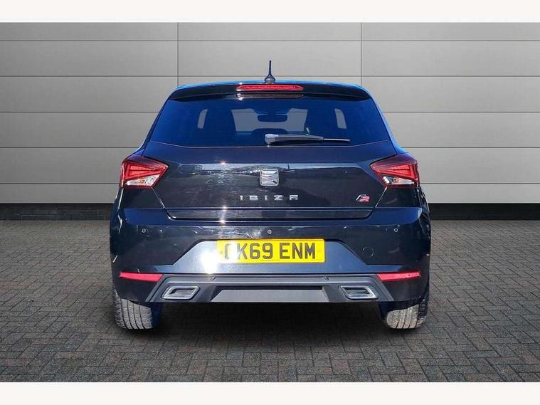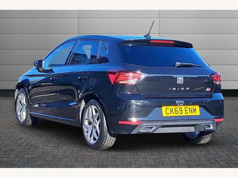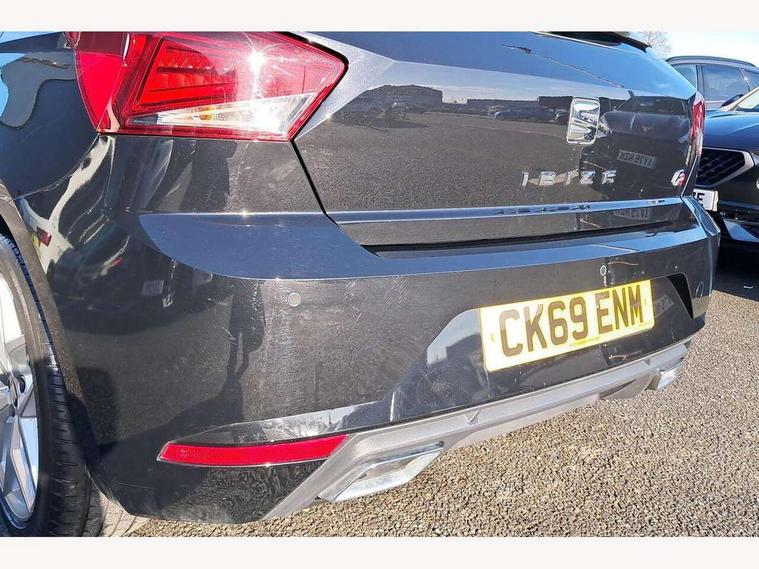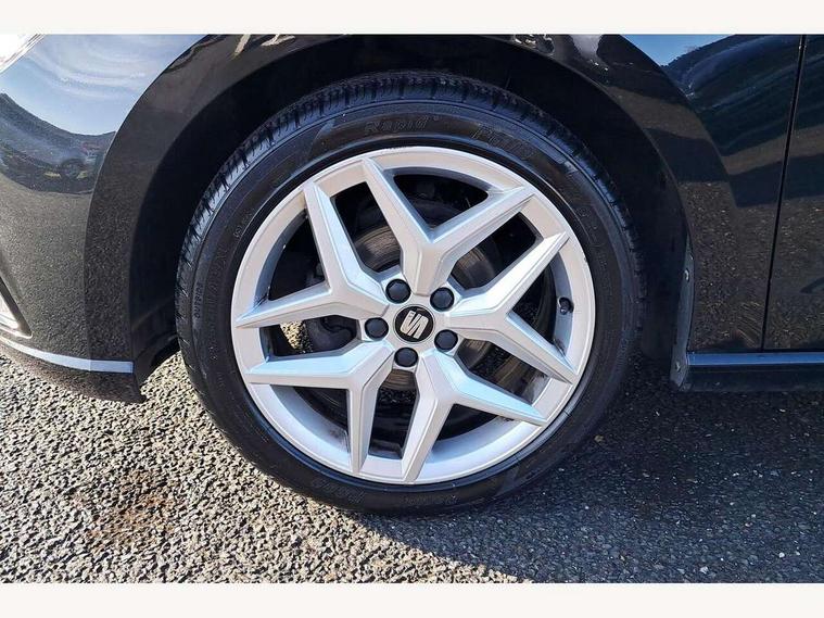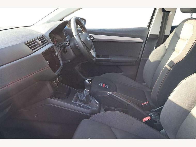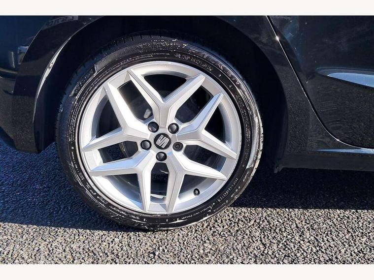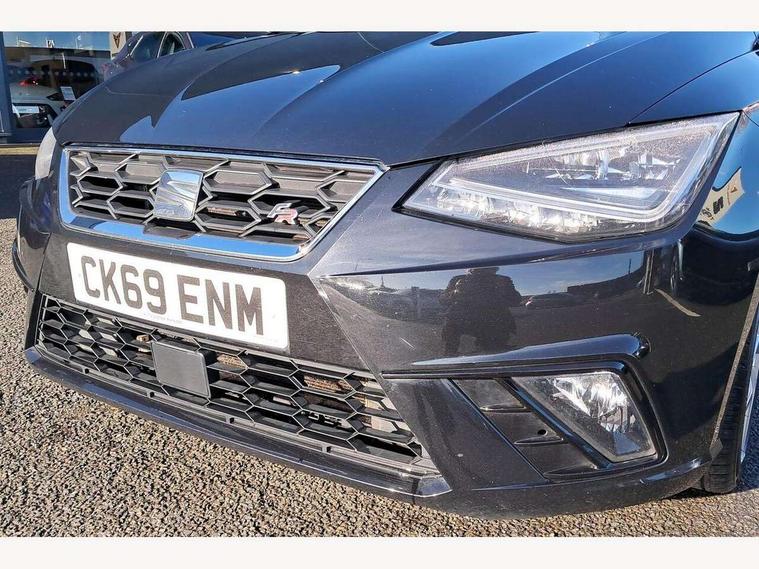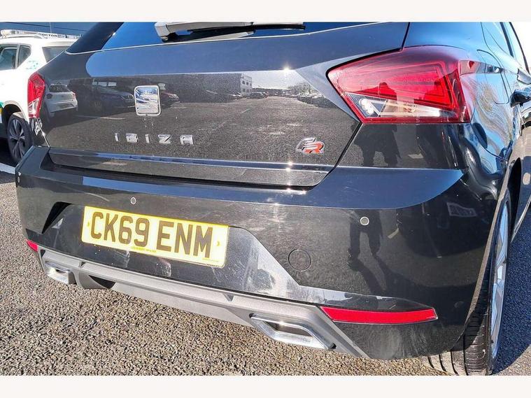 'Lights On' Reminder warning buzzer, Bluetooth Handsfree Phone Connection, Cruise control, Digital clock, Full Link Smartphone Integration with Mirror Link, Apple Car Play, Google Android Auto, Low fuel warning light, Outside temperature gauge, Power Steering, Satellite navigation system with 3D mapping, 8" touch screen, voice control and additional USB port, SEAT Drive profile, SEAT logo boot release, Trip computer, Sports suspension, 6 speakers, Auxiliary input socket, CD player, Digital Audio Broadcast (DAB) Tuner, Radio/MP3 player, SD card slot, SEAT USB media cable, Steering wheel mounted controls, USB port, Anti theft roof antenna, Auto dimming rear view mirror, Automatic headlights, Automatic rain sensing wipers, Body colour bumpers, Body colour door handles, Brilliant black door mirrors, Chrome front grille frame, Chrome grille, Coming/leaving home lighting function, Cornering front fog lights, Dark tinted rear windows, Electric folding door mirrors, Electric front windows, Electric headlight adjustment, Electrically adjustable and heated door mirrors, Exclusive FR rear bumper, Full LED headlights, LED daytime running lights, LED tail lights, Rear fog lights, Twin exhaust pipes, 3 rear headrests, 60/40 split folding rear seat, Air conditioning, Door and steering wheel ice metal decorative inserts, Driver's sunvisor with ticket holder/vanity mirror, Dust/pollen filter, Flat bottomed perforated leather steering wheel with red stitching and FR logo, Front courtesy lights, Front cupholders x 2, Front reading lights, Gear shift indicator, Glovebox, Height adjustable driver's seat, Height adjustable front/rear head restraints, Height adjustable passenger seat, Height/reach adjust steering wheel, Illuminated boot, Instrument lighting with brightness control, Leather handbrake, Multi-colour ambient interior lighting, Nora cloth upholstery, Passenger sunvisor, Rear top tether child seat ISOFIX attachment, Sports seats, Full LED headlight pack - Ibiza, 3 point seatbelts on all 3 rear seats, ABS, Active front headrests, Child locks on rear doors, Curtain airbags, Driver/Front Passenger airbags, ESP+EBA, Front assist (AEB), Front passenger airbag deactivation, Front side airbags, Hill hold control, Multi-Collision braking, Seatbelt warning, Tiredness recognition system, Tyre pressure monitoring system, Electronic engine immobiliser, Locking wheel bolts, Remote central locking + deadlocks, Volumetric alarm with back up horn, Leather dashboard, 17" Dynamic alloy wheels,
