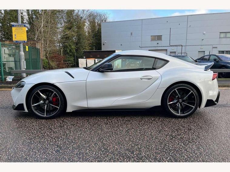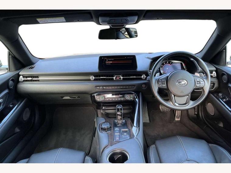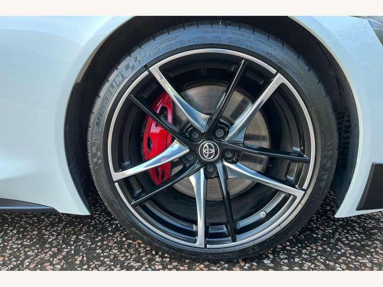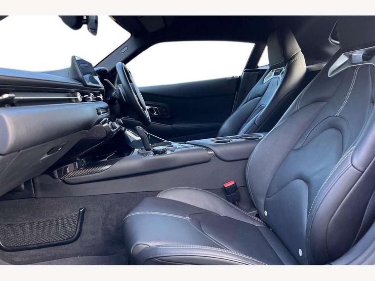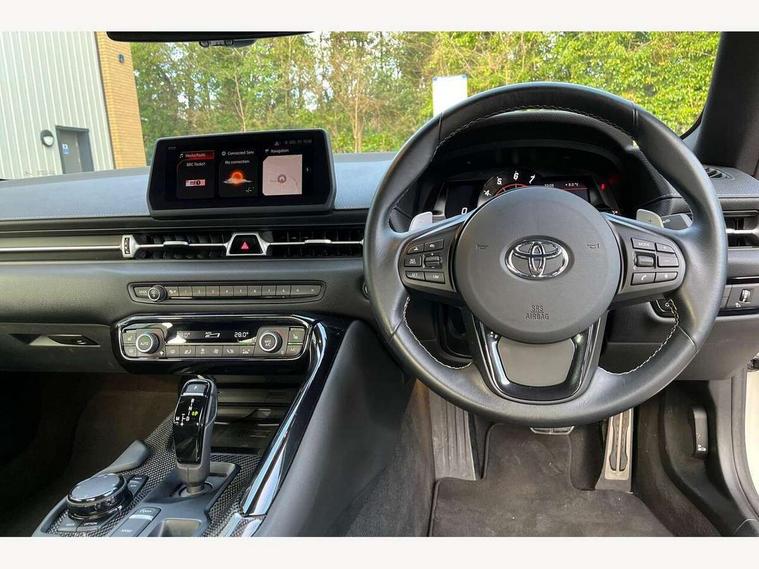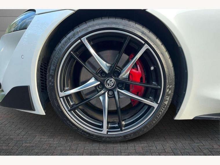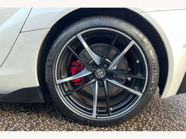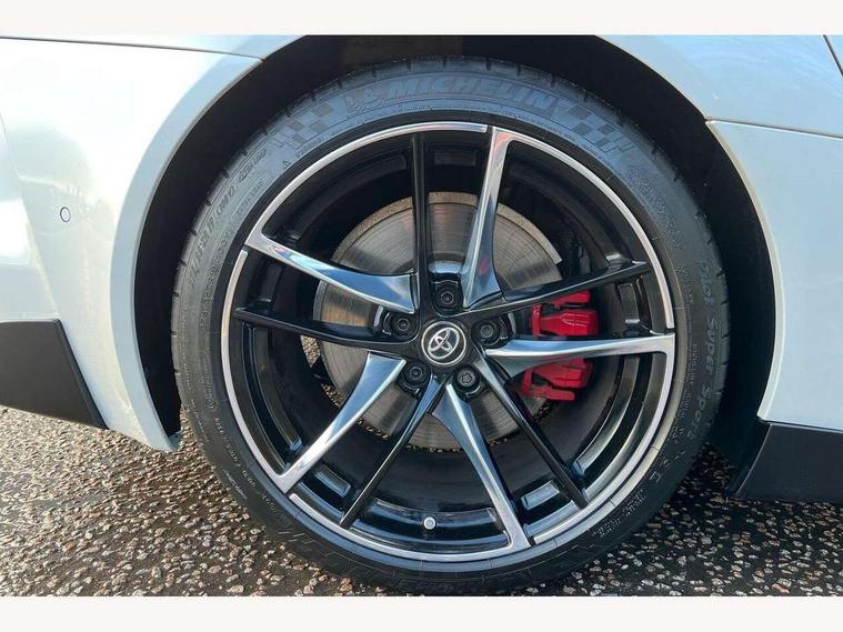 Adaptive cruise control with stop and go + steering wheel, Adjustable speed limiter, Blind spot monitor, Bluetooth handsfree system, Digital speedometer, Drive mode selector, Driver and passenger microphone, E-call, Front and rear parking sensors, Head up Display, Lane departure alert with steering control, PAS, Push button start, Rear collision warning, Rear cross traffic alert, Rear view camera, Remote boot door release in cabin, Road sign assist - RSA, Service indicator, Smartphone integration with Apple CarPlay, Sport drive mode, Start/stop system, Telephone switch on steering wheel, Toyota supra connect, Voice recognition, Wireless charger, Active sports differential, Adaptive variable suspension, Vehicle Stability Control (VSC), 2.1 amp USB connector, Audio switch on steering wheel, DAB Radio (Digital Audio Broadcasting), Glass integrated antenna, JBL premium sound system with 12 speakers, Toyota touch 2 with go navigation system, Auto adaptive high beam, Auto cut off headlamps, Auto dimming inside rear view mirror, Auto headlights, Automatic headlight levelling, Automatically retractable door mirrors, Boot door release with push button, Brushed stainless steel dual exhaust pipes, Cornering light, Electrically adjustable driver and passenger door mirrors with memory function, Electrochrome door mirrors, Follow me home headlights, Heated door mirrors, Indicators integrated on door mirrors, LED daytime running lamp, LED dual beam projector headlights, LED front light guide, LED High mounted stop light, LED Indicators, LED rear fog light, Piano black door mirrors, Rain sensing wipers, Reverse gear tilting passenger door mirror, 12V power outlets front and rear, Active sound control, Aluminium door scuff plates, Aluminium pedals, Boot light, Chrome insert on centre console, Door courtesy light, Driver and front passenger personal light, Driver and passenger seatback pockets, Driver seat memory function, Driver/passenger sunvisors and illuminated vanity mirrors, Dual zone automatic air conditioning, Electrically adjustable lumbar support for driver and front passenger, Electrically height adjustable, sliding and reclining front seats, Floor mats, Front cupholders, Front footwell lights, Front headrests, Front sports seats, Gear shift indicator, Glovebox light, Heated driver and front passenger seats, Leather steering wheel, Leather upholstery, Luggage holding net, Luggage hooks, Multimedia switches on steering wheel, Paddle shift controls, Power tilting cushion on driver seat, Tilt/telescopic adjustable steering wheel, Tonneau cover, Voice recognition switch on steering wheel, Child restraint system, Electronic parking brake, Emergency brake light system (EBS), Front seatbelt reminder, Pre-collision system with pedestrian and cyclist detection, Red sports rear brake caliper, Sports front brake caliper, Start holding control, Supplemental restraint system (SRS) airbags - 7 airbags including driver, front passenger, curtain, side and knee airbags, Traction control, Tyre pressure monitoring system, Immobiliser, Intrusion sensor and alarm, Locking wheel nuts, Power door locks, Remote door lock, Smart entry, Speed detecting automatic door lock, Tilt detection sensors, Carbon dash insert, 19" Black and silver forged alloy wheels, Tyre repair kit,