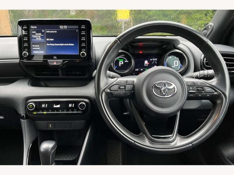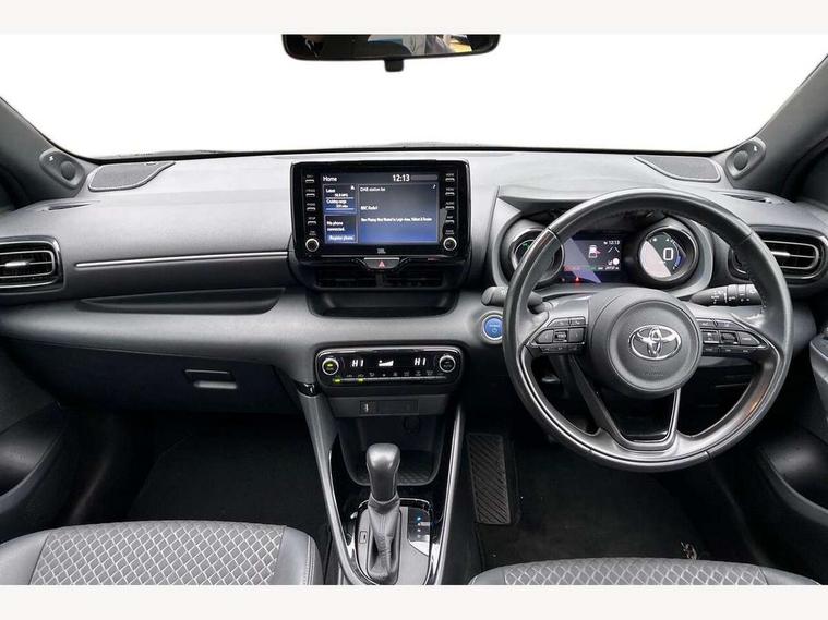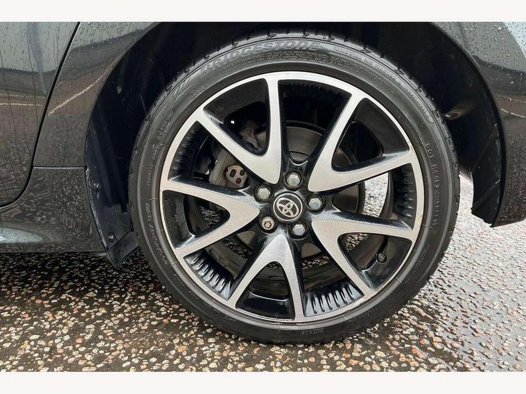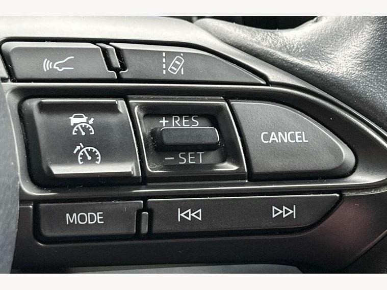 Adaptive cruise control, Adjustable speed limit with speed warning, Bluetooth connectivity, Colour binocular inspired displays with digital speedometer, E-call, Electric power steering, Hybrid energy display, Multi information display switches on steering wheel, Reversing camera, Smartphone integration with Apple CarPlay and Android auto, Vehicle Stability Control (VSC), 8" Multimedia display touch screen, JBL Premium sound system with 8 speakers, Toyota Touch 2 with DAB, USB connection, Acoustic windscreen glass, Auto windscreen wipers, Automatic headlights, Body coloured door mirrors, Electric adjustable heated door mirrors, Follow me home headlights, Front auto power windows with anti jam protection, Full LED rear lights, LED daytime running lights, LED front fog lights, LED Headlights, LED High mounted stop lamp, Painted front grille, Rear auto power windows with anti jam protection, Rear privacy glass, Rear spoiler, Shark fin antenna, Turning signal integrated indicators in door mirrors, 3 adjustable rear headrests, 3 spoke leather steering wheel, 60/40 split folding rear seat, Adjustbale boot height, Coat hooks in rear grab handles, Cup holders (2 front & door), Data Communication Module (DCM) connected services, Dual zone automatic air conditioning, Fabric seat with partial synthetic leather upholstery, Front armrest, Front sport seats, Glovebox, Height adjustable driver's seat, Height adjustable passenger seat, Isofix seat fixing, Leather gearshift, Map pockets on the backs of the front seats, Pollen filter, Shopping bag hooks, Tilt/telescopic steering column, 3 point seatbelts on all rear seats, ABS+EBD+Brake assist, Active headrests, Electronic parking brake, Emergency brake light system (EBS), Front passenger airbag on/off switch, Front seatbelt reminder, Hill start assist control (HAC), Rear child proof door locks, Rear seat belt reminder, Supplemental Restraint System (SRS) 8 airbags: Driver & passenger's airbags, dual side curtain airbags, side impact airbags, front centre airbag, Toyota Safety Sense 2, Precollison + Night time Pedestrian & Cyclist Detection, Lane Trace Assist, Auto High Beam, Intelligent ACC & Road Sign Assist, Tyre pressure warning system, Alarm/immobiliser, Keyless smart entry with push button start, Remote powered central double locking doors, Piano black interior trim, Soft touch instrument panel, Space saver spare wheel,