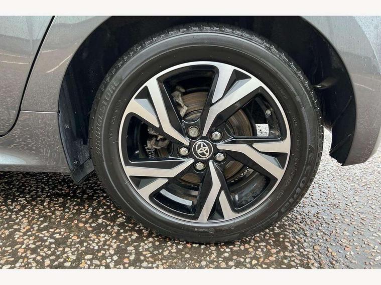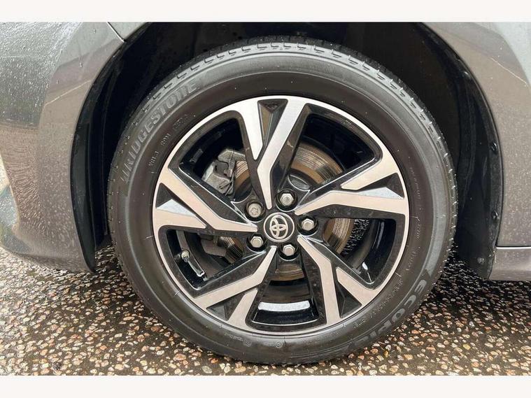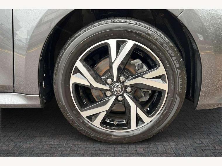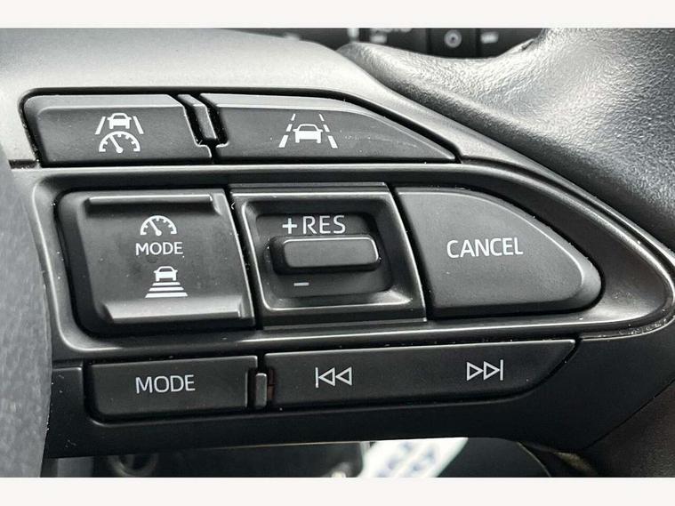 7" Digital Combimeter, Adaptive cruise control, Adjustable speed limit with speed warning, Bluetooth connectivity, Colour binocular inspired displays with digital speedometer, E-call, Electric power steering, Hybrid energy display, Multi information display switches on steering wheel, Reversing camera, Smartphone integration with Apple CarPlay and Android auto, Tailgate, Voice recognition, Vehicle Stability Control (VSC), 4 speakers, 9" Multimedia touch display, Toyota Touch 3 system with DAB radio, USB connection, Acoustic windscreen glass, Auto windscreen wipers, Automatic headlights, Body coloured door mirrors, Electric adjustable heated door mirrors, Follow me home headlights, Front auto power windows with anti jam protection, Full LED rear lights, LED daytime running lights, LED front fog lights, LED front light guide, LED Headlights, LED High mounted stop lamp, LED Indicators, LED rear light guide, Manual headlight levelling, Painted chequered front grille, Rain sensor, Rear auto power windows with anti jam protection, Rear privacy glass, Rear side wing doors, Rear spoiler, Rear wiper, Shark fin antenna, Turning signal integrated indicators in door mirrors, Variable front intermittent wipers, 3 adjustable rear headrests, 3 seat bench in 2nd row, 3 spoke leather steering wheel, 60/40 split folding rear seat, Active headrests, Adjustable boot height, Auto air conditioning, Coat hooks in rear grab handles, Cup holders (2 front & door), Data Communication Module (DCM) connected services, Fabric upholstery, Front armrest, Glovebox, Grey roof lining, Height adjustable driver's seat, Isofix seat fixing, Leather gearshift, Pollen filter, Shopping bag hooks, Single front passenger seat, Tilt/telescopic steering column, 3 point seatbelts on all rear seats, ABS+EBD+Brake assist, Electronic parking brake, Emergency brake light system (EBS), Front passenger airbag on/off switch, Front seatbelt reminder, Hill start assist control (HAC), Rear child proof door locks, Rear seat belt reminder, Supplemental Restraint System (SRS) 8 airbags: Driver & passenger's airbags, dual side curtain airbags, side impact airbags, front centre airbag, Toyota Safety Sense 3 with over the air updates, Tyre pressure warning system, 2x Master key, Alarm/immobiliser, Remote powered central double locking doors, Soft touch instrument panel, Space saver spare wheel,