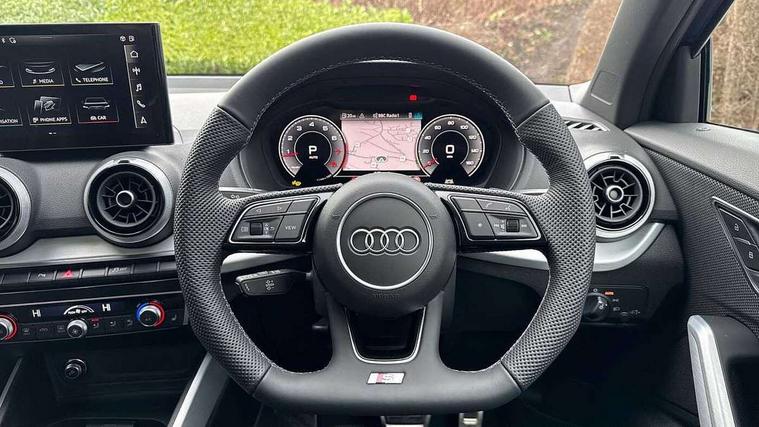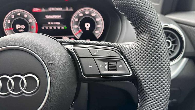 3D map display, Audi connect navigation and infotainment includes innovative services, Audi connect remote and control connects your vehicle to your smartphone, Audi drive select: S tronic - power steering assistance + engine + gearshift (modes: comfort, auto, dynamic, efficiency, individual), Audi smartphone interface - Apple carplay/Android Auto, USB connect, 2xSDXC card readers, voice control for navi, telephone, music and 3rd party apps, Audi virtual cockpit, Automatic start/stop system with recuperation, Bluetooth interface includes bluetooth audio streaming, Camera based traffic sign recognition, Cruise control, Distraction and Fatigue warning, E-call, Jukebox hard drive memory for music (10GB), Lane departure warning, MMI navigation plus with 8.8" touchscreen, Natural voice recognition, Power operated tailgate, Progressive steering, Rear parking sensors, Sport suspension, 6 passive loudspeakers, DAB Digital radio, USB type C port, Audi beam, Auto dimming rear view mirror, Black window trims, Bumper in full body colour paint finish, Electrically adjustable, folding, auto dimming and heated door mirrors with integrated LED side indicators, Front windscreen with grey tinted sunband, LED daytime running lights, LED headlights with dipped beam, high beam, position lights, indicators, LED rear lights, LED third brake light, Privacy glass - dark tinted rear and rear side windows from B-pillar backwards, Rear side wing doors, Rear wiper, Variable front intermittent wipers, Wheel arch trims in manhattan grey, 12V socket in front, 3 seat bench in 2nd row, 3 spoke flat bottomed multi-function leather sport steering wheel with gear shift paddles with S logo, 4-way electric lumbar support for front seats including manual seat height adjustment for both front seats, 60/40 split folding rear seat bench, Black carpets, Black cloth headlining, Front and rear head restraints, Front centre armrest, Front sport seats, Front/rear floor mats, Height/reach adjust steering wheel, Illuminated door sill trims with S logo, ISOFIX child seat mounting in front passenger and rear outer seats, Manual air conditioning, Single front passenger seat, Stainless steel pedals, Black styling pack - Q2, 3x3 point rear seatbelts, 6 airbags - Front, curtain and front side airbags, Electromechanical parking brake, Electronic stabilisation control including ABS, ASR and EDL, Front passenger airbag deactivation, Hill hold assist, Pre-sense front with pedestrian recognition, Seatbelt monitoring, Tyre pressure warning light with visual and acoustic warning, Warning triangle and first aid kit, Anti theft wheel bolts, Electronically operated child locks, Remote central door locking, Thatcham category 1 alarm, Aluminium interior element, Black dashboard, Gloss black centre console, Matt brushed aluminium trim inlays, Tool kit,