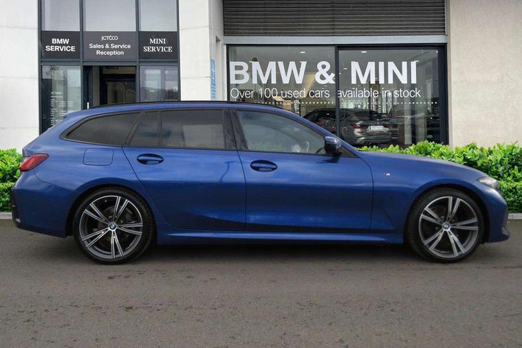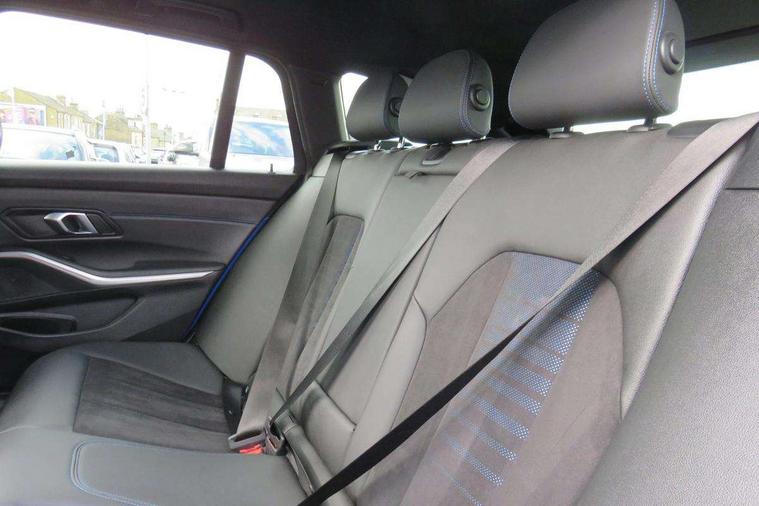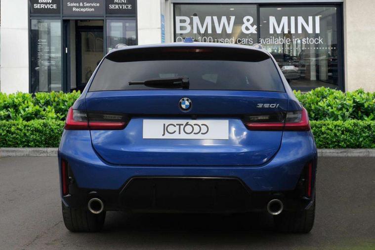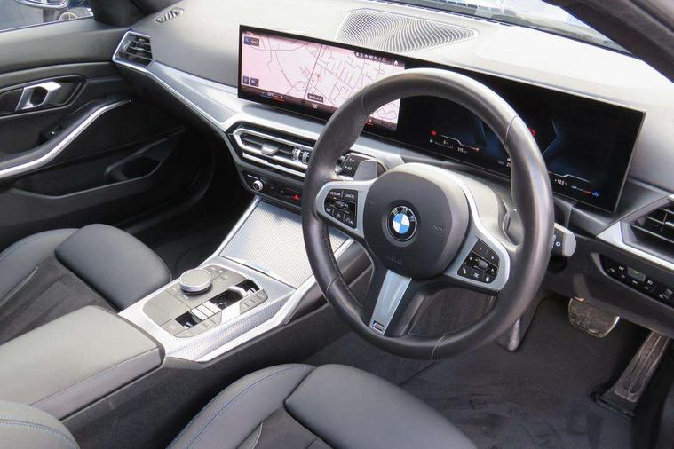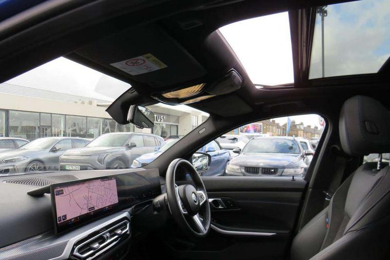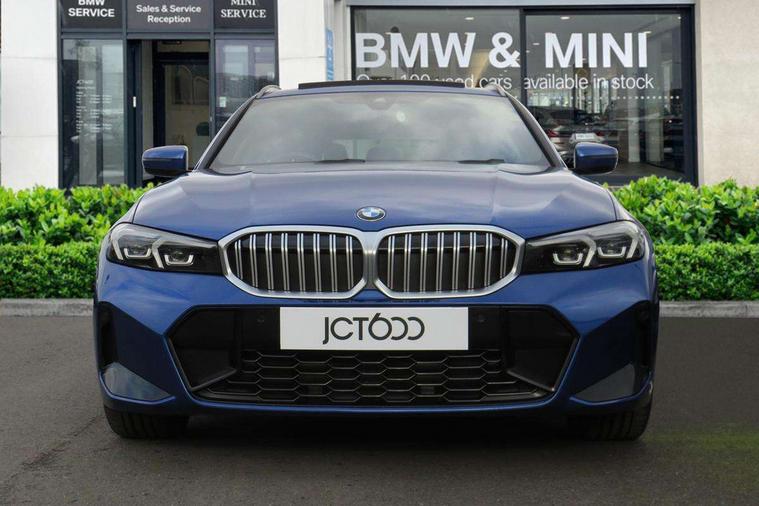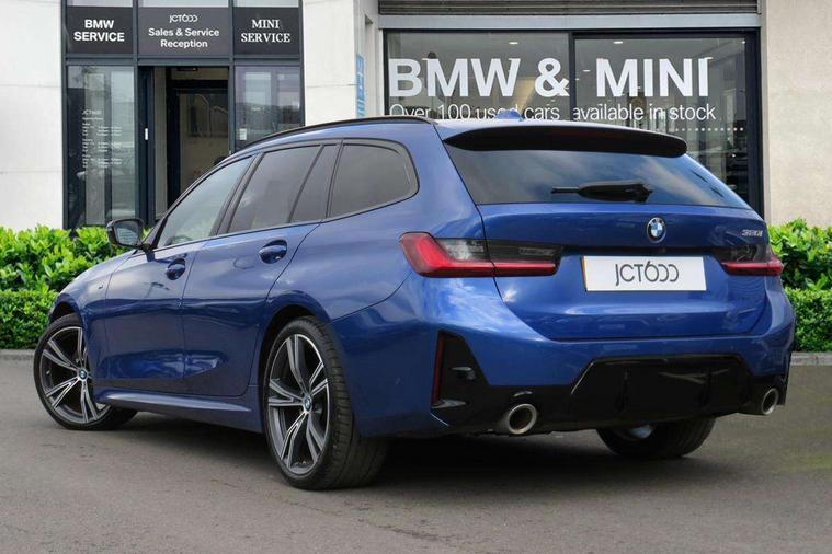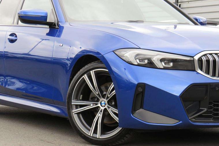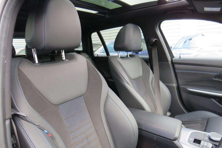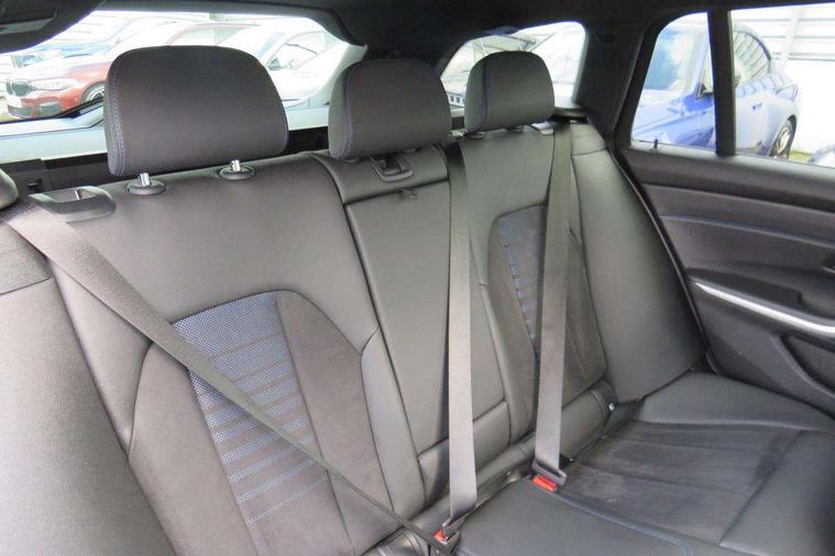 Active guard plus, Attentiveness assist, Automatic Start/stop button, Bluetooth Wi-Fi interface, BMW iDrive, BMW Teleservices, ConnectedDrive Services - last state call, Electric bootlid, Live cockpit plus with Navigation + 12.3" instrument display + 14.9" display, Intelligent voice assist, 2 USB, 4G LTE connect, Oil sensor for level and grade, Personal e-SIM, Shifting point display, Variable sport steering, Double joint spring strut front axle, Electronic differential lock control (EDLC), Fuel tank breather system, Sport automatic transmission with steering-wheel mounted gearshift paddles and launch control, DAB tuner, 3rd brake light, Auto dimming rear view mirror, Automatic headlight beam throw control with load dependent regulating reaction, dynamic compensation of braking dive and acceleration squat, Bi-LED Low and high beam headlights, BMW emblem, engine compartment lid and tailgate, Body colour roof fin, Door sill strips, Electric windows - front and rear, with open/close fingertip control, anti-trap facility and comfort closing, Fading support, Follow me home headlight function, Front and rear bumper system with replaceable deformation elements, Front apron plastic in body colour, Fuel filler flap - right rear in body colour, Heat protection glazing on front windows and windscreen, Heated washer jets, High gloss chrome kidney frame with high gloss black kidney struts, High gloss shadow line roof rails, LED daytime running lights, LED rear lights, LED turn indicator, Licence plate panel integrated into front bumper and tailgate, M high gloss shadow line exterior trim, Matt black B-pillar finsher, Matt black window recess cover, One piece front bumper cover including towing eye cover in body colour, Rain sensor with automatic headlight activation, Rear side wing doors, Rear wiper, Reversing lights, Side frame decorative moulding black matt, Trailer stabilisation logic, Visible exhaust tailpipe finisher, Welcome lights in interior and door handle area, 12V power socket in front storage compartment, 2 front cupholder in centre console with clamping elements and matt black inlay, 3 seat bench in 2nd row, 3 spoke M Sport multifunction flat bottom leather steering wheel, 3 zone automatic air conditioning, 40:20:40 split folding rear seat with loading system, Anthracite headlining, Armrest integrated in front and rear door trim + front centre console armrest, BMW ID, Cruise control operation in steering wheel, Driving experience mode switch, Folding rear centre armrest with 2 cupholders, Front and rear headrests, Front and rear velour floor mats, Front footwell lighting, Front reading light, Heated front seats, Height adjustable mechanically and infinitely variable steering column, Illuminated armrest storage compartment, Illuminated glove compartment, Illuminated luggage compartment, Lashing eyelets in luggage compartment, Single front passenger seat, Sunvisors with illuminated vanity mirrors and ticket pocket, Toolkit located in luggage compartment, Connected pack professional - 3 Series Saloon/Touring, Interior and exterior mirror pack - 3 Series Touring/Saloon, M sport exterior styling pack - 3 Series Saloon/Touring, Parking assistant pack - 3 Series, 3x3 point rear seatbelts, BMW emergency call, Child locks on rear doors, Crash sensor activating of airbags, Unlocking doors, hazard warning lights, interior light, safety battery terminal, Drive-off assistant, Driver and front passenger with seat occupancy detection for driver's and passenger side, Driver and passenger side airbags, body protection at side and airbags deploy from seat backrests, Dry braking, Dynamic brake control, Dynamic stability control + (DSC+) - Anti-lock Braking System (ABS) with brake assist and cornering brake control + Automatic Stability Control (ASC), Dynamic Traction Control - DTC, Electric parking brake including automatic hold function and automatic release of the parking brake when driving off, Front airbag deactivation, Front airbags for driver and front passenger, Head airbags in 1st and 2nd row, head protection at side, curtain airbags open from headliner above 1st and 2nd row, Plastic fuel tank, Side impact protection, Tyre pressure sensors, Ventilated front and rear disc brakes, Warning triangle and first aid kit, Alarm system, Centre lock switch, Closing system with central locking, Electronic vehicle immobiliser, Locking wheel bolts,