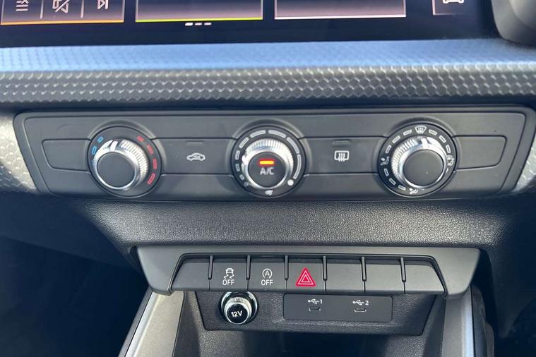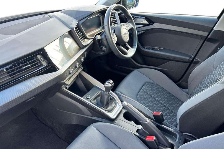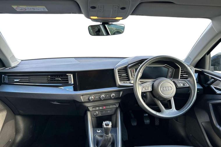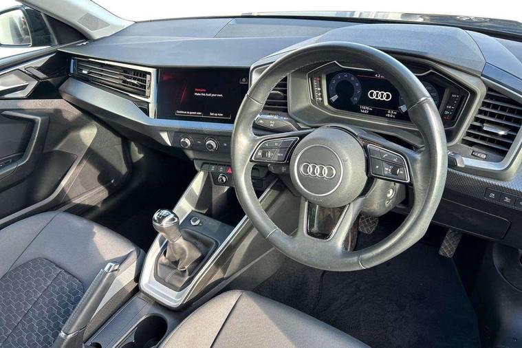 10.25" Digital instrument cluster display classis style instrument dials + speed, odometer, time, outside temperature, telephone menu + fuel level warning, Audi smartphone interface with connect compatible smartphone via USB directly MMI display + Nav, music, third party apps controlled via MMI controller, Automatic start/stop system, Bluetooth interface, Cruise control, Driver's information system, Electromechanical power steering, Emergency e-call, Lane departure warning system, Rear parking sensor, Service interval indicator, Speed limiter, Voice control system, Washer fluid level indicator, Dynamic suspension, 2 x USB type C connection points, 6 passive loudspeakers, DAB Digital radio, MMI radio plus with 10.1" colour MMI display screen and MMI touch, Auto dimming rear view mirror, Body coloured bumpers, Body coloured door mirrors, Electric front and rear windows, Electrically adjustable, heated, folding door mirrors with integrated LED side indicator, Front side air inlets in grained matt black and C frame in anthracite black, Heat insulating glass windscreen and side windows, Heated rear windscreen, High level LED brake light, LED headlights with LED rear lights + dynamic rear indicators + headlight adjustment and high beam, turning light + LED daytime running lights, Radiator grille and rear diffuser in matt anthracite black, Radiator protective grille frame in matt aluminium silver, Rain and light sensors, Rear fog lights, Rear side wing doors, Rear wiper, Side front spoiler lips in grained matt black, 12V socket in centre console with two cup holders, 3 rear seats with headrests, 3 seat bench in 2nd row, 3 spoke leather multifunction plus steering wheel, 40:60 Split folding rear seat or folded fully, Black front and rear floor mats, Door sill trims with aluminium inlay, Driver and passenger seat with manual height adjust with forward and backwards adjustment, Front head restraints, Front passenger seat, Grey cloth headlining, Height and reach adjustable steering wheel, ISOFIX child seat mounting for front passenger and outer rear seats including top tether attachment point of outer rear seats, Leather gear knob with aluminium trim, Leather handbrake grip, Luggage compartment light with front and rear reading lights, Manual air conditioning, Manually adjustable lumbar support in front seats, Novum cloth upholstery with front sport seats, Luggage compartment pack - A1, 3x3 point rear seatbelts, Audi pre-sense front with pedestrain and cyclist recognition, Brake assist function, Driver and front passenger airbag with front side and head airbags, Electronic Stability Control including ABS, EBD, ASR and EDL, Front passenger airbag deactivation switch, Hill hold assist, Manual rear child locks, Seatbelt height adjustment for front seats, Seatbelt monitoring, Tyre pressure warning light, Warning triangle and first aid kit, Anti theft alarm, Anti theft wheel bolts and loose wheel warning, Immobiliser, Remote central locking with 2 foldaway keys, Aluminium trim for control switches, air vents and digital instrument cluster, Black dashboard, Silver grey accent areas including air vents, door handle recesses and centre console in diamond paint finish, Slate grey inlays polygon structure in fine paint finish,