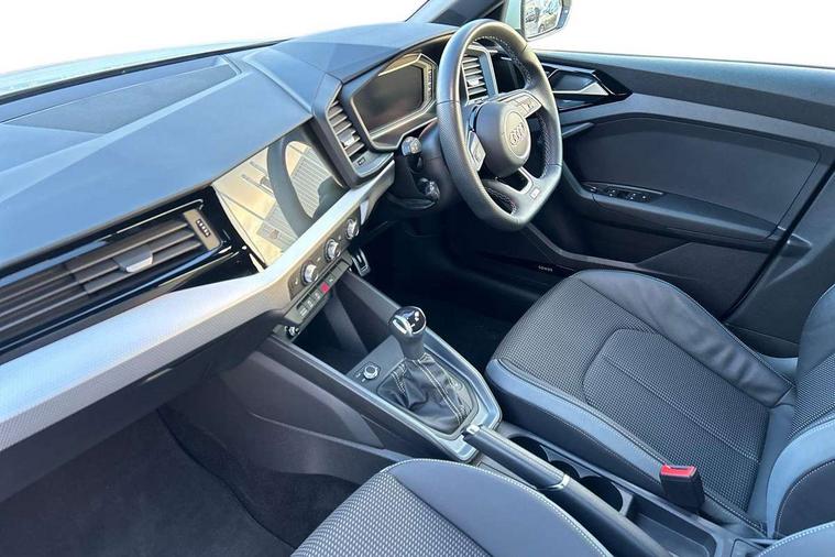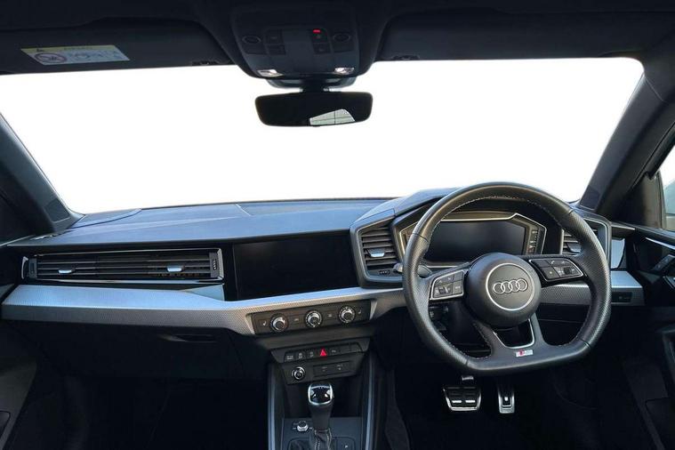 10.25" Digital instrument cluster display classis style instrument dials + speed, odometer, time, outside temperature, telephone menu + fuel level warning, Audi drive select - power steering assistance + engine + gear shift 3 preset modes (auto, dynamic, efficiency and an Individual mode), Audi smartphone interface with connect compatible smartphone via USB directly MMI display + Nav, music, third party apps controlled via MMI controller, Automatic start/stop system, Bluetooth interface, Cruise control, Driver's information system, Electromechanical power steering, Emergency e-call, Lane departure warning system, Rear parking sensor, Service interval indicator, Speed limiter, Voice control system, Washer fluid level indicator, Sports suspension, 2 x USB type C connection points, 6 passive loudspeakers, DAB Digital radio, MMI radio plus with 10.1" colour MMI display screen and MMI touch, Auto dimming rear view mirror, Body coloured door mirrors, Door sills with aluminium inlays and S Line logo, Electric front and rear windows, Electrically adjustable, heated, folding door mirrors with integrated LED side indicator, Front side air inlets in grained matt black and C frame in anthracite black, Heat insulating glass windscreen and side windows, Heated rear windscreen, High level LED brake light, LED headlights with LED rear lights + dynamic rear indicators + headlight adjustment and high beam, turning light + LED daytime running lights, Privacy glass, Radiator grille and rear diffuser in matt anthracite black, Radiator protective grille frame in matt aluminium silver, Rain and light sensors, Rear fog lights, Rear side wing doors, Rear wiper, S line badges on front wings, Side front spoiler lips in grained matt black, 12V socket in centre console with two cup holders, 3 rear seats with headrests, 3 seat bench in 2nd row, 3 spoke leather multi-function plus steering wheel features S badging and grips in perforated leather with contrast stitching, 40:60 Split folding rear seat or folded fully, Black cloth headlining, Driver and passenger seat with manual height adjust with forward and backwards adjustment, Front and rear black floor mats with contrast stitching in fine silver, Front head restraints, Front passenger seat, Height and reach adjustable steering wheel, ISOFIX child seat mounting for front passenger and outer rear seats including top tether attachment point of outer rear seats, Leather gear knob with aluminium trim, Leatherette handbrake grip, Luggage compartment light with front and rear reading lights, Manual air conditioning, Manually adjustable lumbar support in front seats, Stainless steel pedals, LED interior lighting pack - A1, Luggage compartment pack - A1, S line exterior styling pack - A1 Sportback, 3x3 point rear seatbelts, Audi pre-sense front with pedestrain and cyclist recognition, Brake assist function, Driver and front passenger airbag with front side and head airbags, Electronic Stability Control including ABS, EBD, ASR and EDL, Front passenger airbag deactivation switch, Hill hold assist, Manual rear child locks, Seatbelt height adjustment for front seats, Seatbelt monitoring, Tyre pressure warning light, Warning triangle and first aid kit, Anti theft alarm, Anti theft wheel bolts and loose wheel warning, Immobiliser, Remote central locking with 2 foldaway keys, Aluminium trim for control switches, air vents and digital instrument cluster, Black dashboard, Silver grey inlays polygon structure in diamond paint finish, Structured grey accent areas including air vents, door handle recesses and centre console in quartz paint finish,