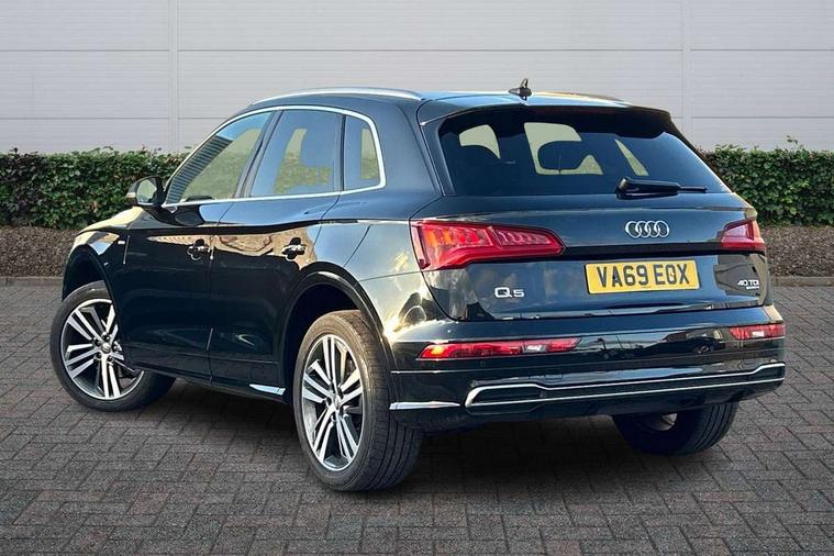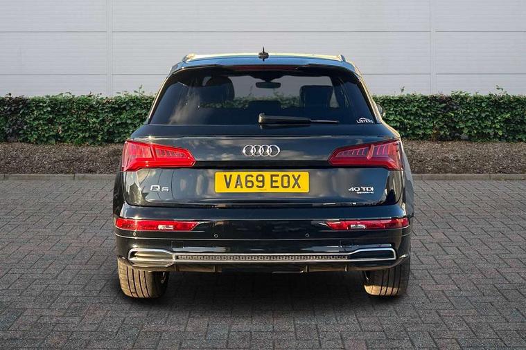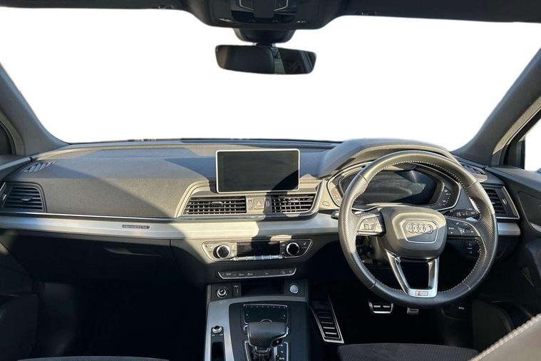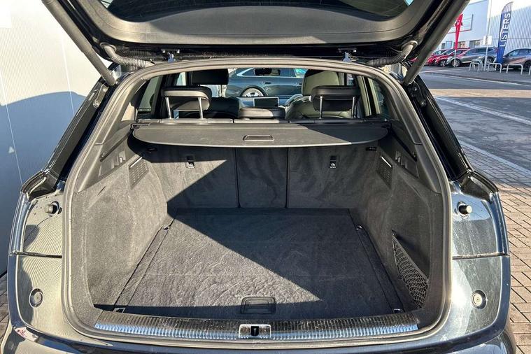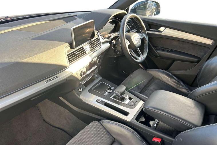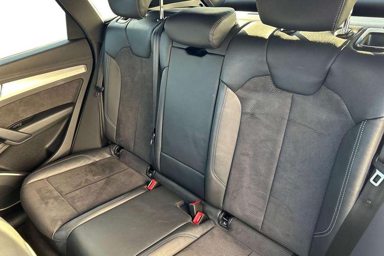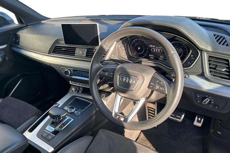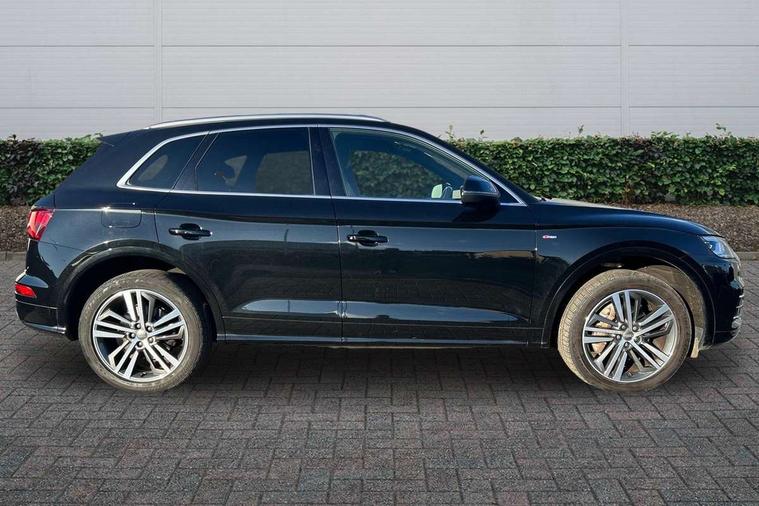 Matt brushed aluminium inlays, High gloss pack - Q5, LED interior light pack - Q5, Non Smokers pack, Anti theft alarm, Anti-theft wheel bolts, Keyless Go access/ignition system, Remote central locking, 2x SD card slot, CD player, DAB Digital radio, MMI radio plus with 7" colour MMI screen and MMI controller, 3 point seatbelts on all seats, 6 airbags - Driver, front passenger, curtain and side airbags, Electromechanical parking brake, Electronic stabilisation control including ABS, ASR and EDL, Front passenger airbag deactivation, Hill descent control, Hill hold assist, Multi collision brake assist, Pop-up bonnet for pedestrian protection, Pre sense city, Seat belt force limiter, Seatbelt monitoring, Tyre pressure warning, Warning triangle and first aid kit, Acoustic windscreen, Air inlets in matt titanium black with blades in matt aluminium silver, Aluminium roof rails, Auto dimming rear view mirror, Automatic headlight levelling, Body colour bumpers, Body colour door mirrors, Body colour rear diffuser with matt aluminium silver surrounds, Body colour S Line side skirts, Body colour underbody protection, Chrome exhaust tailpipe, Electric adjustable/heated/folding door mirrors, Front and rear electric windows, High beam assistant, LED headlights with LED rear lights + dynamic rear indicators, Light and rain sensor for auto activation of lights and windscreen wipers, Loading sill protector in stainless steel, Privacy glass with front acoustic glazing, Rear wiper, S front and rear bumpers, S Line badges on the front wings, S Line rear spoiler, Twilight grey matt radiator grille with matt aluminium horizontal chrome struts, 2 x USB charging port with aux input socket, 3 rear headrests, 40:20:40 split folding rear seat with rear centre armrest, Black cloth headlining, Contrast stitching on seats, steering wheel and gear lever gaiter, Deluxe 3 zone electronic climate control, Front centre armrest, Front sport seats with S embossed logo, Front/rear floor mats, Heated front seats, Height adjustable front head restraints, Height/reach adjustable steering column, Illuminated door sill trims with S logo, ISOFIX child seat mounting and top tether, Luggage compartment carpet, Manual seat adjustment with 4-way electric lumbar support, Perforated leather gearknob, Removable luggage compartment floor, Stainless steel pedals, Sunvisors with vanity mirrors, Tool kit, Trunk roller cover, 7" Colour driver information system, Audi connect safety and service (e-call), Audi drive select, Audi parking system plus with front and rear sensors, Audi Pre sense collision avoidance, Audi smartphone interface, Automatic start-stop system with coasting functionality and efficiency programme, Cruise control + speed limiter, Electro - mechanical power assisted steering, MMI Navigation, Mobile telephone preparation - bluetooth interface, Power tailgate, Service interval indicator, Voice control system, Diesel particulate filter, Dynamic suspension, Quattro on demand,