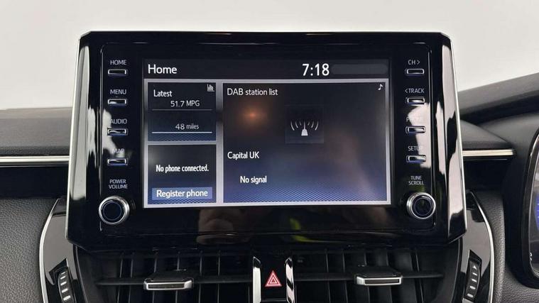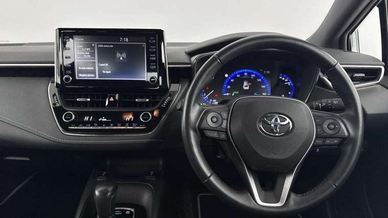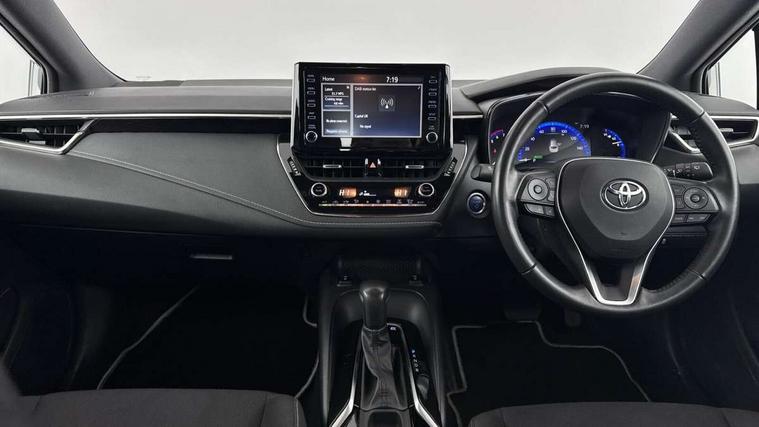 7" Multi information display screen, Bluetooth telephone connectivity, Connected car functionality upgrade, tracker, remote status and e-care, Dynamic radar cruise control (with RSA) including switch on steering wheel, E-call, Electrically assisted power steering, EV drive indicator, Lane Departure Alert (LDA) switch on steering wheel, Memory on adjustable speed limiter, Push button start, Reversing camera, Smartphone integration with Apple CarPlay and Android auto, Gasoline particulate filter, Vehicle Stability Control (VSC), 6 speakers, 8" Touchscreen with MM19 Multimedia system and voice recognition, AM/FM radio, DAB Digital radio, USB and Aux in connectors + 12V front outlet, USB charging port in centre storage box, Aluminium roof rails, Anti-jam protection on power windows, Auto up and down function on all power windows, Automatic headlights with high beam assist, Black metallic surround on lower front grille, Black toyota logo in front, Body colour rear spoiler, Body coloured bumpers, Body coloured door mirrors, Body coloured outside door handles, Follow me home headlights, LED daytime running lights, LED front fog lights, LED Headlights, LED High mounted stop light, Manual day/night rear view mirror, Noise reduction layer on front windows, Power adjustable heated door mirrors, Power front windows, Power rear windows, Rain sensor, Rear side wing doors, Rear window defogger, Rear window wiper, Shark fin antenna, Time adjustment on intermittent wiper, Turning signal integrated indicators in door mirrors, Unique lower skirt, Unique side rocker with black insert, UV-filter on driver and passenger windows, 12v power outlet - luggage side, 3 rear headrests, 3 seat bench in 2nd row, 3 spoke leather steering wheel + gear knob, 60/40 split folding rear seat, Adjustable speed limiter switch on steering wheel, Audio, multimedia and telephone switches on steering wheel, Boot light, Boot underfloor storage, Clean air filter, Driver and front passenger personal light, Driver and passenger assist grip, Driver and passenger sun visor with mirror and light, Dual sided deck board in boot, Dual zone automatic air conditioning with ECO mode switch, Fabric armrests, Front and rear cup and bottle holders, Front and rear door pockets, Front head restraints, Front passenger seat, Heated driver and front passenger seats, Illuminated entry system in room lamp, ISOFIX seat fixing (2 fixings on rear outer seats), Leather gear shift with satin chrome on gear shift console, Manual height adjustable for driver and front passenger seat, Passenger seat back pocket, Pollen filter, Power adjustable lumbar support on driver seat, Power window switches with satin chrome inserts, Quilted fabric upholstery with grey stitches seats, Rear armrest with 2 cupholders, Rear passenger air vents, Rear passenger coat hooks (2), Rear passenger personal lights, Retractable tonneau cover with luggage partition net, Satin chrome inside door handles, Shopping bag hooks in luggage compartment, Side storage in boot, Sliding armrest on centre console box, Slow opening glovebox with lights, Tilt/telescopic steering column, Tonneau cover with under floor storage, Voice recognition switch on steering wheel, Whiplash Injury Lessening (WIL) feature (active headrest) for seats, Toyota safety sense 2 pack - Corolla, 3x3 point rear seatbelts, Adjustable driver and front passenger seat belt extender to top anchor point, Anti lock braking system + Electronic brake force distribution, Brake assist function, Child locks on rear doors, Downhill Assist Control (DAC), Electronic parking brake, Emergency brake light signal (EBS), Front passenger airbag on/off switch, Front seatbelt reminder, HAC - Hill start assist control, Rear seat belt reminder, Seatbelt pretensioners and force limiters, Supplemental restraint system (SRS) 7 airbags - dual driver, dual side curtain, side impact and driver knee airbags, Traction control, Tyre pressure warning system, Acoustic vehicle alert system (AVAS), Alarm with motion sensor and immobilizer, Remote central locking + deadlocks, Satin chrome dash trim, Soft touch texture on upper dashboard, Stitching on lower dashboard, Space saver spare wheel, Unique wheel finish with red wheel cap,