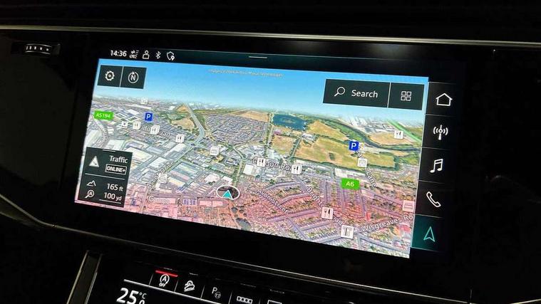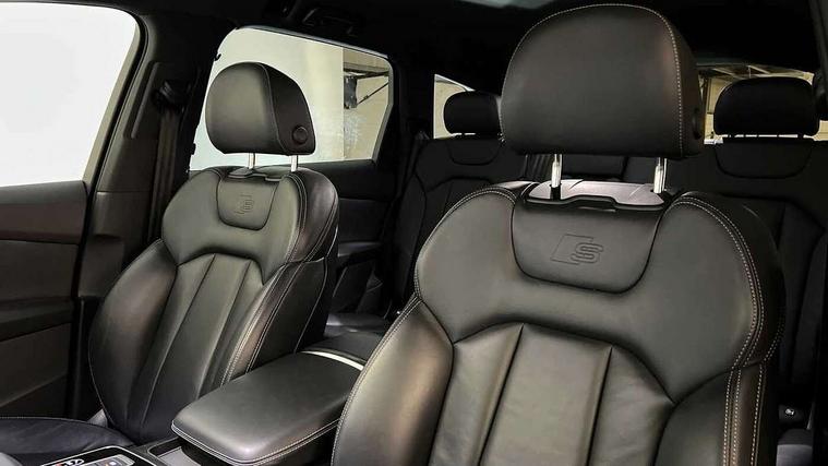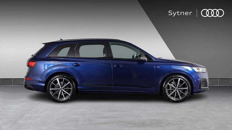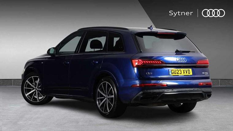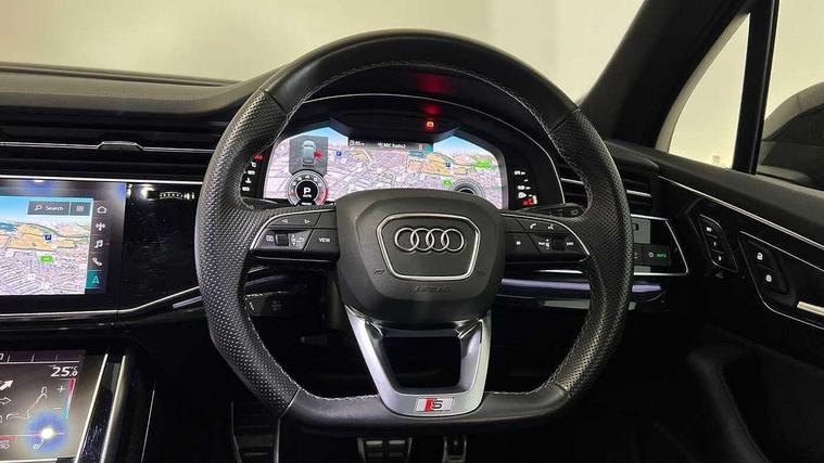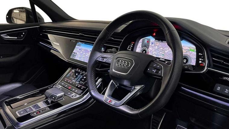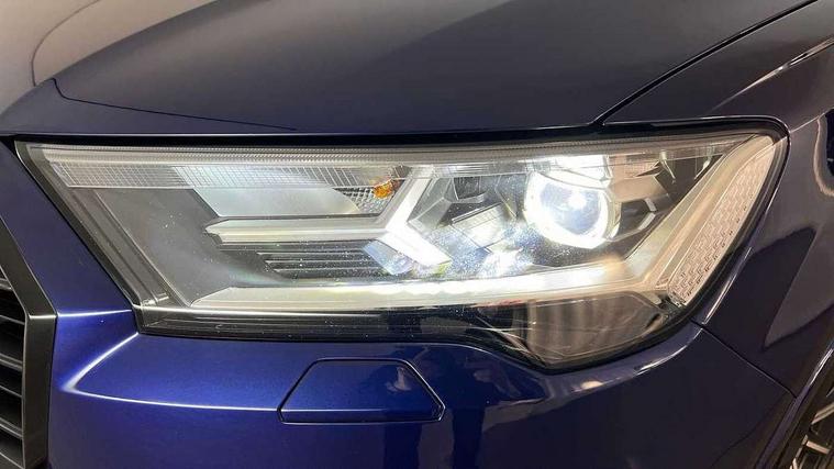 Audi connect safety and service (e-call), Audi connect with Amazon Alexa Integration, Audi drive select (Auto, Comfort, Dynamic, Efficiency, Individual, Off-road and All road), Audi smartphone interface includes wireless Apple carplay/Android Auto, Audi virtual cockpit - 12.3" high-resolution LCD display with fully customisable instrument cluster, Bluetooth interface, Camera based traffic sign recognition, Electromechanical steering, MMI navigation plus with MMI touch screens includes 10.1" and 8.6" screens with haptic feedback, Natural voice recognition, Parking system plus with 360 degree display (front, rear and side sensors) - acoustic and visual park assist system, Power operated tailgate, Rear view camera, Start/stop system, 48V Mild hybrid technology, 85 litre fuel tank, Adaptive air sports suspension, Quattro all wheel drive with self locking centre differential, Audi music interface - front 2 USB-C ports with charger and data functions, Audi sound system with 6 channel amplifier, 180 watt amplifying capacity and 10 loudspeakers including subwoofer, DAB digital radio module, 3rd brake light, Auto dimming frameless rear view mirror, Black roof rails, Bumpers in contrast paint scandium grey finish includes door trim and wheel arch trim strips, inlays in door strip contain quattro embossing, Dark tinted Matrix LED headlights with dynamic front and rear indicators, Electrically adj heated/folding + automatically dimming exterior mirrors with memory + automatic kerb side function for passenger side exterior mirror, Heat insulating glass in windshield, Integrated LED indications in door mirrors, LED daytime running lights, LED rear tail lights, Privacy glass - dark tinted rear and rear side windows from B-pillar backwards, Rear side wing doors, Rear wiper, 2 seat bench in 3rd row, 3 seat bench in 2nd row, 4 zone deluxe automatic climate control, 7 seat layout with ISOFIX points for the front passenger seat and rear passenger seat, Black cloth headlining, Comfort front centre armrest, Electric adjustable front seat with 4 way lumbar support, driver memory functionality, Folding rear seats, Front head restraints, Front/rear floor mats, Heated front seats, Illuminated door sill trims with S logo, LED interior ambient lighting, Luggage compartment cover, Luggage compartment sill protection in stainless steel, Rear head restraints, Single front passenger seat, Stainless steel pedals, Sunvisors with illuminated vanity mirrors, Anthracite black styling pack - Q7/SQ7, 3 point seatbelts on all rear seats, Audi pre sense front, Child locks on rear doors, Driver and front passenger, front side and curtain airbags, Electromechanical parking brake, Electronic Stabilisation Control (ESC) including ABS, ASR and EDL, Extended pedestrian protection measures, Hill hold assist, Seatbelt monitoring, Tyre pressure loss indicator, Warning triangle and first aid kit, Anti theft alarm, Anti-theft wheel bolts and wheel loosening detection, Keyless Go, Remote central locking, Polished oak trim with grey finish inlay, Tool kit, Tyre repair kit,