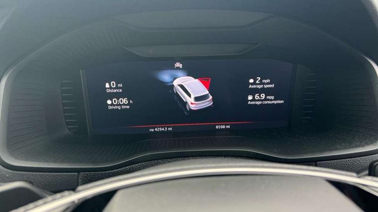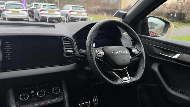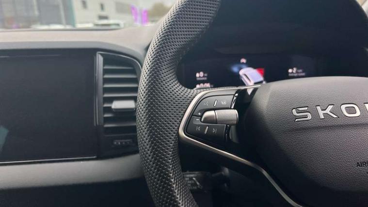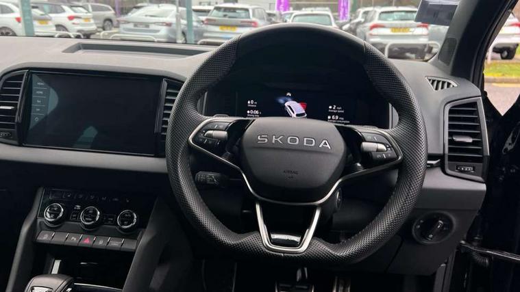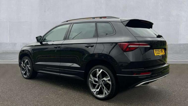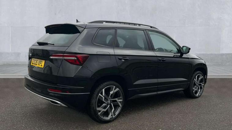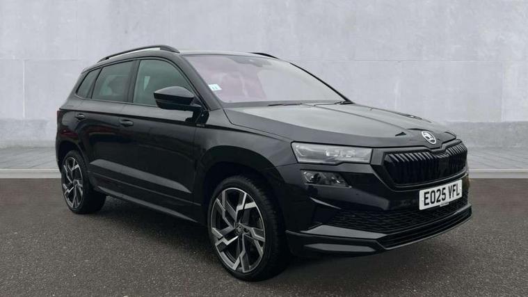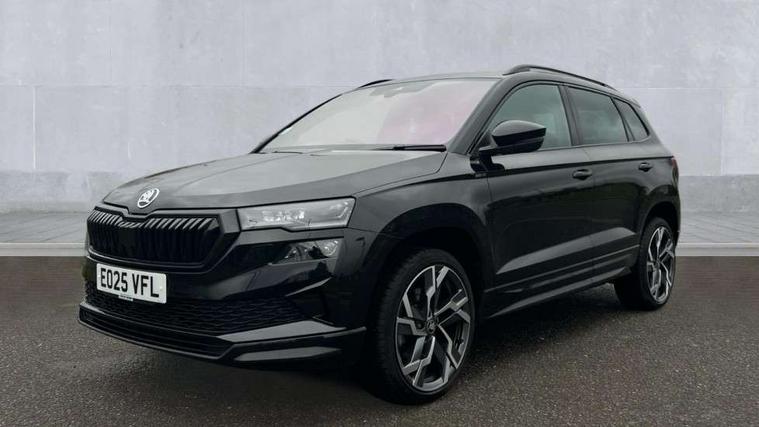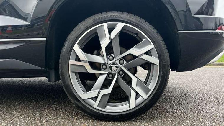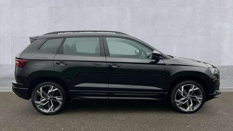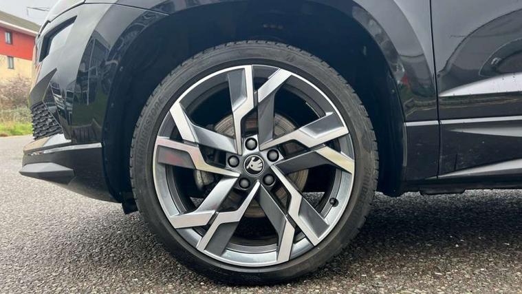 Advanced driver attention and drowsiness monitor, Emergency services call system, Outside temperature gauge, Sensor for driver assistance systems, Service interval indicator, SmartLink wireless for Apple and wired for Android, Start/stop system with regenerative braking, Traffic sign recognition, USB C Port x 2 in front centre console, Virtual Cockpit - 10.25" digital display, Virtual pedal with electrically operated boot door, Wireless smartphone charging, DAB radio with Bluetooth, USB connection, Acoustic glass, Aero front windscreen wipers with intermittent function, Auto dimming rear view mirror with light and rain sensors, Black door mirrors, Black electric window control buttons, Black radiator grille, Black roof rails, Body colour door handles, Electric front and rear windows with child proof lock, Extended rear roof spoiler, Front door steps with SportLine logo, Heated rear windscreen, LED daytime running lights, LED rear lights with high functionality welcome effect and dynamic indicators, Light assistant (coming/leaving home/tunnel light), Panoramic sliding sunroof, Plastic scuff plates in door apertures, Privacy glass, Protective door side sills in body colour, Rear diffuser, Rear side wing doors, Rear window wiper with washer system and intermittent control, Safety reflectors on front doors, Skoda lettering on tailgate in black, Sportline badge on front fender, Sports front and rear bumpers, Third brake light, Unique dark chrome design logo on alloy wheels, 1.5 litre bottle holders in driver and front passenger door panels, 12V socket in boot, 12v socket in front centre armrest with storage compartment and rear air vents, 2 x Tablet holder, 3 rear height adjustable headrests, 3 seat bench in 2nd row, 3 spoke sports leather heated multifunction steering wheel with DSG paddles, 4 foldable roof handles with rear coat hooks, Black floor carpet, Cargo elements in boot, Chrome inner door handles, Foldable hooks in the boot, Front head restraints, Height adjustable front three point seats belts with tensioners, Height/reach adjust steering wheel, Ice scraper, Illuminated glovebox, Illuminated luggage compartment, Isofix child seat preparation for front passenger seat, Isofix child seat preparation outer rear, Manual lumbar support for front seats, Pen holder, Pollen filter, Rear backrest release from boot, Rear boot cover, Rear package tray, Rear reading lights, Rear seats fixed folding and divided 60:40, Rubbish bin door, Safety vest holder, Single front passenger seat, Skoda lettering on steering wheel, Sportline decorative inserts, Storage box in upper central dashboard closed, Sunvisors with illuminated vanity mirrors, Textile floor mats, Ticket holder, Titan black interior ceiling, Umbrella under passenger seat, Under passenger seat storage compartment, Columbus pack - Karoq, LED Interior lighting pack with Skoda welcome logo - Karoq, Light Pack - Karoq, Non Smokers pack, Performance pack - Karoq, Winter plus pack with heated front and rear seats - Karoq, Automatic door unlocking in case of crash, Automatic fuel cut off in case of crash, Driver airbag, Electronic parking brake with auto hold function, Emergency rear braking signal, ESC (incl. ABS+MSR+ASR+EDS+HBA+DSR+RBS+MKB), Front side airbags, Head airbags, Hill hold control, Knee airbags, Passenger airbag with switch-off function, Pedestrian monitor, Seatbelt reminder signalisation and pretensioner for all seats, Three point seatbelts rear, Two tone horn, Tyre pressure monitor, Alarm with interior monitoring, back up horn and tilt sensor with safe function, Electronic engine immobiliser, Keyless entry and start/stop, Remote central locking with 2 remote folding keys, Black air vent surround, Black centre console, carbon door decor, Satin black dashboard, Satin black door trim, 19" Sagittarius anthracite alloy wheels, Anti-theft wheel bolts protection, Breakdown and tool kit,