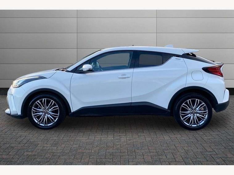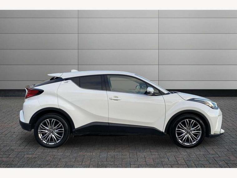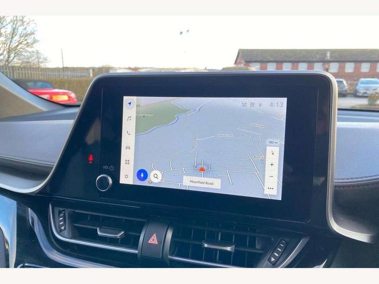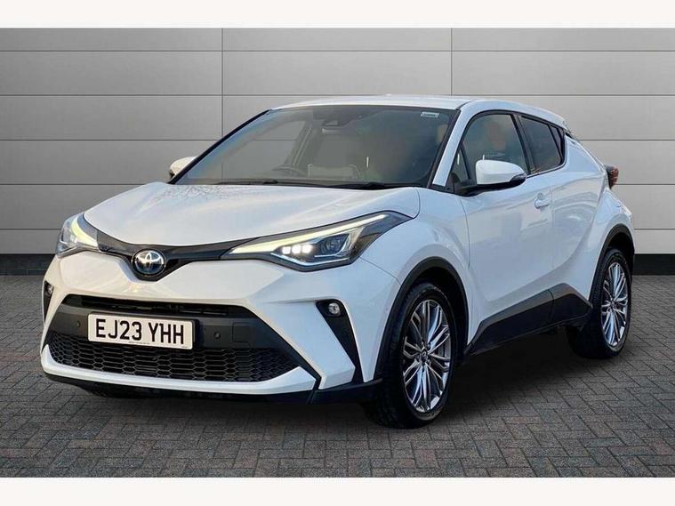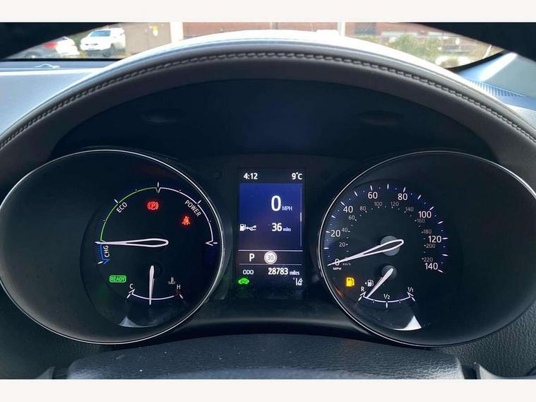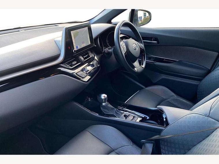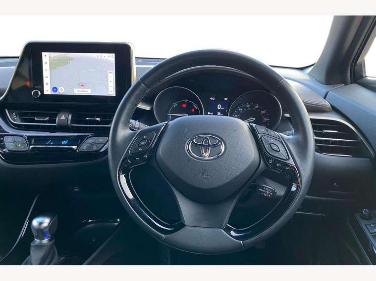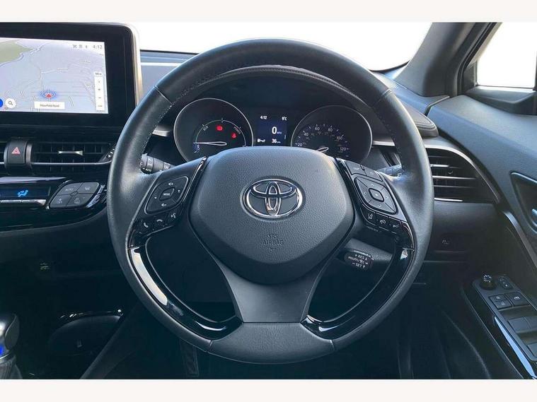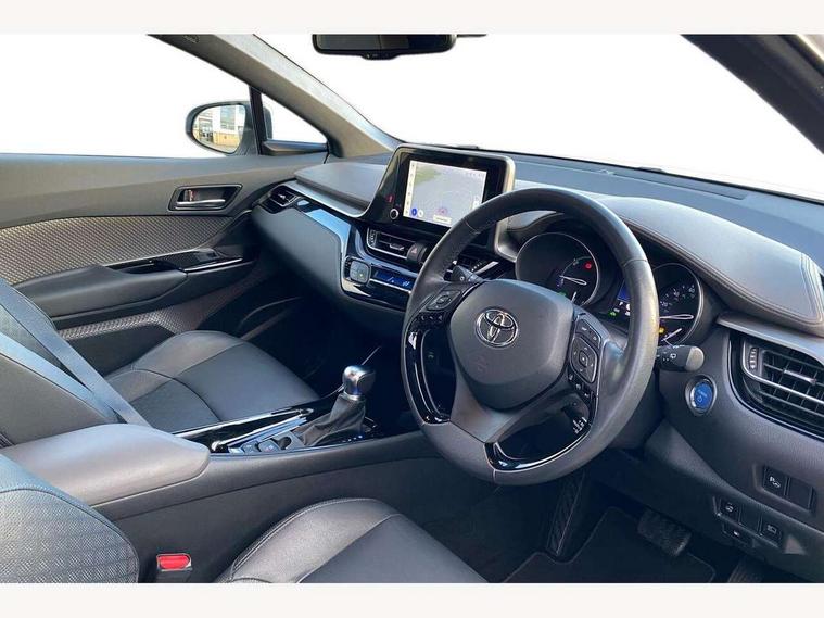 4.2" coloured TFT screen for multi-information display, Adaptive cruise control, Apple car play and Android auto, Bluetooth connectivity, E-call, Electric power steering, Hybrid system indicator, Lane departure alert with steering control, Lane trace assist, Push button tailgate release, Remote boot door release in cabin, Remote boot door release in key, Reversing camera, Road sign assist - RSA, Simple Intelligent parking assist, Smart voice assist, Touch 2 Go navigation system, Trip computer, Voice recognition, Wireless smartphone integration, Vehicle Stability Control (VSC), 6 speakers, AM/FM radio, DAB Radio (Digital Audio Broadcasting), Toyota touch 2 multimedia system with 8" display, USB connector, Wi-fi connectivity, Adaptive front light system, Adaptive LED Headlights, Anti-jam protection on power windows, Auto high beam, Auto up and down function on all power windows, Automatic headlight levelling, Automatic headlights, Automatic headlights cut-off, Black and body coloured rear bumper, Black lower front grille, Black upper front grille, Body colour door handles, Body colour door mirrors, Body colour front spoiler lip, Body coloured front bumper, Boot door release with push button, Electric heated door mirrors, Follow me home headlights, Front and rear power windows, Headlight cut off reminder, Honeycomb lower front grille, LED daytime running lights, LED fog lights, LED front light guide, LED High mounted stop light, LED rear brake lights, LED rear combination lights, Noise reduction layer on front windows and windscreen, Power adjustable door mirrors, Privacy glass, Rain sensor, Rear sequential indicators, Rear side wing doors, Rear spoiler, Rear tailgate, Rear window defogger, Rear window wiper, Shark fin antenna, UV-filter on driver and passenger windows, UV-filter on rear windows, Variable front intermittent wipers, 12v power outlet - front, 3 rear headrests, 3 seat bench in 2nd row, 3 spoke leather steering wheel, 60/40 split folding 2nd row rear seats, Adjustable rear headrests, Adjustable speed limiter switch on steering wheel, Assist grips front and centre pillar, Audio and telephone switches on steering wheel, Black front door assist grips, Blue ambient lighting on front cup holders, Blue ambient lighting on front doors, Boot light, Chrome interior door handles, Driver and front passenger personal light, Driver and front passenger Whiplash Injury Lessening seats, Driver and passenger seatback pockets, Dual zone automatic air conditioning, Floor mats, Front cupholders, Front head restraints, Front sports seats, Glovebox with internal light, Hard tonneau cover, Heated driver and front passenger seats, Heated steering wheel, Hooks for luggage holding net, Humidifying Nanoe air purifier, Illuminated entry system, Isofix attachments on outer rear seats, Leather gearshift, Light on driver sun visor, Light on passenger sun visor, Manual telescopic steering wheel, Manual tilt steering wheel, Microphone on front personal light, Mirror on driver sun visor, Mirror on passenger sun visor, Multimedia switches on steering wheel, Pollen filter, Power adjustable lumbar support on driver seat, Power tilting cushion on driver seat, Shopping bag hooks, Single front passenger seat, Slow opening on lower glovebox, Voice recognition switch on steering wheel, Leather pack - C-HR, Tech with parking sensor pack - C-HR, 16 Disk front wheel brake, 3x3 point rear seatbelts, ABS+EBD+Brake assist, Electronic parking brake, Front and rear seatbelt reminder, Front passenger airbag on/off switch, Hill start assist control (HAC), Pre collision system with pedestrian detection, Pre-tensioners and force limiters, Rear door child safety locks, SRS Airbags - Driver + Front passenger, front side, front and rear curtain and driver's knee airbags, Toyota safety sense, Tyre pressure monitoring system, Tyre pressure warning system, Acoustic vehicle alert system (AVAS), Glass-breaking alarm sensors, Immobiliser, Intrusion alarm, Intrusion sensor, Motion sensor alarm, Power door locks, Power passenger window lock, Remote central locking, Black lower dashboard, Dark brown upper dashboard, Piano black console, Silver deco line on upper dashboard, Tyre repair kit,
