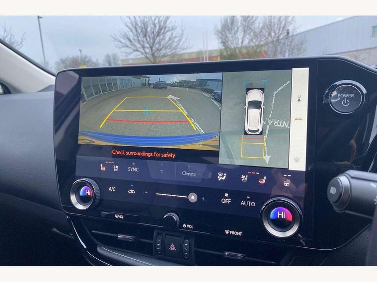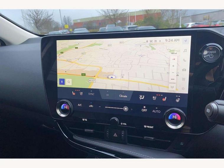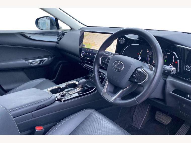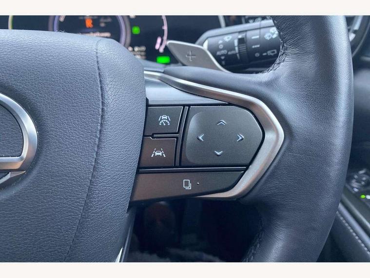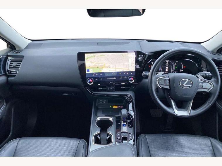 4 driving modes EV/Eco/Normal/Sport, 7" display in instrument binnacle, Blind spot monitoring with rear cross traffic alert, Bluetooth telephone connectivity, eCall emergency system, Electric speed sensitive power steering, Intelligent parking sensors - 4 front and 4 rear, Lane change flasher function, Lexus link connect - Cloud based navigation, cloud based voice assistant, always online and 9.8" VGA touchscreen, Push button starter, Reversing camera with back guidelines, Service interval indicator, Tailgate, Wireless Apple CarPlay and wired Android Auto, Wireless Smartphone charger, 6.6 kW onboard charger, All Wheel Drive (AWD), Hybrid automatic transmission, Vehicle Dynamics Integrated Management (VDIM), Vehicle Stability Control (VSC), 10 speakers, 4 USB ports - 2 front, one USB C, 2 rear USB C, DAB Digital radio, Auto dimming interior rear view mirror, Automatic headlights, Bi LED headlights, Double hidden exhaust pipes, Front and rear one touch power windows, with anti-jam protection, Heated, auto-folding, auto-dimming outside mirrors with reverse tilt function and turn indicators, Illuminated door handles with puddle light, LED brake lights and rear lights with emergency brake signal, LED cornering lights, LED daytime running lights, LED front fog lights, LED Indicators, Power back door with kick sensor, Privacy glass, rear doors and tailgate, Rain sensor windscreen wipers, Rear side wing doors, Rear wiper, Roof rails, 12V accessory port centre console and luggage compartment, 2 cupholders in front centre console, 2 way electrical lumbar adjustment for driver, 2 x fixed shopping bag hooks in boot, 2 x sun visors with vanity mirror and lamp, 3 seat bench in 2nd row, 4 x tie down hooks in the boot, 60/40 split folding rear seat, 8 way driver/passenger electrically adjustable front seats, Adjustable rear seat backrest, Card holder installed in driver and passengers sun visors, Centre armrest with storage box, Dual climate control air conditioning system, Front and rear head restraints, Front and rear textile carpet mats, Front passenger seat, Heated front seats, Heated steering wheel, Leather gear lever, LED interior illumination, Power adjustable leather steering wheel with paddle shifts, Premium Tahara leather upholstery, Rear centre armrest with 2 cupholders, Whiplash Injury Lessening (WIL) feature (active headrest) for seats, 2 x Isofix child rear seat restraints, 3 point ELR front seatbelts with pretensioners, 3x3 point rear seat belts, ABS, Adjustable seat belt anchor points, Driver and front passenger 2 stage airbag, Driver/front passenger side airbags, Drivers knee airbag, E-Latch with safe exit assist, EBD + Brake Assist, ECB (Electronically Controlled Brake System), Electronic parking brake, Front and rear curtain shield airbags, Front center airbag, Front passenger seat cushion airbag, Hill assist control, Lexus safety system - dynamic radar cruise control, pre collision system day and night, lane tracing assist, road sign, automatic high beam, OTA, Manual rear child locks, Passenger airbag cut-off device, Traction control, Tyre pressure warning, Anti-theft system with alarm, intrusion sensor, glass breakage sensor, tilt sensor and engine immobiliser, Locking wheel nuts, Smart keyless entry, Speed sensitive auto door locking, Two motion door lock with double lock, Ultra Wide Band (UWB) Anti-theft system, VIN Window etching, 3D prism black Inlay, Organic inlay, Tyre repair kit,