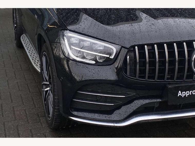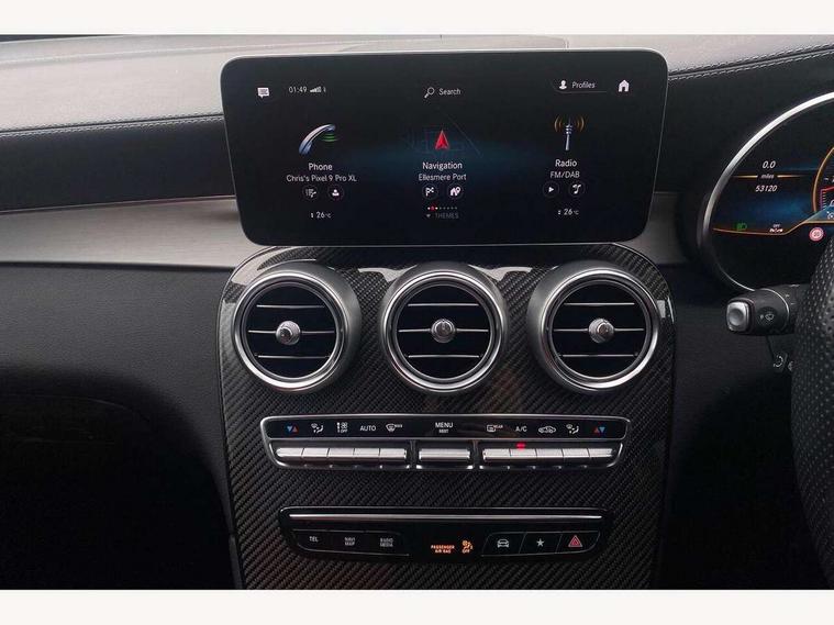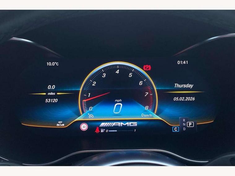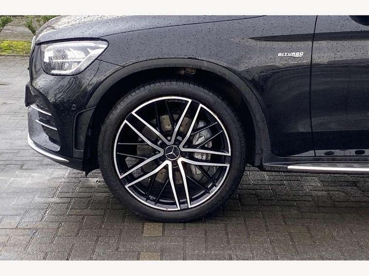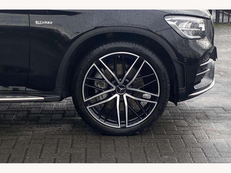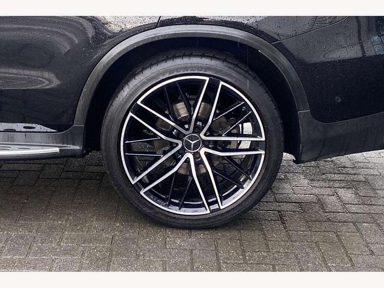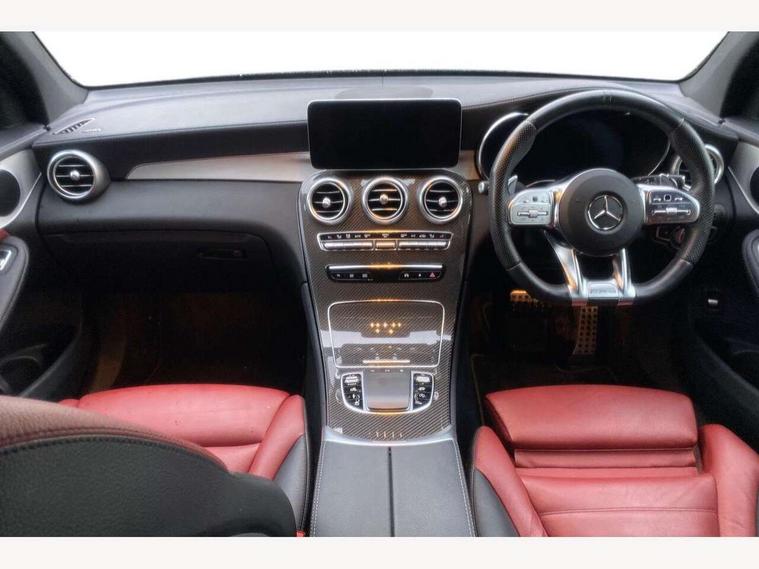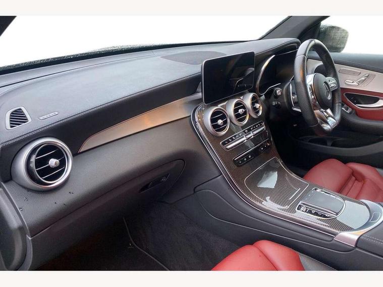 360 degree view camera, Active parking assist with parktronic system, Attention assist, Bluetooth interface for hands free telephone, Collision prevention assist plus, Cruise control with speedtronic variable speed limiter, Direct steer speed sensitive steering, DYNAMIC SELECT with a choice of driving modes (ECO, Comfort, Sport, Sport+ and Individual), Easy pack automatic powered tailgate, eCall emergency call system, ECO start/stop function, Hard disk navigation, Hey Mercedes Voice activation, Instrument cluster with12.3-inch digital instrument cluster display. High resolution instrument cluster screen with choice of three display styles, MBUX Interior assistant, Mercedes connect me with remote online services, Multi function trip computer, Outside temperature display, rear seatbelt status indicator, Remote boot release, Service indicator (ASSYST), Smartphone integration with Apple CarPlay and Android auto, Traffic sign assist, 66 litre fuel tank, AMG electronic rear axle limited slip differential lock, AMG performance 4MATIC+, AMG ride control air suspension for front and rear axles with continuously adjustable damping, AMG SPEEDSHIFT TCT 9G 9-speed automatic transmission with steering column gear selector, DIRECT SELECT steering wheel gearshift paddles, Petrol Particulate Filter (PPF), Advanced sound system, MBUX multimedia system with DAB digital radio and touchpad, Media display 10.25-inch touchscreen display, Pre installation for Mercedes Benz Link, USB ports x 2 in centre console, Adaptive brake lights, Adaptive high beam assist, AMG bodystyling front apron in jet wing design with silver chrome front splitter, AMG bodystyling with 2 black louvres in outer air intakes, AMG bodystyling with rear apron and diffuser fins, AMG bodystyling with side sill panels, AMG Performance exhaust, AMG radiator grille with black vertical louvres and trim strip in high gloss chrome, AMG spoiler lip, Body colour door mirrors, Body coloured bumpers, Electric sliding glass sunroof, Electric windows one touch open/close, Electrically adjustable and heated door mirrors, Front, side and rear exterior chrome trim, Headlamp assist automatic headlamp activation, High level LED brake light, LED high performance headlamps with integrated LED daytime running lights, LED tail lamp, Motor way mode function and locator lighting, Privacy glass with dark glass from B pillar backwards, Rain sensor windscreen wipers, Range adjustable headlights, Rear side wing doors, Rear wiper, Roof spoiler, Running boards, Tinted glass all round with single layer safety glass, Tinted rear windows, Two chrome plated tailpipe trim elements, Variable front intermittent wipers, 2 way rear head restraints, 3 seat bench in 2nd row, 40:20:40 split folding rear seats, Ambient lighting, AMG floor mats with edging and embroidered AMG lettering, AMG illuminated door sills, AMG sports seats, Artico man-made leather upper dashboard with contrast topstitching, Automatic child seat recognition sensor, Black roof lining, Dividing net - rear, Double cup holder in centre console, Easy-pack removable load compartment cover, Electric height/reach adjustable steering column, Flat bottomed multifunction sports steering wheel in black nappa leather, embossed in central grip, with silver chrome steering with red topstitching, Front armrest with storage box, Front door sills with Mercedes Benz lettering, Front head restraints, Front passenger seat, Heated front seats, Heated steering wheel, Illuminated and lockable glove compartment, Leather upholstery, Rear top tether child seat ISOFIX attachment, Sports pedals with stainless steel surfaces and rubber studs, Steering wheel with touch control buttons, THERMOTRONIC 3 zone automatic climate control, Interior lighting pack - GLC, Memory pack - GLC, Mirror pack - GLC, Storage pack - GLC, 3 rear 3 point seatbelts, Active bonnet, Adaptive brake system with HOLD function and brake drying in the wet, ASR, Brake calipers with Mercedes-Benz lettering + perforated brake discs, Child proof door locks, Dual-stage airbags - driver and front passenger, driver knee bag and window bags for driver, front passenger and rear passengers, Electronic parking brake, Electronic stability programme (ESP) with curve dynamic assist and cross wind assist, Front and rear seatbelt reminder, Front passenger seat occupancy sensor, Hill hold function, MANUFAKTUR seat belts in red, Tyre pressure monitoring system, Warning triangle and first aid kit, Alarm system/interior protection/immobiliser, Automatic door locking, Keyless Go entry and starting function, Remote central locking, AMG carbon-fibre with light longitudinal grain aluminium trim, 21" AMG 5 twin spoke design alloy wheels painted in black with high sheen finish, Summer tyres, Tirefit tyre sealant kit,