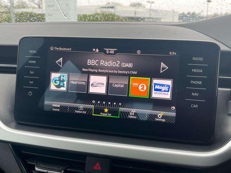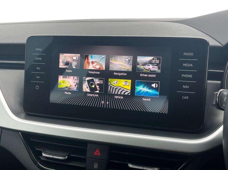 Amundsen satellite navigation with 9.2" glass colour touchscreen with web radio, Bluetooth system, eCall emergency system, PAS, Rain and light assist with auto dimming rear view mirror, Speed limiter, Tailgate, Traffic sign recognition, Voice control system, 2 USB - C ports, 8 loudspeakers, DAB Digital radio, 3rd brake light, Automatic headlamp activation with Coming home and Leaving home feature, Body colour door mirrors and handles, Chrome grille surround, Chrome window surround, Dimming rear view mirror with black frame, Electrically adjustable and heated door mirrors, Front and rear electric windows, LED rear lights, Rear side wing doors, Rear wiper, Tinted windows, 12V Accessory socket in centre console, 3 seat bench in 2nd row, Chrome inner door handles, Cloth upholstery, Front head restraints, Glasses storage in roof liner, Height adjustable drivers seat, Height adjustable passenger seat, Instrument cluster with chrome painted decor ring, ISOFIX for rear passenger seat, Leather gearknob and handbrake lever, Manual lumbar support for front seats, Reading lights for driver and front passenger, Single front passenger seat, Sun visor with make up mirror for front passenger, Third rear headrest, Umbrella, 3x3 point rear seatbelts, Curtain airbags, Emergency call and proactive services, Front head and side airbags, Hill hold control, Manual rear child locks, One tone horn, Passenger airbag switch off function, Seat belt reminder for all seats, Alarm, Anti-theft wheel bolts, Remote central locking with 2 remote folding keys, SAFE function for remote central locking, Silver haptic decorative insert with glossy black hot stamping, Temporary space saver wheel,