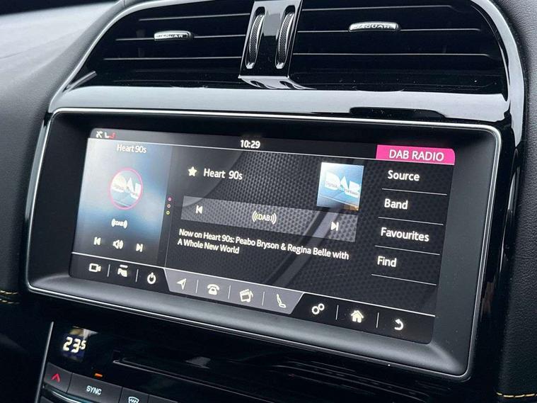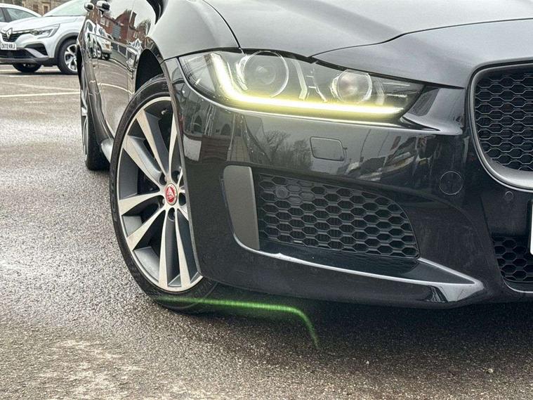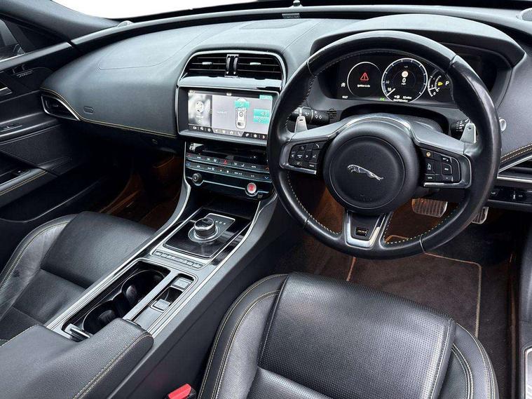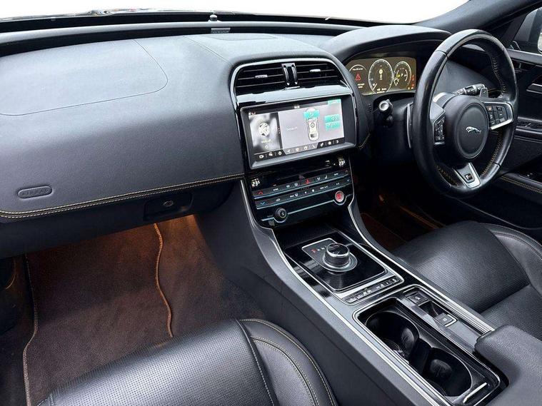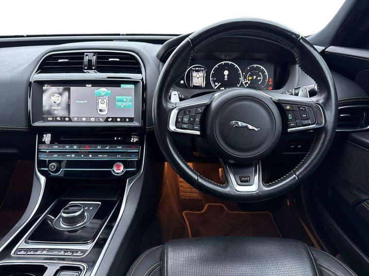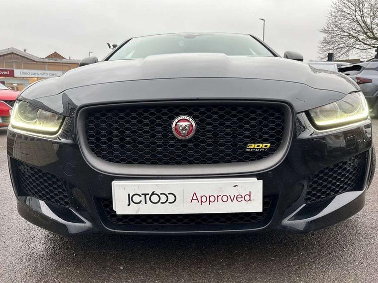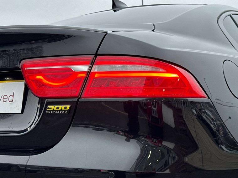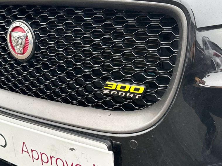 Analogue dials with 7" central TFT display, Bluetooth telephone connectivity, EPAS, Front parking aid, InControl remote premium, Lane departure warning system, Outside temperature gauge, Pro services and wifi hotspot, Push button starter, Rear view camera, Satin chrome surround on touch screen, Service interval indicator, Traffic sign recognition with adaptive speed limiter, Trip computer, Voice control system, Bluetooth audio streaming, DAB digital radio and AM/FM radio, Dynamic volume control, InControl apps, InControl protect, USB/aux input socket, 300 Sport badge, Approach lamps, Auto dimming interior rear view mirror, Automatic headlamps, Body colour door mirrors, Body coloured rear bumper with dark satin grey valance, Dark satin grey bumper inserts, Dark satin grey rear spoiler, Dark satin grey side sills, Dark satin grey side vents, Dark satin grey side window surround, Electric front/rear windows with one touch/auto up/down, Gloss black grille with dark satin grey surround, Green tinted heat insulating glass, Headlight power wash, Heated rear windscreen, LED tail lights, Privacy glass, Rain sensing windscreen wipers, Rear boot lid spoiler, Trailer stability assist, Variable front intermittent wipers, 12V socket in front and rear, 3 rear seat head restraints, 300 Sport branded soft grain leather steering wheel, 300 Sport embossing to front headrests, 4 way electric lumbar support for driver and front passenger, 40:20:40 split folding rear seat, Bright metal foot pedals, Chrome seat switches, Chrome tread plates, Dual zone automatic climate control, Front and rear reading lights, Front centre armrest with storage compartment, Front map lights, Illuminated glovebox, Illuminated trunk, Isofix child seat mountings in rear, JaguarDrive selector, Lockable glovebox, Luggage tie-down hooks, Machined gearshift paddles, Multifunction sports steering wheel, Overhead console with sunglasses holder, Perforated grained leather upholstery with yellow contrast stitching, Rear air vents, Rear armrest with twin cupholders, Shopping hook in boot, Sliding cover on front cupholder, Sport carpet mats with yellow stitching, Sports seats, Storage compartment in front doors, Storage compartment in rear doors, Sunvisors with illuminated vanity mirrors, 300 Sport black brake callipers, 350mm front brakes, ABS, All surface progress control (ASPC), Anti-whiplash front headrests, Autonomous emergency braking, Brake pad warning light, Driver/Front Passenger airbags, DSC - Dynamic Stability Control, Electronic parking brake, Emergency brake assist, Front and rear seatbelt reminder, Front passenger seat occupancy sensor, Front side airbags, Hill start assist, Pedestrian contact sensing and deployable bonnet, Power child locks, Side curtain airbags, Three 3 point rear seatbelts, Torque vectoring brake, Traction control, Tyre pressure monitoring system, Driver's central locking switch, Immobiliser, Locking wheel nuts, Perimeter alarm, Remote central locking, Smart key start system, Dark satin grey side cheeks, Luxtec wrapped instrument panel topper with yellow contrast stitching,