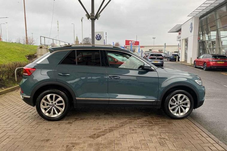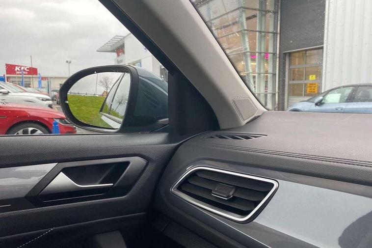 10.25" Digital cockpit pro, Bluetooth mobile phone interface, Driver alert system with fatigue detection, Driver tips and journey analysis, Emergency call service, Lane keeping system Lane Assist, Modified key software - reduce switch off time for key status change to Long no motion, Online services, Park assist including front and rear parking sensors, Service interval indicator, Tailgate/trunk lid release from outside, Think blue trainer driver tips and journey analysis, Warning sound and light for front seatbelts unfastened, Wireless app connect, Battery regeneration during braking, Start/stop function with battery regeneration, Diversity antenna for FM reception, Front and rear 6 speakers, Music playback - MP3, WMA and AAC files, Premium USB cable in choice of either Apple or Android smartphone compatibility, SD card slot, Simultaneous pairing of 2 compatible mobile devices, Title and cover art display, We Connect and We Connect Plus functionality, 3rd brake light, Auto dimming interior rear view mirror, Automatic hazard lights activation under emergency braking, Automatic headlight control with LED separate daytime running lights with coming/leaving home function, Body colour sports bumpers with silver metallic underbody fascia, Dynamic headlight range control with self adjusting whilst driving, Extended roof spoiler, Exterior mirrors aspherical on driver side, convex on front passenger side, External USB type C socket and charging sockets, Front windscreen wiper with intermittent wipe and 4 position delay, Heated rear window, LED Plus headlamps, LED rear combination lamps, LED rear number plate lights, LED tail lamp rear comination lamps, Light mode for poor weather, rain, fog or snow, Power windows with comfort operation and circuit breaker, Rain sensor, Rear exhaust tailpipe, Rear fog light on one side and reversing lights on both sides, Rear side wing doors, Rear wash/wipe with intermittent wipe setting, Remote electrically foldable door mirrors, puddle lights and reverse activated passenger's door mirror, 12V power socket in centre console, 3 rear head restraints, 3 seat bench in 2nd row, 4 load lashing points in luggage compartment, Air care climatronic air conditoning system with active combination filter and 2-zone temperature control, Chrome plated radiator grille inserts, air vent surrounds and light switch surrounds, Door and side trim panel with leatherette insert, Drawer under drivers seat, Front + rear carpet mats, Front centre armrest, Front comfort sports seats, Front cupholders x 2, Front footwell illumination, Instrument lighting, white adjustable panel illumination, Interior ambient lighting and surround lighting, Interior light delay, Isofix child seat preparation, Leather gearshift handle, LED interior light with switch off delay/dimmer and 2 front/rear LED reading lights, Load-through provision with cup holder when folded down ('Unsplit rear seat bench, split folding backrest, with centre armrest), Luggage compartment lighting, Non-folding front passenger seat backrest, Single front passenger seat, Storage compartment in left and right luggage area, Storage compartment in rear doors, Storage compartments in driver and front passenger doors, Sunvisors with illuminated vanity mirrors, Variable boot floor, height adjustable and removable, Driver assistance pack without proactive passenger protection - T-Roc, 3 point height adj front seatbelts + pretensioners, 3 point seatbelts in outer rear with ECE label, ABS, Child locks on rear doors, Driver and front passenger airbag with front passenger airbag deactivation, Driver and front passenger safety-optimised head restraints, Drivers seatbelt reminder, Electronic parking brake, Electronic Stability Control (ESC) inc EDL (Electronic Differential Lock) and ASR (Traction Control), Front and rear passengers curtain airbag system including front side airbags, Front assist with city emergency braking and pedestrian monitoring, Front seat side impact airbags, Predictive pedestrian protection, Rear disc brakes, Single tone horn, Tyre pressure loss indicator, Volkswagen roadside assistance, Alarm with interior protection, Anti-theft alarm system with interior monitoring, backup horn, and towing protection, Remote central locking with SAFELOCK, radio remote control with 2 remote control folding keys, Trims for alloy wheels,
