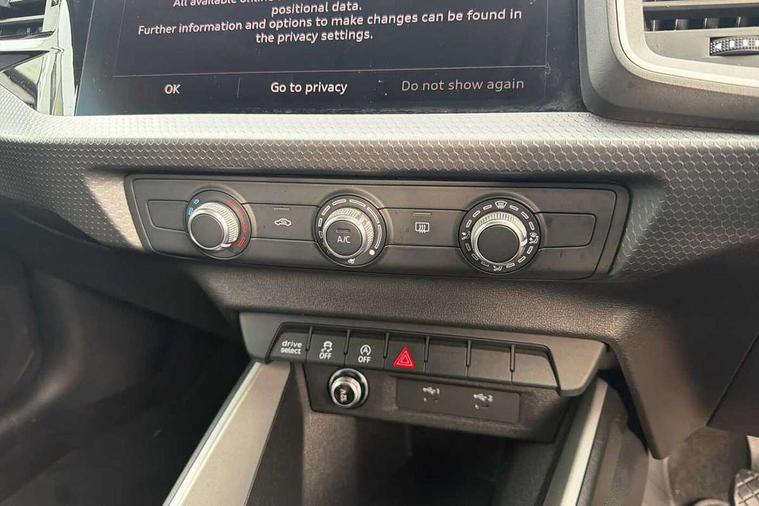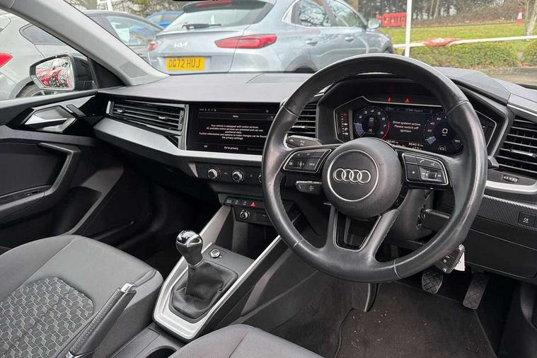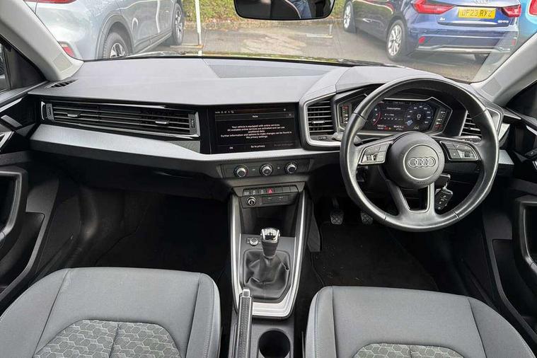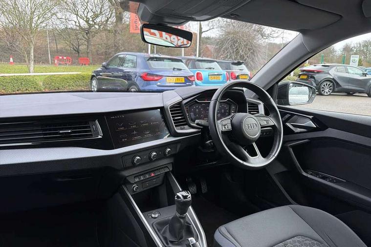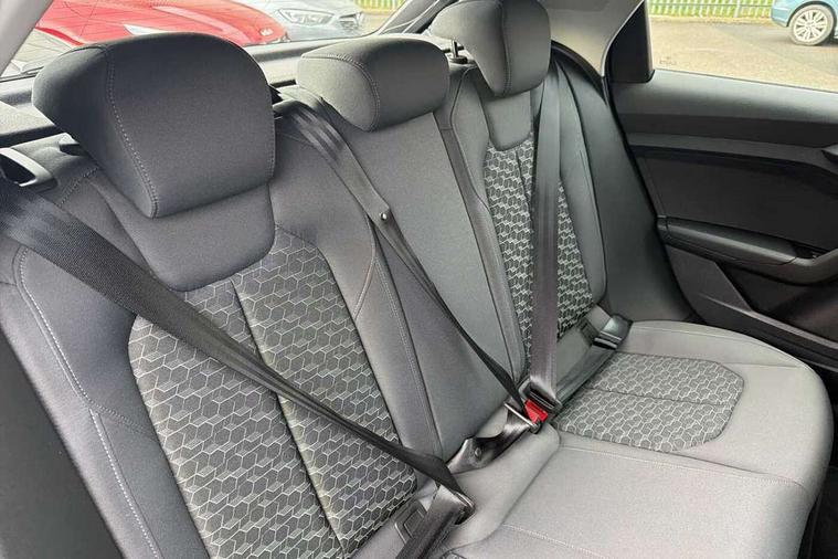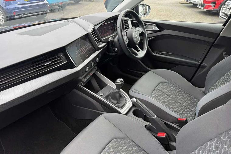 10.25" Digital instrument cluster display classis style instrument dials + speed, odometer, time, outside temperature, telephone menu + fuel level warning, Audi drive select - power steering assistance + engine, Audi smartphone interface with connect compatible smartphone via USB directly MMI display + Nav, music, third party apps controlled via MMI controller, Automatic start/stop system, Bluetooth interface, Cruise control, Driver's information system, Electromechanical power steering, Emergency e-call, Lane departure warning system, Rear parking sensor, Service interval indicator, Speed limiter, Voice control system, Washer fluid level indicator, Dynamic suspension, 2 x USB type C connection points, 6 passive loudspeakers, DAB Digital radio, MMI radio plus with 10.1" colour MMI display screen and MMI touch, Auto dimming rear view mirror, Body coloured bumpers, Body coloured door mirrors, Electric front and rear windows, Electrically adjustable, heated, folding door mirrors with integrated LED side indicator, Front side air inlets in grained matt black and C frame in anthracite black, Heat insulating glass windscreen and side windows, Heated rear windscreen, High level LED brake light, LED headlights with LED rear lights + dynamic rear indicators + headlight adjustment and high beam, turning light + LED daytime running lights, Radiator grille and rear diffuser in matt anthracite black, Radiator protective grille frame in matt aluminium silver, Rain and light sensors, Rear fog lights, Rear side wing doors, Rear wiper, Side front spoiler lips in grained matt black, 12V socket in centre console with two cup holders, 3 rear seats with headrests, 3 seat bench in 2nd row, 3 spoke leather multifunction plus steering wheel, 40:60 Split folding rear seat or folded fully, Black front and rear floor mats, Door sill trims with aluminium inlay, Driver and passenger seat with manual height adjust with forward and backwards adjustment, Front head restraints, Front passenger seat, Grey cloth headlining, Height and reach adjustable steering wheel, ISOFIX child seat mounting for front passenger and outer rear seats including top tether attachment point of outer rear seats, Leather gear knob with aluminium trim, Leatherette handbrake grip, Luggage compartment light with front and rear reading lights, Manual air conditioning, Manually adjustable lumbar support in front seats, Novum cloth upholstery with front sport seats, Luggage compartment pack - A1, 3x3 point rear seatbelts, Audi pre-sense front with pedestrain and cyclist recognition, Brake assist function, Driver and front passenger airbag with front side and head airbags, Electronic Stability Control including ABS, EBD, ASR and EDL, Front passenger airbag deactivation switch, Hill hold assist, Manual rear child locks, Seatbelt height adjustment for front seats, Seatbelt monitoring, Tyre pressure warning light, Warning triangle and first aid kit, Anti theft alarm, Anti theft wheel bolts and loose wheel warning, Immobiliser, Remote central locking with 2 foldaway keys, Aluminium trim for control switches, air vents and digital instrument cluster, Black dashboard, Silver grey accent areas including air vents, door handle recesses and centre console in diamond paint finish, Slate grey inlays polygon structure in fine paint finish,