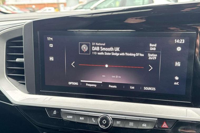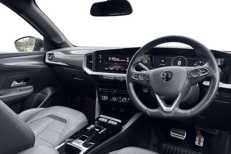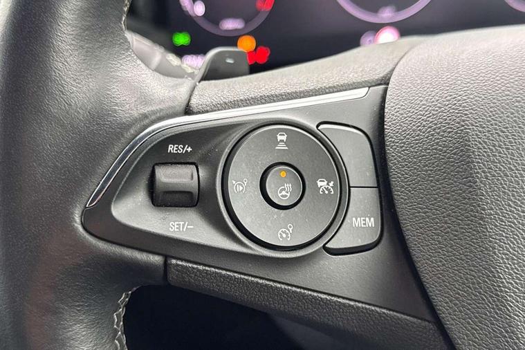12" digital instrument cluster, Advanced Park Assist, Automatic adaptive cruise control, Digital instrumentation with digital speedometer, rev counter, fuel and water temperature gauge, Driver drowsiness alert system, Driver information display with multi function trip computer, audio info, digital clock and outside air temperature with ice warning function, Engine start/stop button, EV information display, Front and rear parking distance sensors, Front camera system, Lane keep assist system (LAS) with Lane departure warning system (LDWS), Lane positioning assist, Lights on audible warning, Panoramic rear view camera, Power assisted speed sensitive steering, RDS with traffic programme, Side blind spot alert and flank guard, Smartphone integration compatible with Apple CarPlay and Android Auto, Speed sign recognition, Sports switch with engine sound enhancement, Start/stop system, Traffic sign recognition, Vauxhall connect with e-Call, 8 speed automatic transmission, 6 speakers, AM/FM stereo radio with 36 station presets, Bluetooth A2DP audio streaming function (Advanced audio distribuition profile), DAB Digital radio, Flexible Roof Mounted Radio Aerial, Front USB connection, Mobile phone portal - bluetooth connect, vehicle microphone, handsfree calls, SMS read out and reply, phone book access, Multimedia Navi Pro with 10" colour touchscreen, Steering wheel mounted controls, Two rear USB sockets, Adaptive brake lights, Automatic headlamp levelling, Automatic lighting control with tunnel detection, Automatically dimming anti dazzle rear view mirror, Black door mirror housings, Body colour door handles, Body colour front and rear bumpers, Chrome effect front and rear bumper inserts, Chrome effect Griffin logo and vizor frame, Chrome effect skid plates, Chrome effect upper window moulding, Dark tinted rear side windows + tailgate window, Electric folding door mirrors, Electrically operated front and rear windows with safety auto reverse and one touch up/down facility, Hazard warning lights, Heated rear window+rear wash/wipe, High beam assist with anti glare, Integrated black tailgate spoiler, IntelliLux Matrix LED headlights with adaptive forward lighting, LED 3rd brake light, LED daytime running lights, LED front fog lamps, LED side repeat indicators, LED tail lights, Rear foglight, Rear side wing doors, Reversing light, Solar heat absorbing windscreen and windows, Twin electrically adjustable and heated door mirrors, Two speed rain-sensitive windscreen wipers with variable intermittent wipe, Windscreen and side window demist vents, 12V Accessory socket, 3 seat bench in 2nd row, 3 spoke flat bottomed leather steering wheel with satin chrome bezel, 4 speed fan with illuminated controls, 6 way manual adjustable driver fore/aft, up/down with reclining seatback, 6 way manual adjustable front passenger fore/aft, up/down with reclining seatback, Air recirculation system, Alcantara/leather upholstery, Alloy sports pedals, Black headliner, Cabin particulate filter - removes dust, airborne particles and pollen, Centre console with two cup holders at front and one in rear, Chrome effect interior door handles, Door pockets with two litre capacity, Driver and passenger sun visors with vanity mirror, Electronic climate control (ECC), Four adjustable facia vents, Four load restraint lashing eyes, Front centre armrest with storage, Front head restraints, Front map reading lights, Front seat back storage pockets, Fully carpeted load area, Heated front seats, Heated steering wheel, Interior courtesy light, Interior tailgate handle, Luggage compartment cover, Luggage compartment lighting, Movable boot floor, Reach + rake adjustable steering column, Single front passenger seat, Three height adjustable rear seat head restraints, Twin gas assisted tailgate struts, 2x Isofix child seat fitting on outer rear seats, 3x3 point rear seat belts, Anti-lock braking system (ABS), Child proof locks on rear doors, Cornering brake control, Deactivation switch for front passenger front and side impact airbags, Drag torque control, Driver and front passenger airbags, front seat side impact airbags, full size curtain airbags, Electronic brake force distribution, Electronic Stability Programme (ESP), Emergency brake assist, Enhanced automatic emergency city braking, Forward collision alert at all speed, Hill start assist, Inertia reel lap and diagonal seatbelts for all seats, Seatbelt unfastened audible warning and warning light, Straight line stability control, Traction control, Tyre pressure monitoring system, Electronically protected audio equipment, Engine deadlock immobiliser, Freewheeling door locks, Key left in ignition audible warning, Keyless entry and start, Locking wheel nuts, Remote control central locking, Remote control ultrasonic security alarm system, Visible vehicle identification number, Atlantis black trim inserts of front doors, Black facia with silver trim insert, Instrument panel bar in polar silver, 18" bi colour alloy wheels,