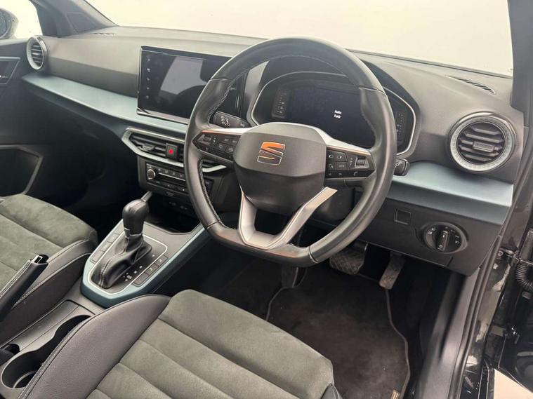 'Lights On' Reminder warning buzzer, 10" Digital cockpit, Digital clock, E-call, Electric speed sensitive power steering, Front parking sensor, Full link smartphone integration with mirror link, wireless apple carplay, Google android auto + USB Type C cable for apple and android devices, Lane keeping system, Low fuel warning light, Outside temperature display, Park assist system, Rear view camera, RPM counter, Trip computer, Wireless phone charger, 6 speakers, 9.2" colour touchscreen with navigation system, voice control and USB port (type c), Bluetooth interface for hands free and audio streaming, DAB digital radio and AM/FM radio, Steering wheel mounted audio controls, Anti theft roof antenna, Auto dimming interior rear view mirror, Automatic activation of hazard warning lights, Body coloured bumpers, Body coloured door handle inserts, Chrome roof rails and window surrounds, Electric front/rear windows, Electrically adjustable, heated and folding door mirrors, Front fog lights with cornering function and rear fog light, FULL LED automatic headlights with dynamic headlight range control, coming and leaving home, LED daytime running lights, Hidden exhaust pipe, LED rear tail lights and licence plate lights, Protective side mouldings, Rain sensing wipers, Rear side wing doors, Rear spoiler, Rear window wash/wipe, Roof colour door mirrors, Third brake light, Visible VIN plate, 2 cupholders, 3 seat bench in 2nd row, 60/40 split folding rear seat, Aircare filter, Black interior roof, Double boot floor, Driver sunvisor with covered mirror + card holder, Dual zone climate control, Front comfort seats, Front courtesy light with front reading lights, Front seat back storage pockets, Gear shift indicator, Heated front seats, Height adjustable front seats, Height/reach adjustable steering column, Illuminated air vent surrounds, Illuminated boot, Instrument lighting with brightness control, Interior ambient lighting, Interior light in footwell, central console and door panel, ISOFIX points in outer rear seats with top tether anchorage points, Leather steering wheel/gear knob/handbrake, Microsuede cloth upholstery, Passenger sunvisor with vanity mirror, Potentiometer, Single front passenger seat, Storage net on centre console, Two front and three rear height adjustable headrests, Interior chrome pack - Arona, Safe and driving pack (S) - Arona, Safety and driving pack (M) - Arona, Storage pack - Arona, 3 point seatbelts on all rear seats, ABS, Active front headrests, Child locks on rear doors, Driver and front passenger airbags with front passenger airbag de activation, front side and curtain airbags, Emergency Brake Assist (EBA) and front assist, Front and rear seatbelt reminder, Hill hold control, Multi-Collision braking, Tiredness recognition system, Traction control, Tyre pressure monitoring system, Alarm with back up horn with tow away protection, Deadlock, Electronic engine immobiliser, KESSY Keyless entry and go, Locking wheel bolts, Remote central locking, Titan black dashboard, 18" Performance Nuclear grey alloy wheels,