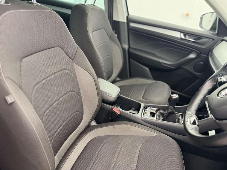 Bluetooth system, Colour multifunction trip computer, E-call, ECO Stop/start function, Exterior temperature indicator, Power assist steering, Smartlink wireless for apple carplay and wired for android auto, Speed limiter, Tailgate unlocking from outside, USB C Port x 2 in front centre console, 8 Speakers, DAB Digital radio, Aero front windscreen wipers with intermittent function, Aero rear window wiper, Auto dimming rear view mirror, Black wheel arch surrounds, Body colour bumpers, Body colour door mirrors and handles, Electric front and rear windows, Extended rear spoiler with finlets in gloss black, Front fog lights, Headlight washers, Heated rear window, Invisible tailpipe, LED rear fog light, LED third brake light in rear spoiler, Light assistant (coming/leaving home/tunnel light), Off-road style lower front bumper element, Privacy glass, Radiator grille frame in matt black with chrome strip, Rain and light sensors, Rear LED lights (high functionality) with welcome effect and dynamic indicators, Rear side wing doors, Safety reflectors on front and rear doors, Window control switches with black trim, 12V socket in boot, 2 rails with 2 hooks, 3 seat bench in 2nd row, 4 foldable roof handles with rear coat hooks, 60:40 foldable rear seat with sliding adjustment and backrest angle adjustment, Bottle holders in door panel in the 1.5 litre front and 1 litre rear, Chrome interior door handles, Cloth upholstery, Coat hooks on B pillar, Covered storage compartment on driver side, Dual zone automatic air conditioning with humidity sensor and control, Front centre armrest with storage compartment, cup holder and 12V socket, Gear shift lever with chrome frame and black gloss insert, Grey headlining, Grey stitching in front and rear armrests and door armrests + door inserts, Height adjustable front headrests, Height adjustable front seats, Illuminated and cooled glovebox, Illuminated luggage compartment, Isofix child seat fittings in outer rear seats with top tether, Manually adjustable steering column, Net programme in boot (1x horizontal Net, 2x vertical Nets), Overhead glasses storage compartment, Pollen filter, Rear centre armrest with cupholders, Single front passenger seat, Sliding trunk cover, Small Bags on the inner sides of the front backrests, Sunvisors with illuminated vanity mirrors, Three rear height adjustable headrests, Ticket holder on A Pillar, Umbrella in door panel, Auto door release and activation of warning lights in the event of an accident, Child locks on rear doors, Driver and front passenger airbag with knee airbag and front passenger airbag deactivation, Electronic parking brake with hill start assist, Emergency rear braking signal, ESC (incl. ABS+MSR+ASR+EDS+HBA+DSR+RBS+MKB), Front assist with autonomous emergency braking, Front side airbags with curtain airbags, Fuel cut off safety device, Height adjustable front 3 point seatbelts + pretensioners, Hill hold control, Rear disc brakes, Safety vest holder in door, Seat belt reminder for all seats, Three point rear seat belts, Two tone horn, Tyre pressure monitor, Alarm with interior monitoring and tilt sensor with safe function, Anti-theft wheel bolts, Immobiliser, Keyless entry and start system (KESSY), Remote central locking with 2 keys, Grey stitching in dashboard,