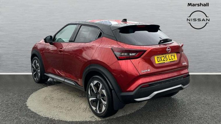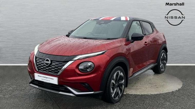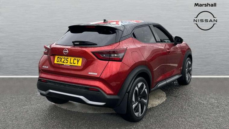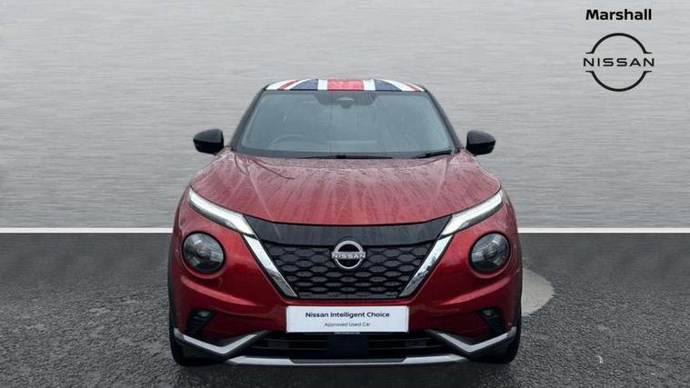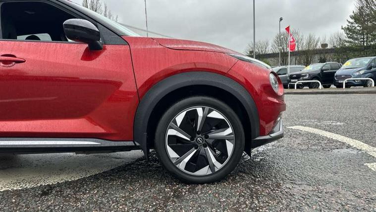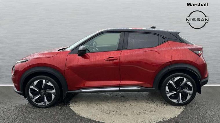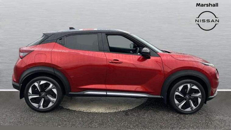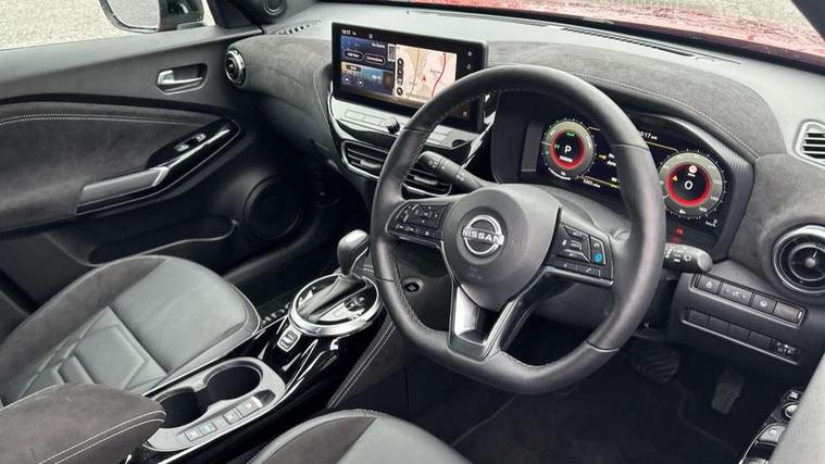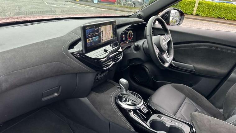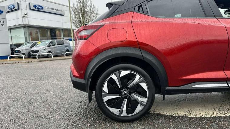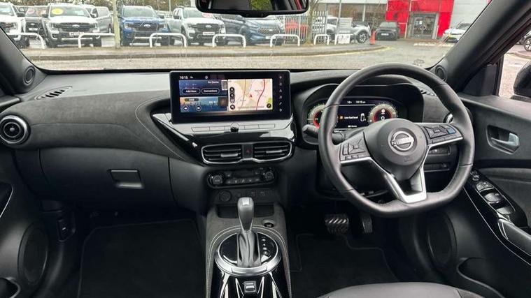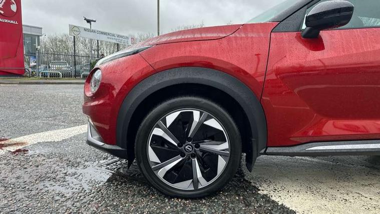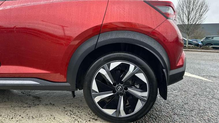 12.3" full colour TFT screen combimeter, Drive modes select (Eco, normal and sport), e-Pedal step, Emergency and breakdown call, EV mode switch, Front parking sensor, Intelligent driver alert system, Intelligent lane intervention, Lane departure warning system, Nissan connect 12.3" touch screen entertainment system, Nissan connect nav with TomTom traffic, Nissan connect services, Outside temperature sensor, Power Steering, Rear parking sensor, Stop/start button, Traffic sign recognition, Trip computer, Voice recognition, WiFi connectivity, Wireless Apple CarPlay and Google Android auto, Wireless Smartphone charger, 10 Bose speakers 8 speakers and 2 headrest speakers for driver/passenger seats, 2 X Rear console USB port, Bluetooth system, USB, Aux-in and 12V socket, Bose personal plus audio system, DAB Digital radio, Auto dimming frameless rear view mirror, Automatic hazard signal with emergency stop signal, Body colour door handles, Electrically adjustable door mirrors with integrated indicators, Follow me home headlights, Front and rear electric window with one touch driver window, High beam assist, LED 3rd brake light, LED daytime running lights, LED front fog lights, LED headlamps, LED rear fog lamp, LED rear lamps, One touch passenger window, Rear privacy glass, Rear side wing doors, Rear wiper, Roof spoiler, Shark fin roof antenna in solid Black, Solid black door mirrors, Solid black front bumper/rear bumper and side skirts inserts, Three blink turn signal, 3 height adjustable rear headrests, 3 seat bench in 2nd row, 60/40 split folding rear seat, Card holder on driver sunvisor, Door ambient lighting, Driver seat back pocket, Driver side rear coat hanger, Driver/passenger sunvisors and vanity mirrors, Front and rear cabin lights, Front armrest, Front door pockets with bottle holders, Front head restraints, Front/rear passenger grab handles, Gear console ambient circle lighting, Height adjustable driver's seat, Internal chrome door handles, Luggage board, Luggage space lighting, Monoform sporty seats, Multifunction steering wheel, Passenger seat back pocket, Rear door bottle holders, Single front passenger seat, Smooth synthetic leather steering wheel, Synthetic leather kneepad, Synthetic leather shift knob, Telescopic steering wheel adjustment, Two cupholders in front centre console, Two rear isofix child seat anchorage points with top tether, Welcome light and console tray ambient lighting, Comfort pack - Juke, Heat pack with height adjustable passenger seats - Juke, Interior personalisation pack - Juke, ProPilot pack - Juke Auto, Satin grey exterior personalisation pack - Juke, ABS with EBD and brake assist, Active ride control, Active Trace Control, Driver and passenger airbags, Driver and passenger side airbags, Electric handbrake with auto hold function, Electronic Stability Programme (ESP), Front and rear curtain airbags, Height adjustable seatbelts, Hill start assist, Intelligent emergency braking with pedestrian and cyclist recognition, Rear door child safety locks, Seatbelt reminder for driver/front passenger and rear seats, Three 3 point rear seatbelts, Traction control, Tyre pressure monitoring system, VDC Dynamic Vehicle Control, Alarm, Immobiliser, Intelligent key and start push button with walk away lock and approach unlock functions, Remote central locking, 19" Aero alloy wheels, Tyre puncture repair kit,