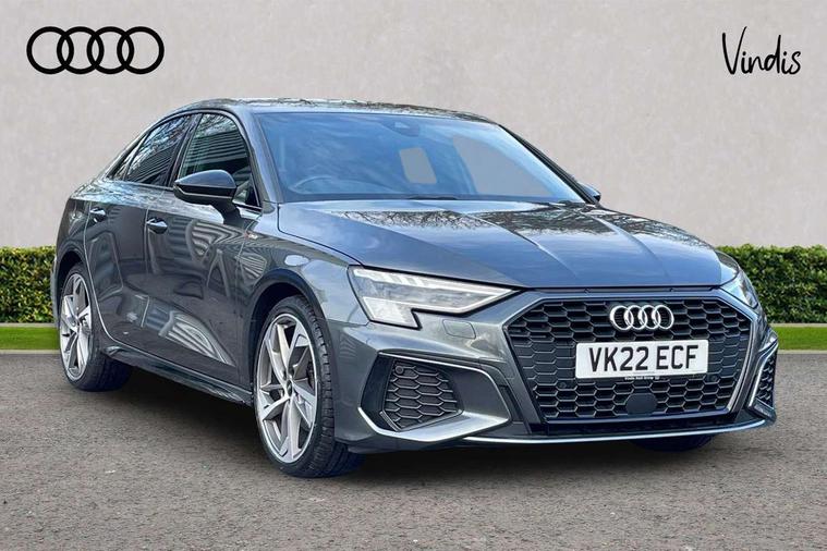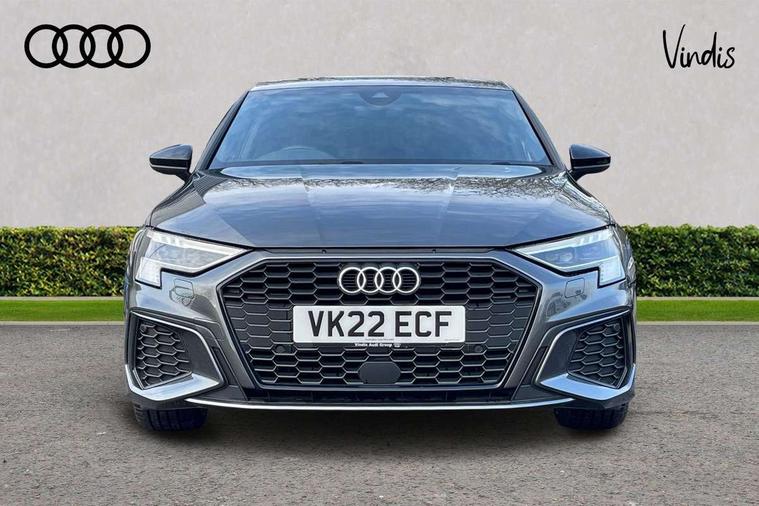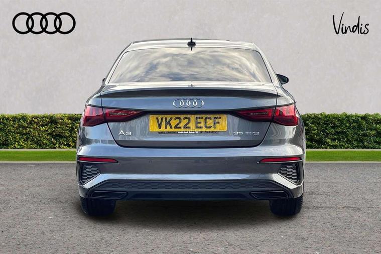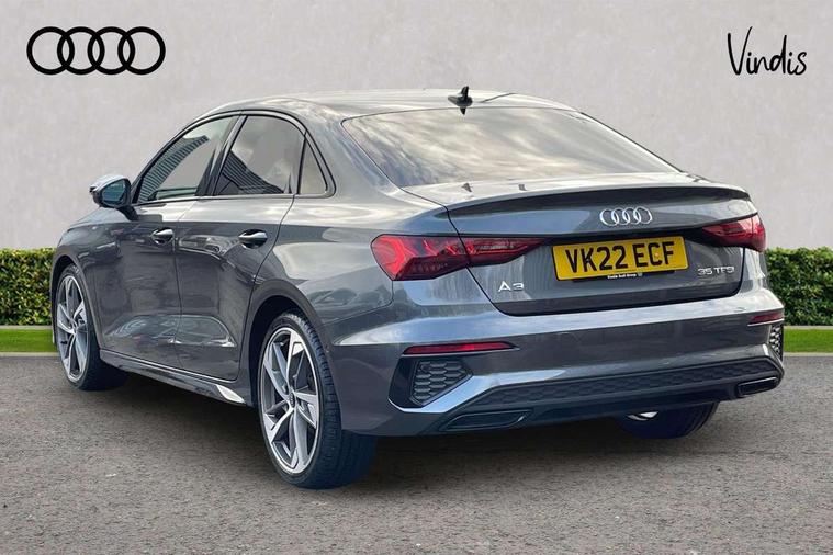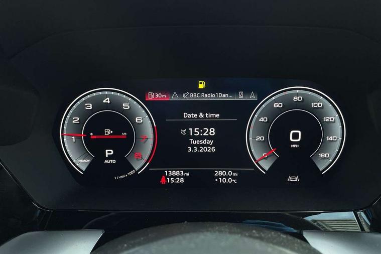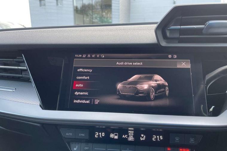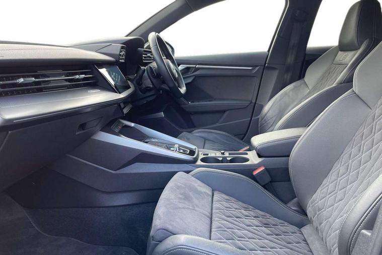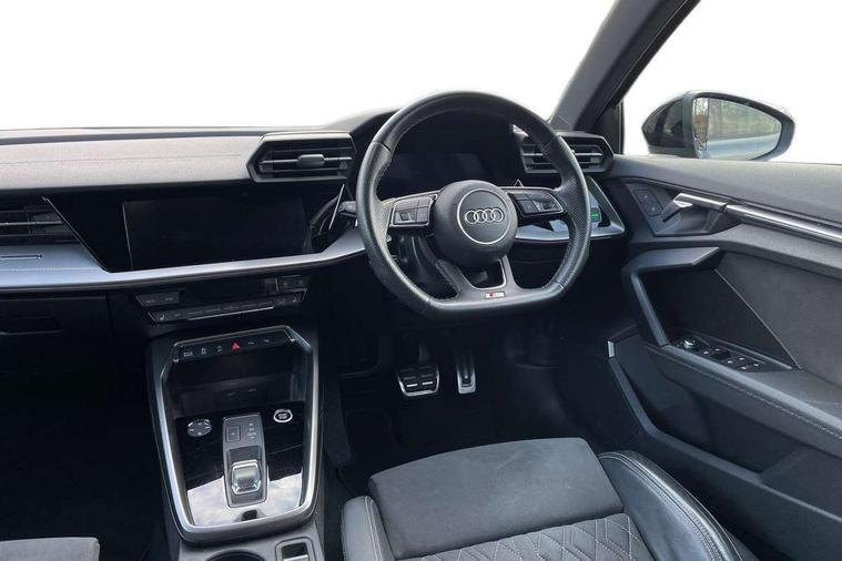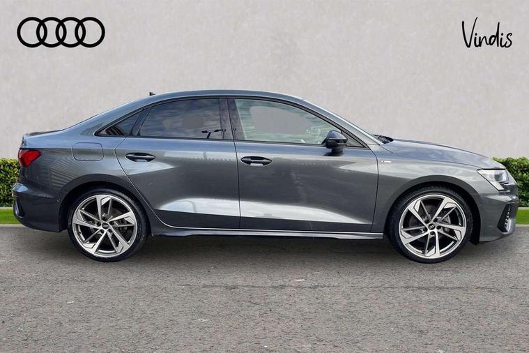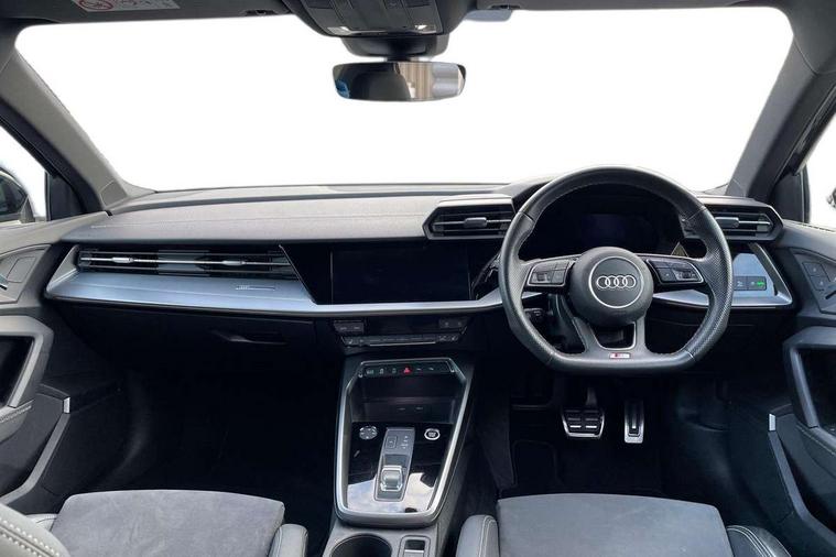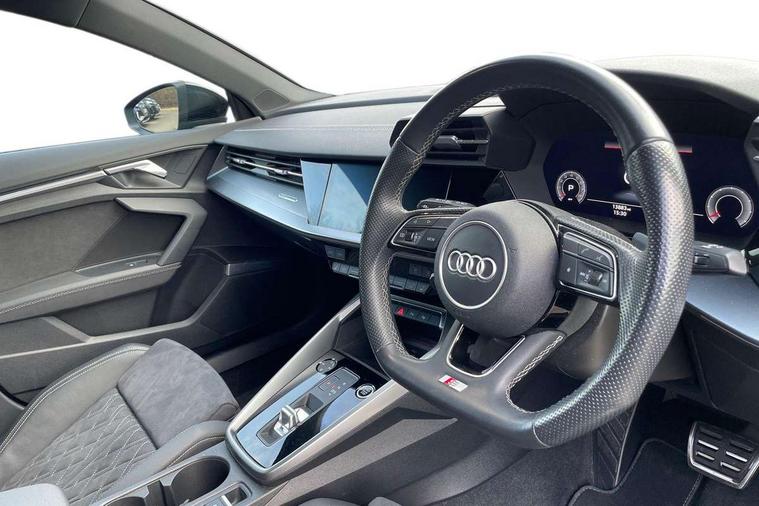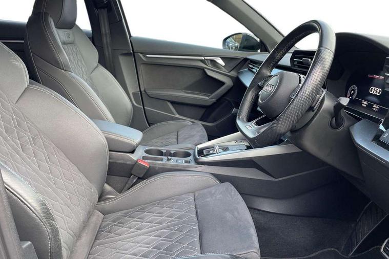 Audi connect emergency call and service, Audi drive select (Auto, Comfort, Dynamic, Efficiency and Individual), Audi smartphone interface, Audi virtual cockpit plus - 12.3" dynamic digital instrument cluster, Automatic start/stop system with recuperation, Bluetooth interface, Collision avoidance assistant, Electromechanical power speed sensitive steering, Lane departure warning system, MMI Navigation Plus with high resolution 10.1" colour touch screen display, Service indicator, Voice control system with natural language interaction, Sports suspension, 2x USB Type C ports (for charging and data transfer), 6 passive loudspeakers, CD player, DAB Digital radio, 3rd brake light, Acoustic glass windscreen, Audi matrix LED headlights, LED rear lights, dynamic front and rear indicators and headlight cleaning system, Auto dimming frameless rear view mirror, Electrically adj heated/folding + automatically dimming exterior mirrors + automatic kerb side function for passenger side exterior mirror, Front electric windows, Illuminated door sills with aluminium inserts at the front with S logo, Integrated LED indicators in door mirrors, LED daytime running lights, Light and rain sensors, Model and engine designation badges at rear, Privacy glass - dark tinted rear window, rear door and side windows, Rear electric windows, S roof spoiler, 12V socket and storage compartment in front centre console, 4 way electrically adjustable lumbar support for driver and front passenger, 40/20/40 split folding rear seat bench with cupholder, Black cloth headlining, Dual zone electronic climate control, Electrically adjustable front seats, Front and rear centre armrest in leather, Front and rear headrests, Front/rear floor mats, Heated front seats, Height and reach adjustable steering wheel, Interior lighting - glove compartment light and right hand side, Luggage compartment floor covering, Seat side bolsters, Stainless steel pedals and front footrest in black, Aluminium interior elements pack - A3, Black styling pack - A3/S3, Dinamica microfibre/mono.pur 550 artificial leather pack - A3 Saloon, Extended ambient lighting pack - A3/S3 Saloon, LED interior lighting pack - A3 Saloon Edition 1/Vorsprung, 3x3 point rear seat belts, Driver and front passenger airbag with passenger airbag deactivation, Electronic Stabilisation Control (ESC) including ABS, ASR and EDL, First aid kit with warning triangle and 2 safety vests, Front side airbags with head airbags and interaction airbag, Hill hold assist, Pre-sense front with pedestrian and cyclist detection, Seatbelt monitoring, Tyre pressure loss indicator, Anti theft alarm, Anti-theft wheel bolts, Electronically operated child lock, Immobiliser, Remote control central locking, Aluminium air vent surrounds, Aluminium trim elements, Dark spectrum aluminium inlays, accent surfaces in the dashboard and centre console in platinum grey silk effect paint finish, 19" 5 arm trapezoid design alloy wheels in titanium matt grey with diamond cut finish,