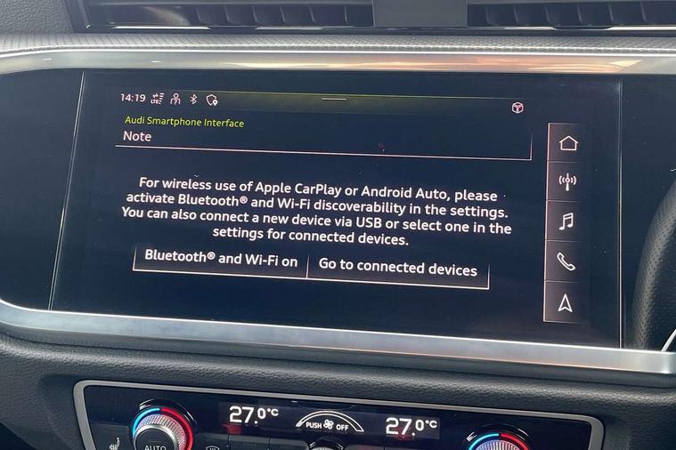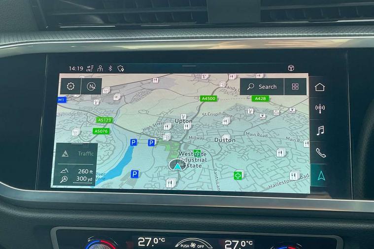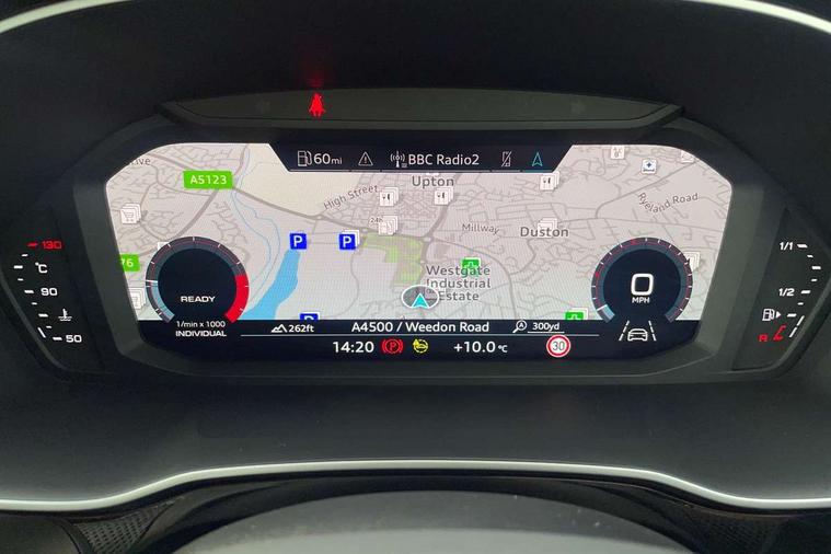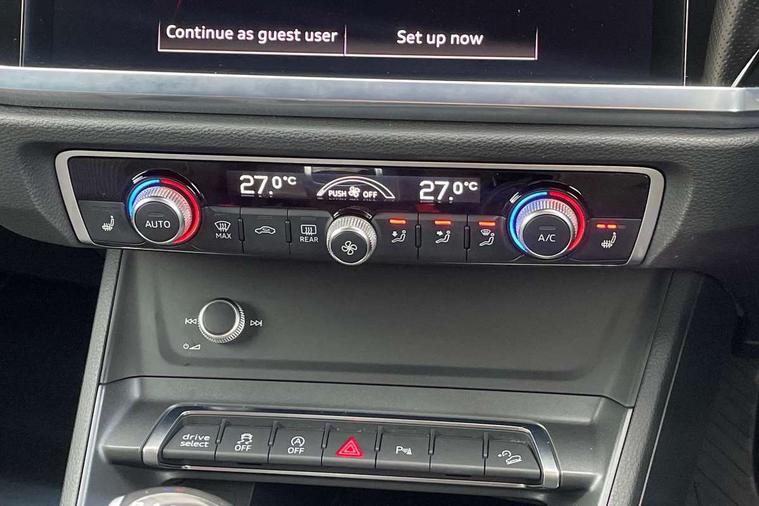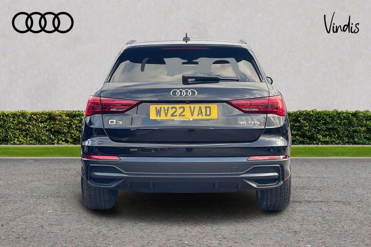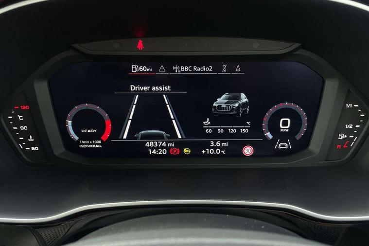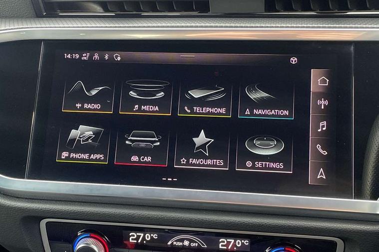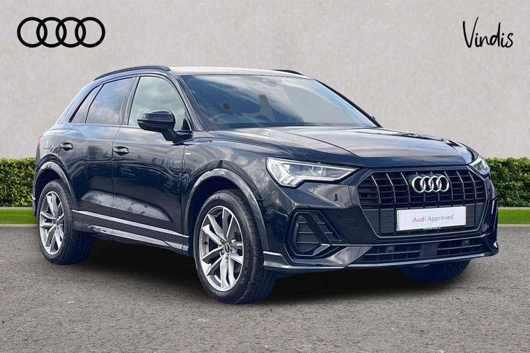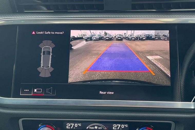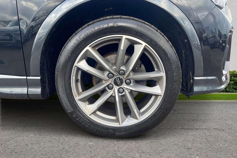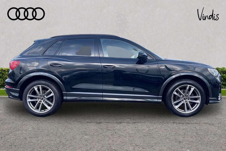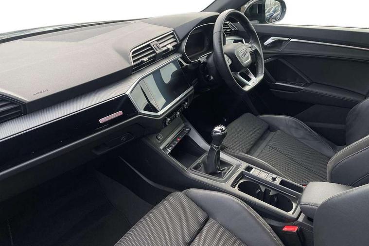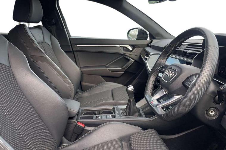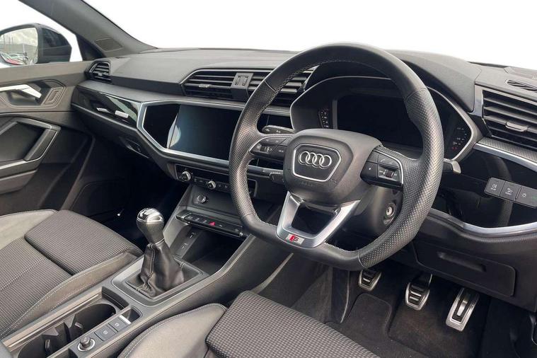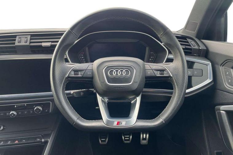 Amazon alexa Integration, Audi connect safety and service (e-call), Audi drive select, Audi lane departure warning, Audi Virtual Cockpit - 10.25" display, Bluetooth interface, Camera based traffic sign recognition, Cruise control + speed limiter, MMI Navigation Plus with high resolution 10.1 inch touchscreen colour display, Power operated tailgate, Progressive steering, Rear parking sensors, Service interval indicator, Smartphone interface includes wireless Apple carplay/Android Auto, Start stop system with recuperation, Voice control system with natural language interaction, Sports suspension, 2 USB-C ports with charge and data functions, 6 passive loudspeakers, DAB digital radio module, Acoustic windscreen, Auto dimming frameless rear view mirror, Black roof rails, Electrically folding, adjustable and heated door mirrors with integrated LED side indicators and kerb view function for passenger side, Front and rear electric windows, Front fog lights, Grille vertical bars in aluminium silver/Matt, High gloss black finish B and C pillars, LED headlights with LED daytime running lights and dynamic rear indicator, LED rear lights, Privacy glass dark tinted rear and rear-side windows (from B-pillar backwards), Rain and light sensors, Rear diffuser strip in matt titanium black, Rear side wing doors, Rear wiper, S line bumpers in contrasting Manhattan grey, Third brake light, Tinted rear windows, Variable front intermittent wipers, 12V socket in rear centre console, 3 seat bench in 2nd row, 3 spoke flat bottomed multi-function leather sport steering wheel, 40:20:40 folding with manual adjustment for 60:40 forwards/backwards position and backrest angle, Adjustable rear seat bench/backrest with centre armrest and cupholder, Black cloth headlining, Dual zone electronic climate control, Front and rear black floor mats with contrast stitching in rock grey, Front and rear headrests, Front and rear roof module including reading lights, Front centre armrest, Glove compartment lighting, Height and reach adjustable steering wheel, Illuminated door sill trims with S logo, ISOFIX child seat mounting for front passenger with airbag deactivation and outer rear seat including top tether attachment point for outer rear seats, Luggage compartment light, Manual front seats with height adjustment, Perforated leather gearknob, Single front passenger seat, Stainless steel luggage compartment sill finisher, Stainless steel pedals, Black styling pack - Q3, Non smoking pack - Q3, 3x3 point rear seatbelts, 6 airbags - Driver, front passenger, curtain and side windows, Audi pre-sense front with pedestrain and cyclist recognition, Electrically operated child locks on rear doors, Electromechanical parking brake, Electronic stabilisation control including ABS, ASR and EDL, Front seatbelt reminder, Hill descent control, Hill hold assist, Pre sense basic, Seatbelt monitoring, Tyre pressure warning, Warning triangle and first aid kit, Anti theft alarm, Anti theft wheel bolts, Immobiliser, Remote central locking, Detail dashboard around MMI touch colour display in glass look, black with surround in aluminium look, Leatherette door armrest, Piano black inlay,