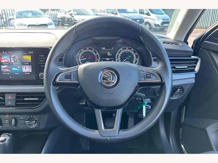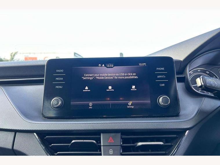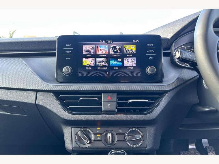 Bluetooth system, Easy light assist, Front assist system, Lane assist, Multi function trip computer, PAS, Rain and light assist with auto dimming rear view mirror, Speed limiter, 2 USB - C ports, 8 loudspeakers, Bolero radio with 8" touchscreen display, DAB Digital radio, Body colour door mirrors and handles, Chrome grille surround, Electrically adjustable and heated door mirrors, Front and rear electric windows, Tinted windows, 12V Accessory socket in centre console, Chrome inner door handles, Cloth upholstery, Decor strip on dashboard and door panel, Front head restraints, Glasses storage in roof liner, Height adjustable drivers seat, Height adjustable passenger seat, Instrument cluster with chrome painted decor ring, ISOFIX for rear passenger seat, Leather gearknob and handbrake lever, Manual lumbar support for front seats, Reading lights for driver and front passenger, Sun visor with make up mirror for front passenger, Third rear headrest, Umbrella, 3x3 point rear seatbelts, Curtain airbags, Emergency call and proactive services, Front head and side airbags, Hill hold control, Passenger airbag switch off function, Seat belt reminder for all seats, Two tone horn, Alarm, Anti-theft wheel bolts, SAFE function for remote central locking, Temporary space saver wheel,