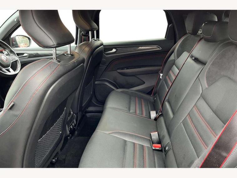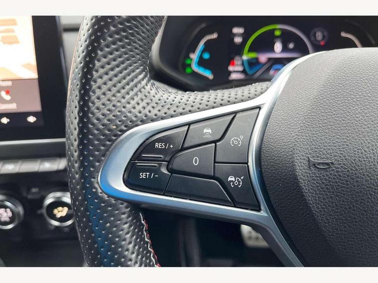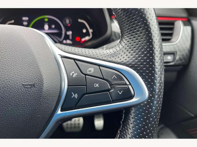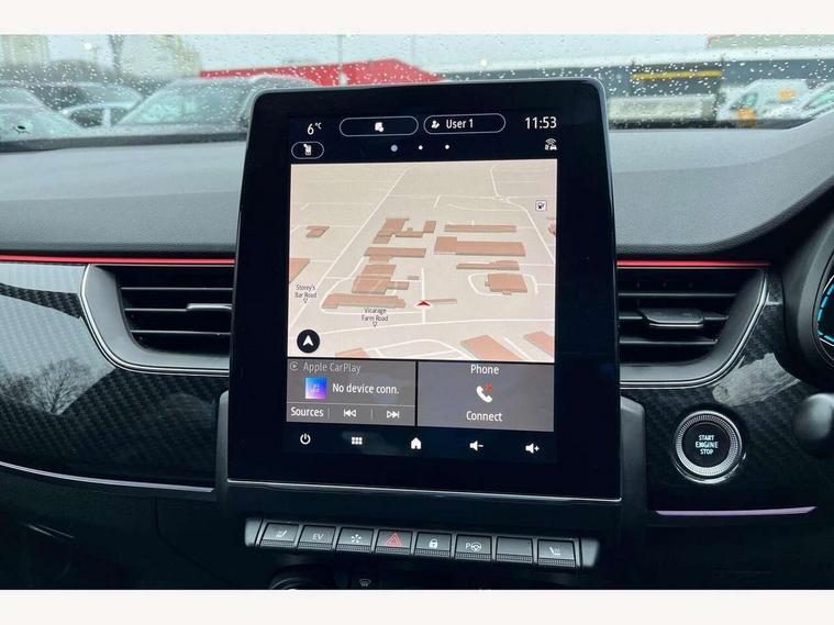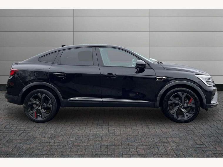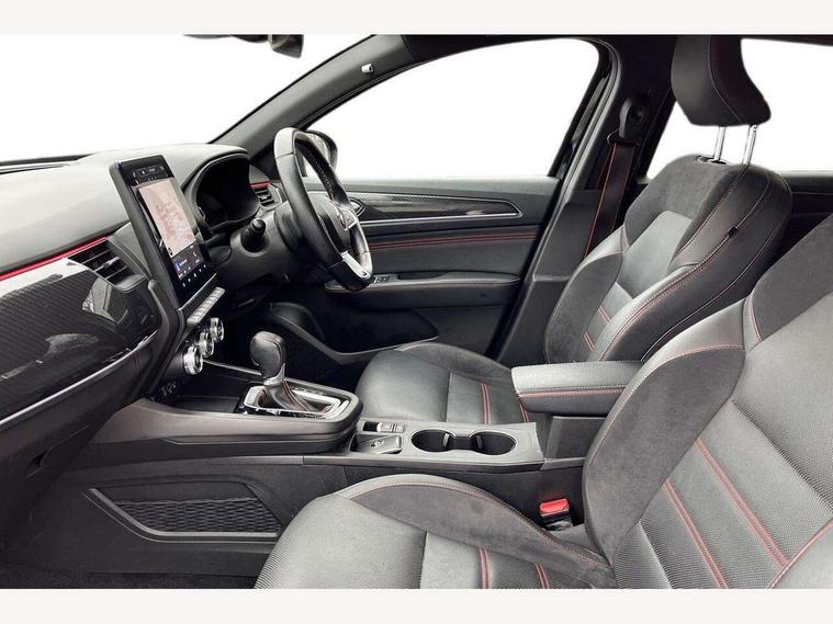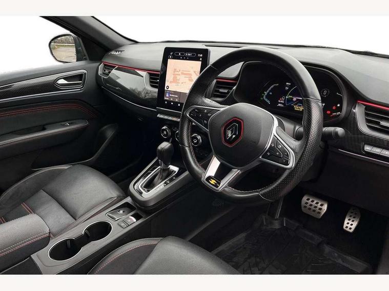 7" TFT Driver information display, Blind spot warning, Bluetooth system, EASY LINK 9.3" portrait touchscreen with navigation, Google search and traffic information, eCall emergency call system, Eco mode, EV button to activate pure mode, Front and rear parking sensors, Gear change indicator, Lane departure warning, Lane keep assist, Multi-sense - 3 driving modes and 8 ambient lighting, Rear cross traffic alert, Rear view camera, Renault automatic emergency assist, Smartphone integration compatible with Apple CarPlay and Android Auto, Traffic sign recognition with over speed prevention, Trip computer, Variable assistance electric power steering, Wireless phone charger, DAB radio, USB port, 3rd brake light, Auto dimming rear view mirror, Automatic headlights, Automatic high / low beam, Automatic windscreen wipers with rain sensor, Black side door protection with gun metal insert, Body coloured bumpers, C-shaped LED front signature lighting, Chrome decopart on wing (fender molding) with R.S. Line badge, Double chromed exhaust tailpipes elements, Extra tinted rear windows and tailgate, Frameless rear view mirror, Front and rear electric windows, Front bumper with F1 blade and honeycomb front grille, Front driver window with one touch facility and anti-pinch function, Front grille with chrome on upper part, Full LED headlights, Glossy black door mirror and lower window lining, Gun Metal front and rear skid plates, Heated rear window, R.S. Line badges on front wing and hatch door, Rain sensor, Rear windscreen wiper, Shiny black shark fin antenna, Side mirrors adjustable electrically, electrically foldable, with defrosting and temperature sensor, automatically foldable at vehicle closure, 3 seat bench in 2nd row, 60:40 split and fixed base rear seats, Aluminium pedals, Automatic climate control with combined filter, humidity sensor and AQS, Black interior roof lining, Carbon style dashboard, Central console with storage, Driver's seat height adjustment, Electrically adjustable front seats, Front and rear head restraints, Height and reach adjustable steering wheel, ISOFIX child seat fixing points on rear outermost seats, LED front and rear roof lights, Passenger seat height adjuster, R.S. line black suede-leather upholstery with red/grey stiching, R.S. Line perforated leather steering wheel with red/black harmony and R.S. Line badge, Rear air vents, Red inserts on air vents, Single front passenger seat, Parking Pack - Hands-free parking & flank protection - Arkana, Winter pack - Arkana, 3x3 point rear seat belts, ABS+EBA, Active emergency braking system, B Brake Mode - One pedal driving with increased regenerative braking, Distance warning alert, Driver airbag, Driver and passenger front and side airbag deactivation, Driver and passenger side airbags, Driver height adjustable seat belt, Electronic parking brake with auto hold, ESC (Electronic Stability Control), Front and rear no seatbelt warning sound, Front curtain airbags, Front head airbags, Hill start assist, Passenger airbag, Tyre pressure warning light, Anti drill door locks and locking fuel cap, Central door locking, Deadlocking system, Hands free keycard with Keyless access and start, RAID (Renault Anti-Intruder Device) automatic door locking, Rear side wing door and window child locking function (front driver door control panel), Superlocking, Thatcham alarm, 18" Silverstone diamond alloy wheels with red inserts,