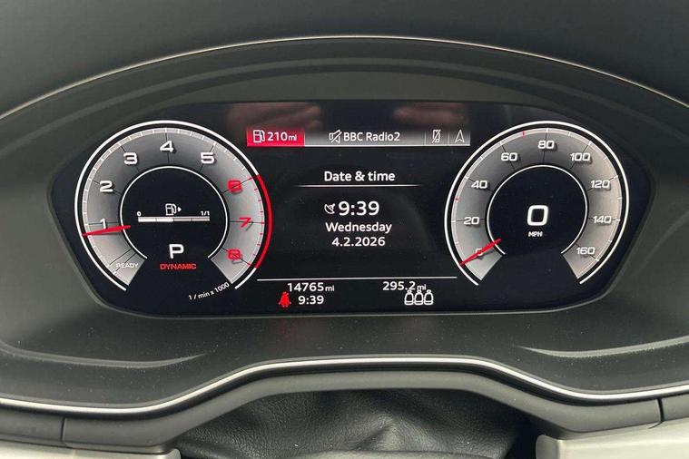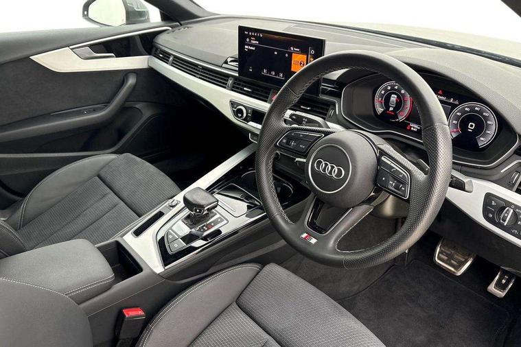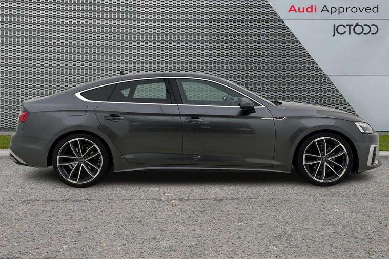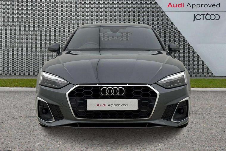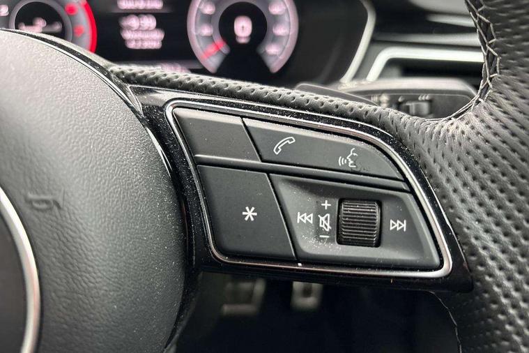 Audi connect safety and service (e-call), Audi drive select (Auto, Comfort, Dynamic and Individual), Audi smartphone interface, Audi virtual cockpit - 12.3" full colour digital instrument cluster, vehicle/engine speed, Radio/media information+Driver assistance systems, Automatic start-stop system with coasting functionality and efficiency programme, Bluetooth interface, Camera based traffic sign recognition, Electro-mechanical power steering, Email, calendar and text messages displayed via MMI, Front and rear parking sensors, Lane departure warning, MMI nav+ with MMI touch - 10.1" high resolution MMI display, touch sensitive, 3D map, route/country info, dynamic route guide, personal route assist, Power operated tailgate, Rear view camera, Service interval indicator, Voice control system, 54 litre fuel tank, Sports suspension lowered by 23mm, 8 passive loudspeakers, CD player, DAB digital radio reception, Two additional USB ports for rear passenger in rear centre console, Two SDXC card slots, Auto dimming door mirrors, Auto dimming rear view mirror, Body colour bumpers, Body colour door handles, Body colour front spoiler lip, Body colour side sill trim, Body coloured door mirrors, Electric adjustable heated door mirrors, Electric folding door mirrors, Electric front windows, Front fog lights, Honeycomb structure radiator grille in grained matt black, Kerb-view function for passenger side, LED headlights and rear lights with LED daytime running lights, LED side indicator lights integrated into door mirrors, LED third brake light, Matt aluminium silver tailpipe trim, Privacy glass, Rain and light sensors, Rear side wing doors, Rear wiper, S line badges on front wings, S line front and rear bumpers with side skirts, S Line rear diffuser in matt anthracite black with trim strip in matt aluminium silver, Side air inlets in grained matt black with matt aluminium silver inlay, Variable front intermittent wipers, Windscreen with acoustic glazing, 3 seat bench in 2nd row, 3 spoke high multifunction leather sport steering wheel with paddle shfit and S badging perforated leather grips, 4 way electric lumbar support for driver and front passenger, 40/20/40 split folding 3 seater rear bench seat, Adjustable steering column, Black cloth headlining, Black perforated leather gearknob, Contrast stitching on seats, steering wheel and gear lever gaiter, Deluxe 3 zone electronic climate control, Front centre armrest, Front head restraints, Front/rear floor mats, Heated front seats, Illuminated door sill trim with S logo, ISOFIX child seat mounting and top tether, Luggage compartment mat, Manual seat adjustment, Rear centre armrest, Rear headrests, Single front passenger seat, Stainless steel pedals and footrest, Sunvisors with vanity mirrors, LED interior light pack - A5/RS5, 3x3 point rear seatbelts, 6 airbags - Driver, front passenger, curtain and side airbags, Attention and drowsiness assist, Electromechanical parking brake, Electronic Stabilisation Control (ESC) including ABS, ASR and EDL, Front passenger airbag deactivation, Height adjustable front seatbelts, Hill hold assist, Manual child lock in rear doors, Multi collision brake assist, Pop-up bonnet for pedestrian protection, Pre sense city, Seatbelt monitoring, Tyre pressure warning, Variable restraint system, Warning triangle and first aid kit, Anti theft alarm system, Anti theft wheel bolts, Immobiliser, Keyless Go, Remote central locking, Matt brushed aluminium inlays, Tool kit, Tyre repair kit,