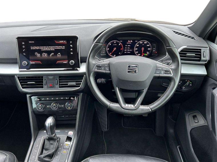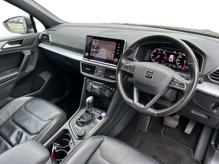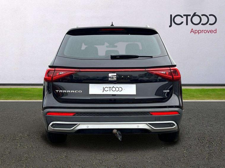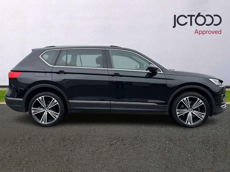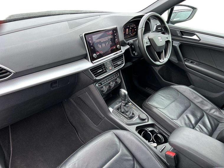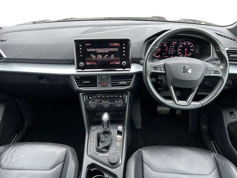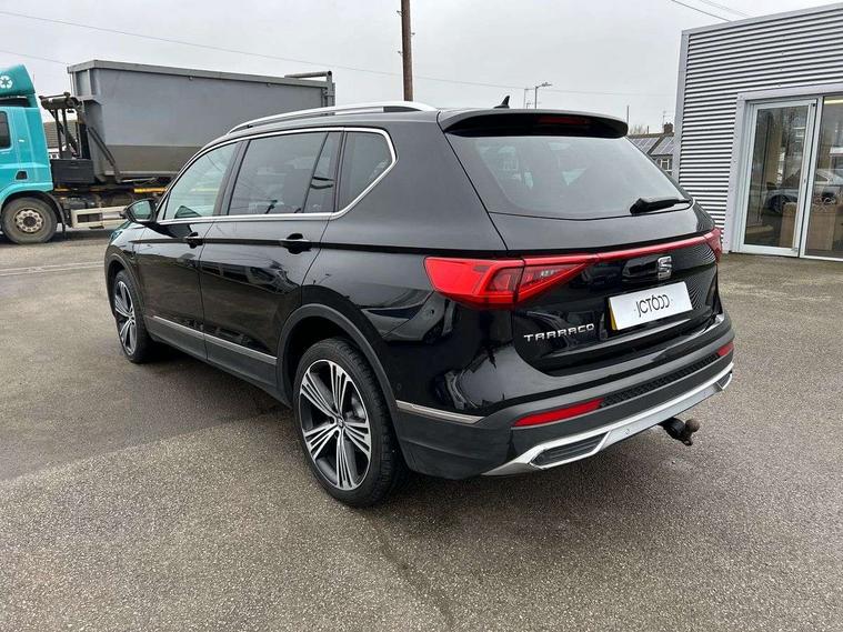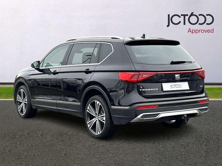 'Lights On' Reminder warning buzzer, 10.25" digital cockpit, Adaptive cruise control with speed limiter, Bluetooth audio streaming with handsfree system, Digital clock, Digital cockpit, e-Call (emergency call), Front assist city emergency braking and pedestrian protection, Full Link Smartphone Integration with Mirror Link, Apple Car Play, Google Android Auto, Lane assist, Low fuel warning light, Outside temperature gauge, Park assist system, Rear view camera, RPM counter, SEAT Drive profile - 4 different modes, progressive steering, 4Drive versions with off-road/snow, steering response, throttle response, gear shifts, Top view camera, Trip computer, Wash water level indicator, Comfort suspension, XDS electronic differential lock, Navigation system with 8" colour touchscreen with proximity sensor, 3D Map display, DAB, AM/FM Radio, 3 USB, Aux-in, 8 speakers, SD card, Steering wheel mounted audio/telephone controls, Auto dimming rear view mirror, Auto headlights with automatic coming and leaving home function, Automatic headlight adjustment, Body colour door mirrors and handles, Body coloured bumpers, Chrome front grille frame, Chrome roof rails, Chrome window trim, Dark tinted rear windows, Electric front/rear windows, Electrically adjustable and folding door mirrors, Front halogen fog lights with cornering function, Fuel door linked to central locking, Full LED headlights with LED rear lights, Hidden exhaust pipe, Illuminated aluminium front door sill with XCELLENCE logo, LED daytime running lights, LED licence plate lighting, Rain sensing wipers, Rear fog lights, Rear wash/wipe, 3 zone climate control, Ambient spot lighting and front footwell illumination, Black interior roof, Centre armrest in front with air outlet in rear, Driver and passenger sunvisor with covered and illuminated mirror, Driver/passenger lumbar adjustment, Easy fold rear seat system - second and third row, Electric driver's seat with memory, Folding table on front seat backrests, Forward and backward adjustable seats 2nd row, Four cargo rings in the boot, Front cupholders, Front seat back storage pockets, Gear shift indicator, Height adjustable driver's seat, Height adjustable front headrests, Height adjustable passenger seat, Illuminated boot, Instrument lighting with brightness control, ISOFIX points in outer 2nd row seats and front passenger seat with top tether anchorage points, Leather gear knob, Leather steering wheel, Leather upholstery with sports seats, Leather wrapped multifunction steering wheel, Luggage compartment floor with split function, Rear armrest and easy back seat release mechanism from boot, Sliding boot cover, Storage draw under front passenger seat, Three 12V sockets, Tool kit, White ambient lighting in front and rear door panels + LED lights in interior door handles, Winter pack - Tarraco, ABS, Active front head restraints, Driver/front passenger airbag, Drivers knee airbag, Electronic parking brake with auto hold, Electronic stability control, Front passenger airbag deactivation, Front side airbags, Hill hold control, Seatbelt reminders for all seats, Tiredness recognition system, Traction control, Two curtain airbags, Tyre pressure monitoring system, Alarm, Central locking, Keyless enter and go with electric tailgate with virtual pedal, Locking wheel bolts, Power locking and remote control with two foldable keys and opening boot selector, Chrome interior detailing - door and dashboard decorative inserts, 20" Supreme machined alloy wheels 37/1,