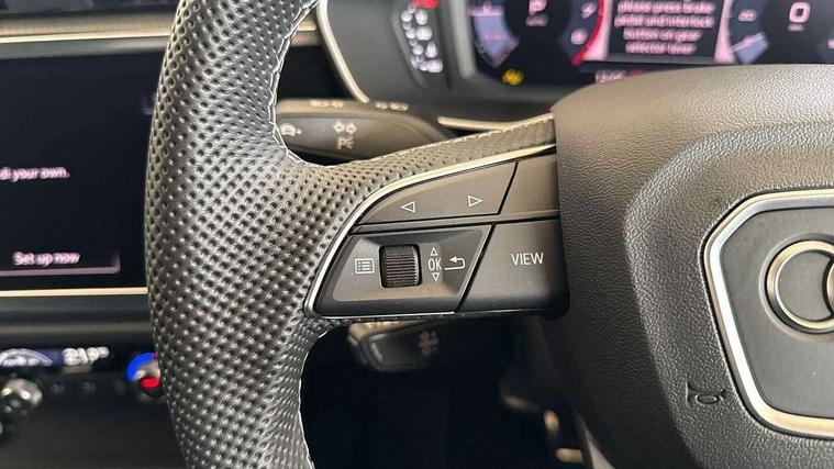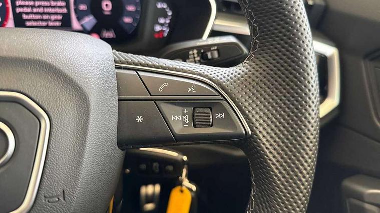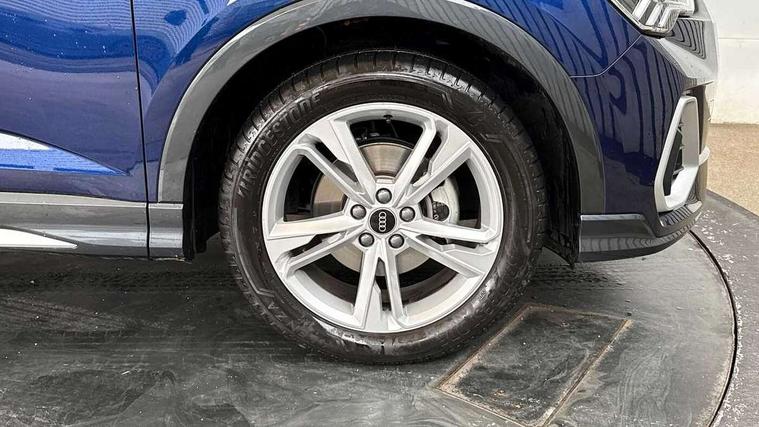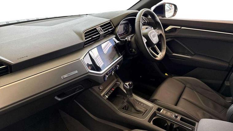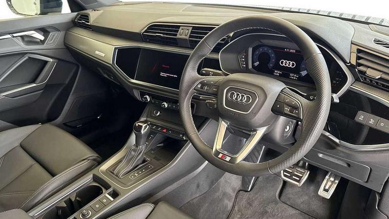Audi connect safety and service, Audi drive select, Audi lane departure warning, Audi Virtual Cockpit - 10.25" display, Bluetooth interface, Camera based traffic sign recognition, Distraction and Fatigue warning, Legal emergency call, MMI Navigation Plus with high resolution 10.1 inch touchscreen colour display, Power operated tailgate, Progressive steering, Service interval indicator, Smartphone interface includes wireless Apple carplay/Android Auto, Start stop system with recuperation, Voice control system with natural language interaction, Sports suspension, 2 USB-C ports with charge and data functions, 6 passive loudspeakers, DAB digital radio module, Acoustic windscreen, Aluminium window trim, Auto dimming door mirrors, Auto dimming frameless rear view mirror, Diffuser grille in grained matt black, Diffuser trim in selenite silver, Electrically folding, adjustable and heated door mirrors with integrated LED side indicators and kerb view function for passenger side, Front and rear electric windows, Front fog lights, Front side air inlets in selenite silver, Front underbody protection in manhattan grey paint finish, Grille surround in aluminium silver matt, High gloss black finish B and C pillars, LED Dynamic rear indicators, LED headlights with LED daytime running lights, LED rear lights, LED third brake light, Privacy glass dark tinted rear and rear-side windows (from B-pillar backwards), Radiator grille in anthracite black with inlay in matt aluminium silver, Rain and light sensors, Rear side wing doors, Rear underbody protection in matt black, Rear wiper, S line badges on front wings, S line front and rear bumpers and side skirts in contrasting Manhattan grey paint finish, Side skirt insert in matt Platinium grey, Variable front intermittent wipers, 12V socket in rear centre console, 3 seat bench in 2nd row, 3 spoke leather multifunction steering wheel features S badging and grips in perforated leather with contrast stitching, 40:20:40 folding with manual adjustment for 60:40 forwards/backwards position and backrest angle, Adjustable rear seat bench/backrest with centre armrest and cupholder, Black cloth headlining, Dual zone electronic climate control, Electric lumbar support, Front and rear black floor mats with contrast stitching, Front and rear headrests, Front centre armrest, Height and reach adjustable steering wheel, Illuminated door sill trims with S logo, ISOFIX child seat mounting for front passenger with airbag deactivation and outer rear seat including top tether attachment point for outer rear seats, Luggage compartment sill protection in stainless steel, Manual front seats with height adjustment, Perforated leather gearknob, Single front passenger seat, Stainless steel pedals, Twin leather upholstery with front sport seats + S embossing, Non smoking pack - Q3, 3x3 point rear seatbelts, 6 airbags - Driver, front passenger, curtain and side windows, Audi pre-sense front with pedestrain and cyclist recognition, Electrically operated child locks on rear doors, Electromechanical parking brake, Electronic stabilisation control including ABS, ASR and EDL, Front seatbelt reminder, Hill descent control, Hill hold assist, Pre sense basic, Seatbelt monitoring, Tyre pressure warning, Warning triangle and first aid kit, Anti theft wheel bolts, Immobiliser, Remote central locking, Thatcham approved category 1 anti theft alarm, Aluminium look interior elements, Dark matt brushed aluminium inlay, Detail dashboard around MMI touch colour display in glass look, black with surround in aluminium look, Leatherette door armrest,