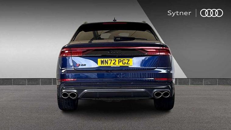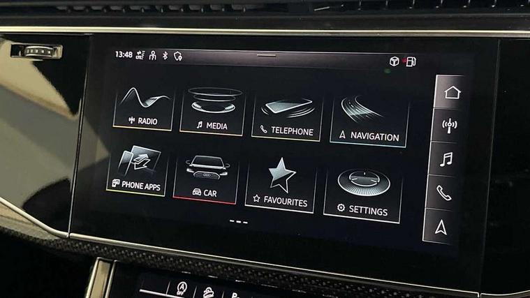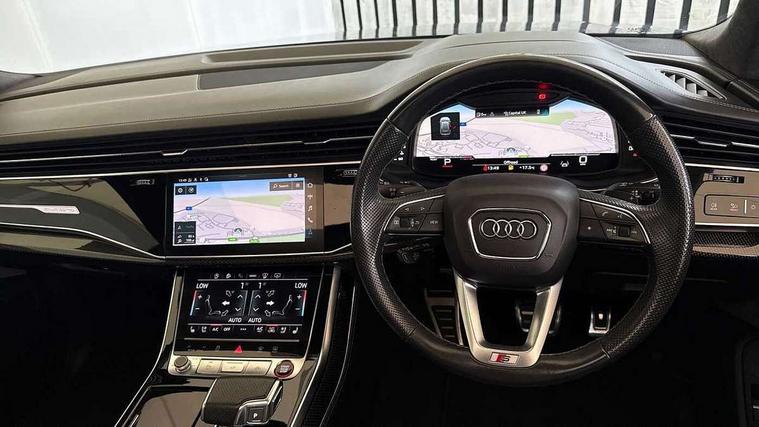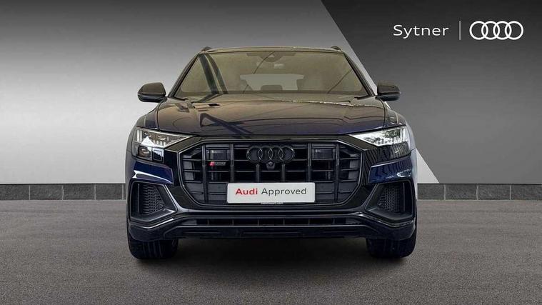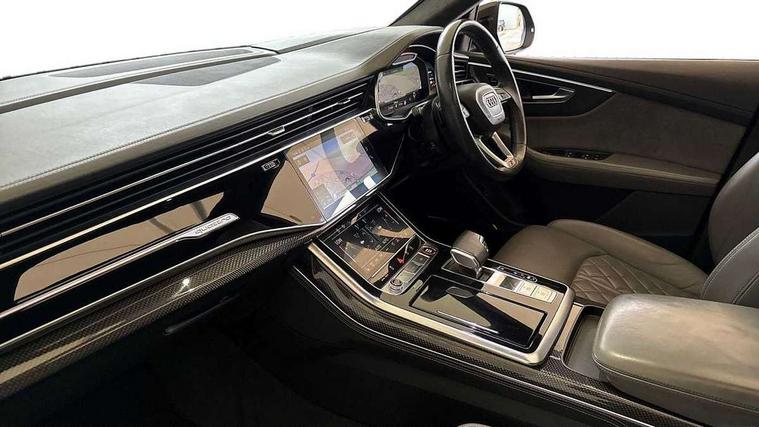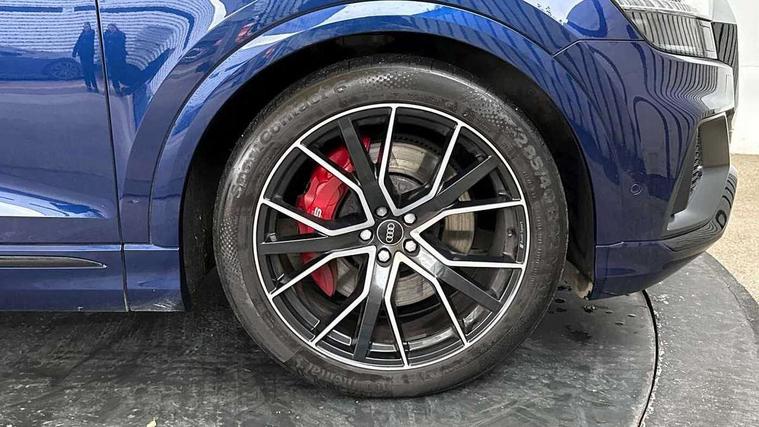 10.1" and 8.6" Dual colour touchscreens, 2 USB ports with charge and data functions in the rear, All wheel steering, Audi connect safety and service (e-call), Audi connect with Amazon Alexa Integration, Audi drive select, Audi virtual cockpit - 12.3" high resolution LCD display with fully customisable instrument cluster, Automatic start/stop system, Electro-mechanical PAS, Head up Display, Low washer fluid indicator, MMI - Multi Media Interface control system, MMI navigation plus with MMI touch, Natural voice recognition, On board computer, Operating buttons in black, glass look with haptic feedback, Power door closure, Power operated tailgate, Service interval indicator, Smartphone interface includes wireless Apple carplay/Android Auto, 48V Mild hybrid technology, 85 litre fuel tank, Electromechanical active roll stabilisation, Quattro sports differential, S specific Adaptive air suspension, Audi music interface with 2 USB ports with charge and data functions, Aux-in socket, DAB Digital radio, 3rd brake light, Acoustic windscreen, Adaptive windscreen wipers with integrated washer jets, Audi Beam uses LEDs to project Vorsprung logo, Audi HD Matrix LED headlights with dynamic front and rear indicators, Auto dimming frameless rear view mirror, Body coloured bumpers, Coming/leaving home lighting function, Electric front+rear windows, Electric panoramic glass sunroof, Electrically folding auto dimming/adjustable/heated door mirrors with memory function, LED side indicators and kerb view function for passenger side, Gloss black finish for exterior Audi rings and SQ8 logo, Headlight washers, Heat insulating glass in windshield, LED signature daytime running lights, Platinum grey front spoiler lip and diffuser insert, Privacy glass - dark tinted rear and rear side windows from B-pillar backwards, Rain and light sensors, Rear side wing doors, Rear wiper, S specific dual brach chrome tailpipes on both the left and right, S specific front and rear bumpers, S specific side skirts in matt selenite silver, Side air inlet grilles in matt titanium black, Trim and underbody protection in matt selenite silver, 3 bench rear seats in 2nd row, 3 spoke heated leather multi-function steering wheel including paddle shift, 4 zone deluxe automatic climate control, 4-way lumbar support for front seats, 40:20:40 split folding rear bench seat, Black dinamica headlining, Comfort front centre armrest, Double sun visor with illuminated vanity mirror on driver and passenger side extendable, Driver and front passenger seat memory function for electrically adjustable front seats, Electric sunblind for the rear side windows and manual sunblind for the rear window, Front head restraints, Front/rear floor mats, Heated front and outer rear seats, Illuminated door sill trims, ISOFIX child seat mounting for front passenger seat and 2 outer rear seats with top tether child seat mounting for all 3 rear seats, Luggage compartment sill protection in stainless steel, Massage and ventilation function for front seats, Rear centre armrest with 2 cupholders, Rear headrests, Single front passenger seat, Stainless steel pedals, Valcona leather upholstery + super sports seats with S embossed logo, City assist pack - Q8, Comfort and sound pack - SQ8, Extended leather pack - Q8, Titanium Black Styling Pack - Q8, Tour pack - Q8, 3 point seatbelts on all seats, Audi pre sense front, Child locks on rear doors, Driver and front passenger, front side and curtain airbags, Electromechanical parking brake, Electronic Stability Control (ESC) including ABS, ASR and EDL, Front passenger airbag deactivation, Hill descent control, Hill hold assist, Predictive pedestrian protection, Seatbelt monitoring, Traction control, Tyre pressure loss indicator, Warning triangle and first aid kit, Anti theft alarm with tow away protection, Anti-theft wheel bolts and wheel loosening detection, Immobiliser, Keyless go with remote central locking, Carbon vector inlays, 22" x 10J 5 V spoke star design alloy wheels in gloss anthracite black, Tool kit, Tyre repair kit,
