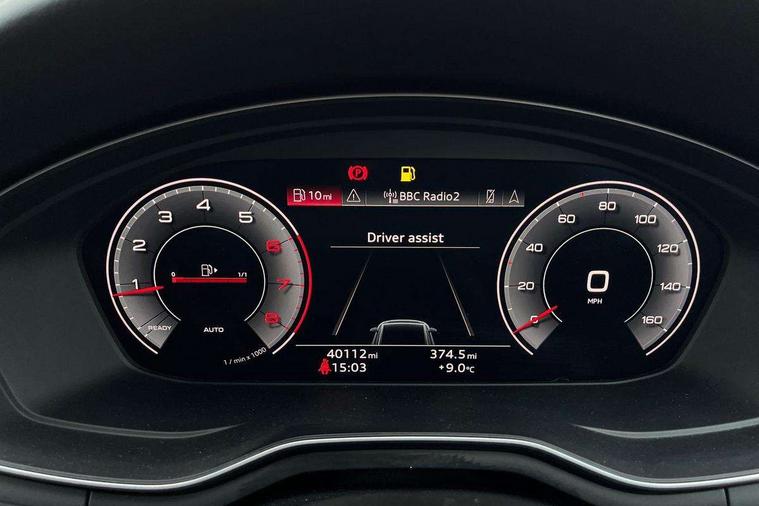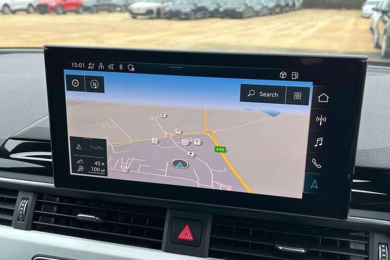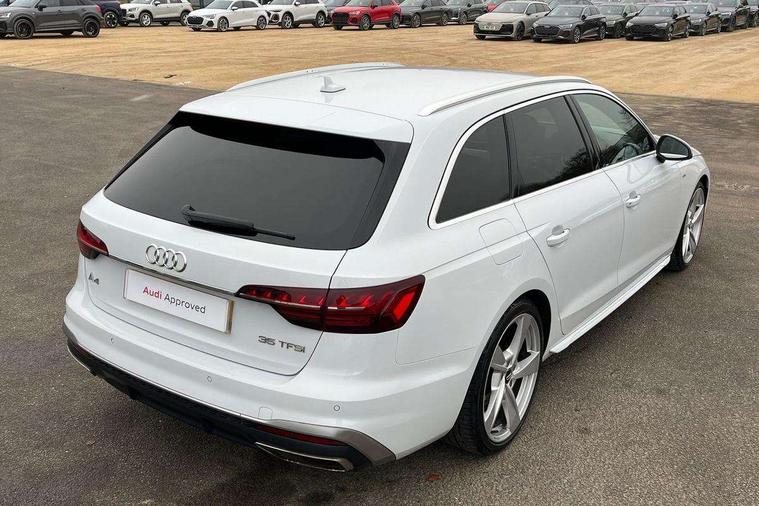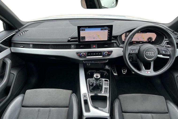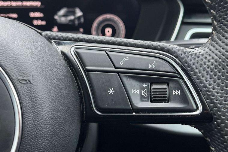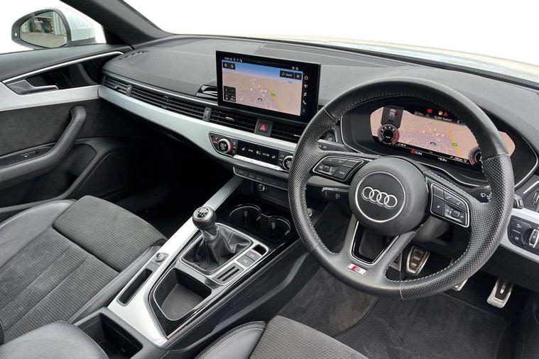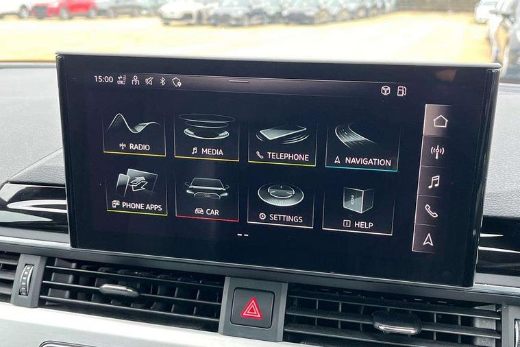 Audi connect safety and service (e-call), Audi drive select, Audi parking system plus with front and rear sensors, Audi smartphone interface, Audi virtual cockpit, Automatic start-stop system with coasting functionality and efficiency programme, Bluetooth interface, Cruise control system with speed limiter, Electromechanical power steering, MMI Navigation plus with MMI touch includes 10.1" high resolution colour MMI display, 3D map, Power operated tailgate, Rear view camera, Voice control system, 54 litre fuel tank, Sports suspension lowered by 23mm, 2 USB charging ports, 8 passive loudspeakers, DAB digital radio reception, Aluminium roof rails, Auto dimming rear view mirror, Body colour door handles, Body colour front spoiler lip, Body colour side sill trim, Body coloured door mirrors, Electrically folding auto dimming/adjustable/heated door mirrors with LED side indicators and kerb view function for passenger side, Grained matt black side air inlets with matt aluminium silver inlay, High beam assistant, Honeycomb structure radiator grille in grained matt black, LED headlights with LED rear lights + dynamic rear indicators + headlight adjustment and high beam, turning light + LED daytime running lights, Matt aluminium silver tailpipe trim, Privacy glass, Rain and light sensors, S Line badges on the front wings, S line front and rear bumpers with side skirts, S Line rear diffuser in matt titanium black with trim strip in matt aluminium silver, S Line roof edge spoiler, Windscreen with acoustic glazing, 4 way electric lumbar support for driver and front passenger, 40/20/40 split folding 3 rear seat bench in 3 parts with rear centre armrest, Black cloth headlining, Black perforated leather gearknob, Contrast stitching on seats, steering wheel and gear lever gaiter, Deluxe 3 zone electronic climate control, Door sill trims with aluminium inlay, Electric load area cover, Front and rear head restraints, Front centre armrest, Heated front seats, Illuminated door sill trims with S logo, ISOFIX child seat mounting and top tether, Manual seat adjustment, Stainless steel pedals and foot rest, High gloss package - A4, LED Interior light pack - A4/S4, 3 rear seatbelts, 6 airbags - Driver, front passenger, curtain and side windows, Electronic Stabilisation Control (ESC) including ABS, ASR and EDL, Hill hold assist, Multi collision brake assist, Pop-up bonnet for pedestrian protection, Pre sense city, Seatbelt monitoring, Warning triangle and first aid kit, Anti theft alarm, Anti theft wheel bolts, Keyless Go, Matt brushed aluminium inlays, Tool kit, Tyre repair kit,