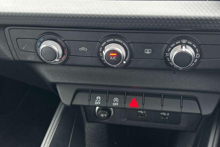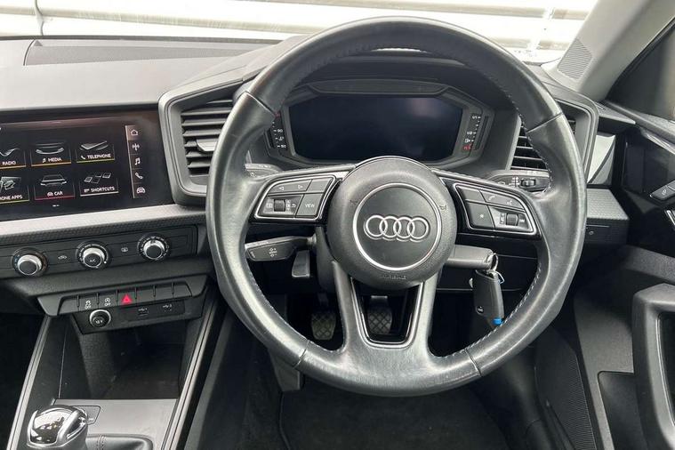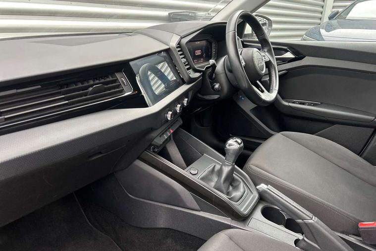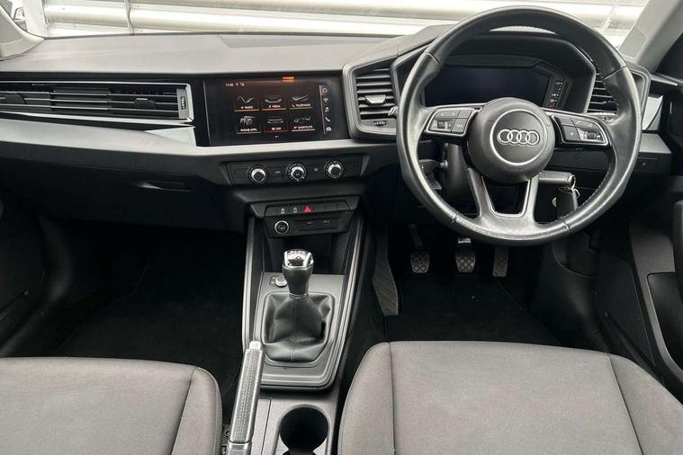 Black inlays polygon structure, Luggage compartment pack - A1, 15" 5 arm design alloy wheels, Anti theft alarm, Anti theft wheel bolts and loose wheel warning, Audi pre-sense front with pedestrain and cyclist recognition, Immobiliser, Remote central locking with 2 foldaway keys, 1 x SDXC card reader, 1 x USB type C and 1 USB type A charging points, 6 passive loudspeakers, DAB Digital radio, MMI radio plus with 8.8" colour MMI display screen and MMI touch, 3x3 point rear seatbelts, Brake assist function, Driver and front passenger airbag with front side and head airbags, Electronic Stability Control including ABS, EBD, ASR and EDL, Front and rear seatbelt reminder, Front passenger airbag deactivation switch, Hill hold assist, Seatbelt height adjustment for front seats, Seatbelt monitoring, Tyre pressure warning light, Warning triangle and first aid kit, Auto dimming rear view mirror, Body coloured bumpers, Body coloured door mirrors, Electric front and rear windows, Electrically adjustable, heated, folding door mirrors with integrated LED side indicator, Front side air inlets with front spoiler lip and rear diffuser in matt black grained, Heat insulating glass windscreen and side windows, Heated rear windscreen, LED headlights with LED rear lights + dynamic rear indicators + headlight adjustment and high beam, turning light + LED daytime running lights, Radiator grille in matt black, Rain and light sensors, Rear fog lights, Rear wiper, 12V socket in centre console with two cup holders, 3 rear seats with headrests, 3 spoke leather multifunction plus steering wheel, 40:60 Split folding rear seat or folded fully, Air vents, door handle recesses and centre console in black, Delta cloth upholstery, Driver and passenger seat with manual height adjust with forward and backwards adjustment, Front head restraints, Front/rear floor mats, ISOFIX child seat mounting for front passenger and outer rear seats including top tether attachment point of outer rear seats, Leather gear knob with aluminium trim, Leatherette handbrake grip, Luggage compartment light with front and rear reading lights, Manual air conditioning, Titanium grey cloth headlining, 10.25" Digital instrument cluster display classis style instrument dials + speed, odometer, time, outside temperature, telephone menu + fuel level warning, Audi connect safety emergency and service including E-call, Audi smartphone interface with connect compatible smartphone via USB directly MMI display + Nav, music, third party apps controlled via MMI controller, Automatic start/stop system, Bluetooth interface, Driver's information system, Electromechanical power steering, Lane departure warning system, Service interval indicator, Speed limiter, Voice control system, Washer fluid level indicator, Dynamic suspension,
