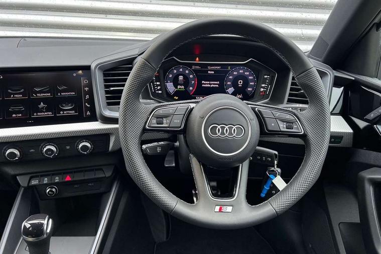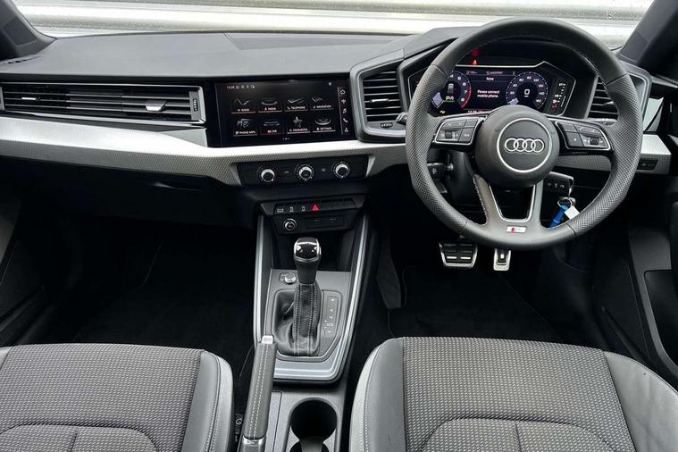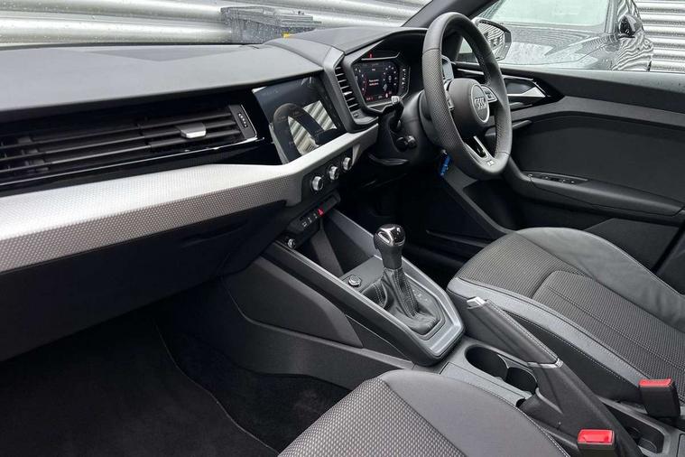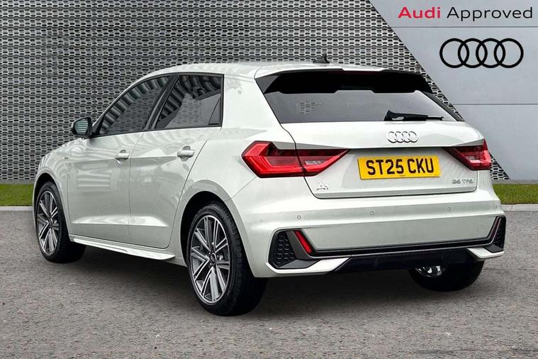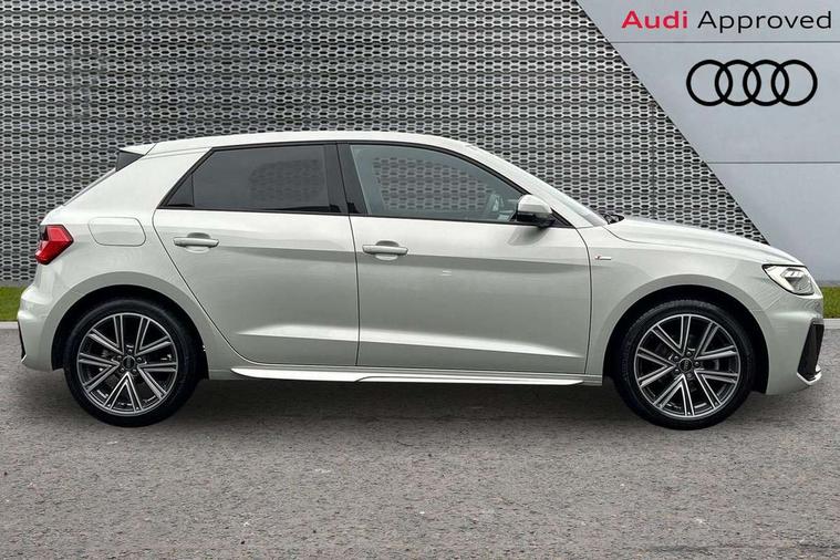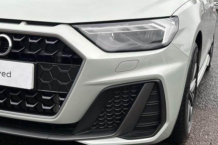 10.25" Digital instrument cluster display classis style instrument dials + speed, odometer, time, outside temperature, telephone menu + fuel level warning, Advanced driver attention and drowsiness monitor, Audi connect emergency call and service, Audi drive select, Audi remote connect and control, Audi smartphone interface, Bluetooth interface, Camera based traffic sign recognition, Cruise control, Driver's information system, Electromechanical power steering, Lane departure warning system, Rear parking sensor, Service interval indicator, Speed limiter, Start stop system with recuperation, Voice control system, Washer fluid level indicator, Sports suspension, 2 x USB type C connection points, 6 loudspeakers, DAB Digital radio, MMI radio plus with 10.1" colour MMI display screen and MMI touch, Auto dimming rear view mirror, Body coloured door mirrors, Door sill trims with aluminium inlays and S line logo in front, Electric front and rear windows, Electrically adjustable, heated, folding door mirrors with integrated LED side indicator, Front side air inlets in grained matt black and C frame in anthracite black, Headlight cleaning system, Heat insulating glass windscreen and side windows, Heated rear windscreen, High level LED brake light, LED daytime running lights, LED headlights with range control LED rear lights + dynamic rear indicators, Light and rain sensors, Privacy glass, Radiator grille and rear diffuser in matt anthracite black, Radiator protective grille frame in matt aluminium silver, Rear fog lights, Rear side wing doors, Rear wiper, S line badges on front wings, Side front spoiler lips in grained matt black, 12V socket in centre console with two cup holders, 3 rear seats with headrests, 3 seat bench in 2nd row, 3 spoke leather multi-function plus steering wheel features S badging and grips in perforated leather with contrast stitching, 40:60 Split folding rear seat or fully collapsed, Black cloth headlining, Front and rear velour black floor mats with contrast stitching in fine silver, Front head restraints, Front passenger seat, Height and reach adjustable steering wheel, Interior lighting includes roof module, front and rear reading lights and right luggage compartment lighting, ISOFIX child seat mounting for front passenger and outer rear seats including top tether attachment point of outer rear seats, Leather gear knob with aluminium trim, Leather handbrake grip, Manual air conditioning, Manual height adjustable for driver and front passenger seat, Manually adjustable lumbar support in front seats, Stainless steel pedals, Ambient lighting package - A1, Luggage compartment pack - A1, S line exterior styling pack - A1 Sportback, 3x3 point rear seatbelts, Audi pre-sense front with pedestrain and cyclist recognition, Brake assist function, Driver and front passenger airbag with front side and head airbags, Electronic Stability Control including ABS, EBD, ASR and EDL, Front passenger airbag deactivation switch, Hill hold assist, Manual rear child locks, Seatbelt height adjustment for front seats, Seatbelt monitoring, Tyre pressure loss indicator, Warning triangle and first aid kit, Anti theft alarm, Anti theft wheel bolts, Immobiliser, Remote control key with safelock, Aluminium trim for control switches, air vents and digital instrument cluster, Black dashboard, Silver grey inlays polygon structure in diamond paint finish, Structured grey accent surfaces insert of air vents, interior door handle recesses and centre console in quartz paint finish,