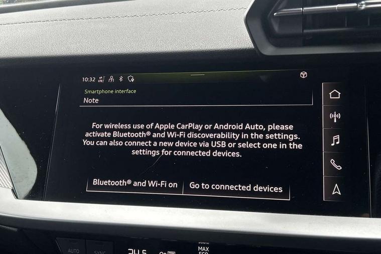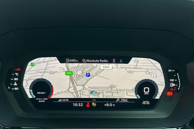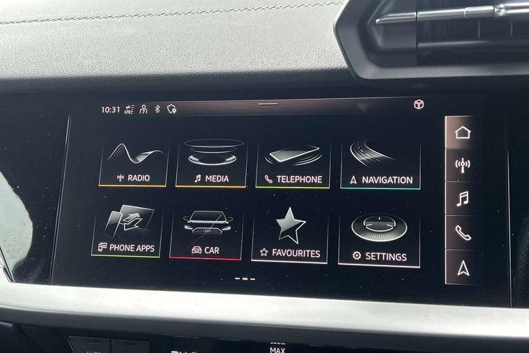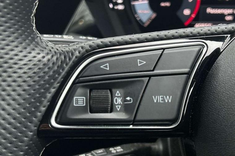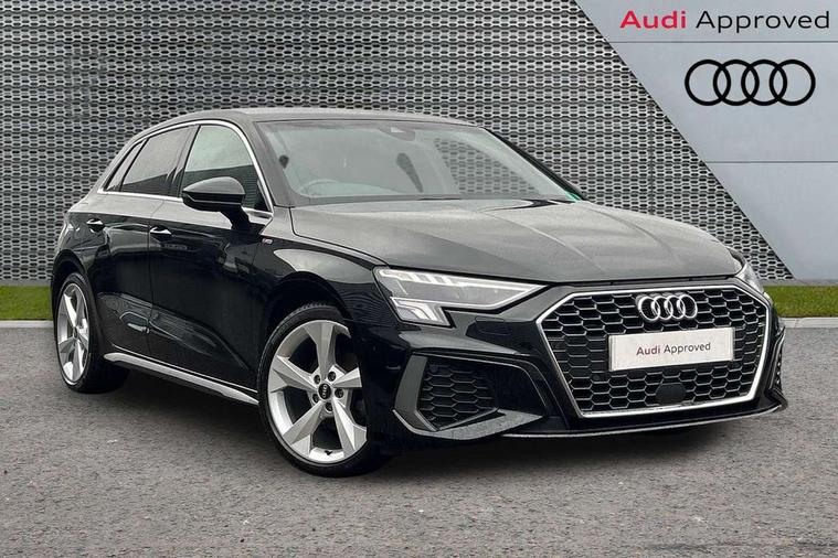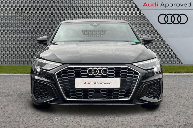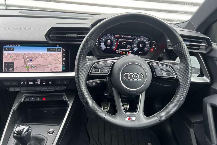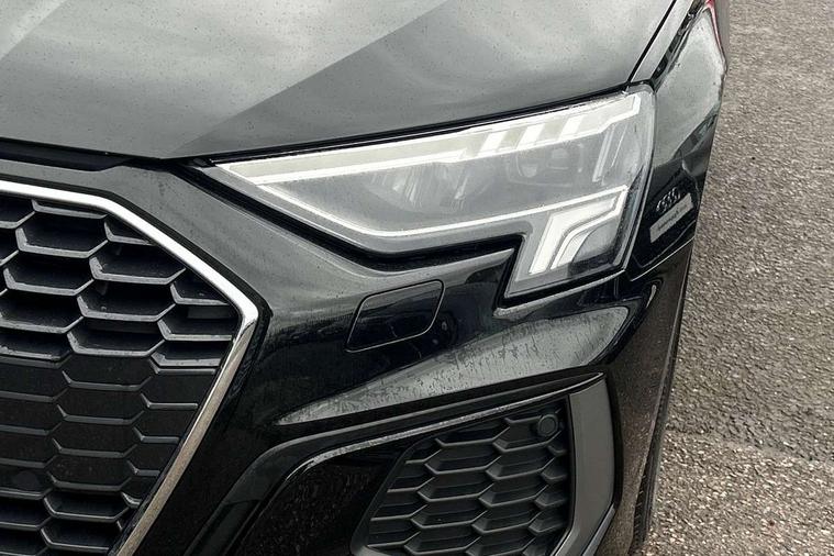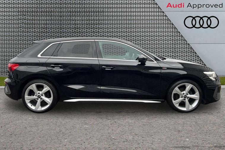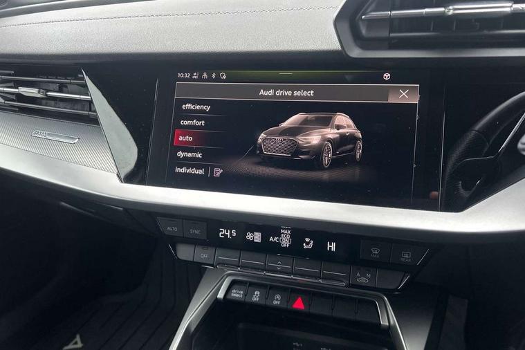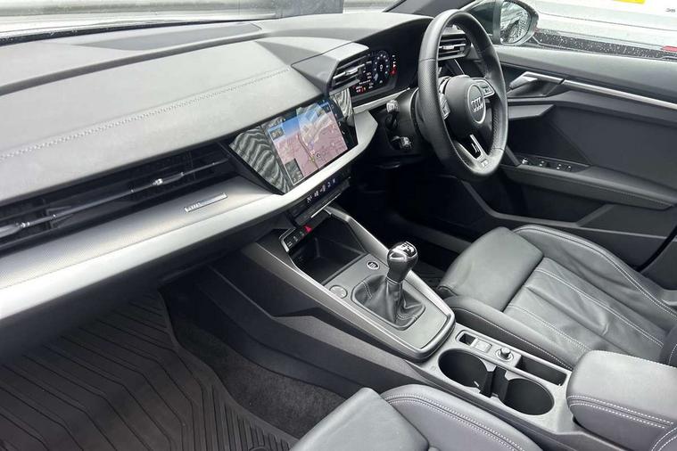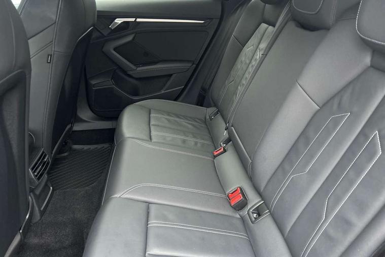 Audi drive select (Auto, Comfort, Dynamic, Efficiency and Individual), Audi smartphone interface, Audi Virtual Cockpit - 10.25" digital and colour instrument cluster, Automatic start/stop system with recuperation, Bluetooth interface, Collision avoidance assistant, Cruise control, e-Call (emergency call), Electromechanical power speed sensitive steering, Lane departure warning system, MMI Navigation Plus with high resolution 10.1" colour touch screen display, Rear parking sensors, Service indicator, Trip computer, Voice control system with natural language interaction, 2xUSB-C connection with data and charging functions, 6 passive loudspeakers, DAB Digital radio, 3rd brake light, Acoustic glass windscreen, Aluminium window trim, Auto dimming frameless rear view mirror, Electrically adjustable/heated/folding/auto dimming door mirrors with integrated LED indications + kerb view function for passenger side, Front electric windows, Illuminated aluminium inserts front door sills with S logo, LED daytime running lights, LED headlights with LED rear lights and dynamic rear indicators, Light and rain sensors, Privacy glass - dark tinted rear window, rear door and side windows, Rear electric windows, Rear side air outlets in grained matt black, Rear side wing doors, Rear wiper, S line bumpers, S roof spoiler, 12V socket and storage compartment in front centre console, 3 seat bench in 2nd row, 40/20/40 split folding rear seat bench with cupholder, Black cloth headlining, Dual zone electronic climate control, Front and rear centre armrest in leather, Front and rear headrests, Front/rear floor mats, Height and reach adjustable steering wheel, Illuminated vanity mirror, Interior lighting - glove compartment light and right hand side, Luggage compartment floor covering, Manual boot compartment lid, Manually adjustable front seats, Seat side bolsters, Single front passenger seat, Stainless steel pedals and front footrest in black, Twin leather upholstery with front sports seats S embossed logo, Aluminium interior elements pack - A3 Sportback, S line styling pack - A3 Sportback, 3x3 point rear seat belts, Audi pre sense front, Driver and front passenger airbag with passenger airbag deactivation, Electronic Stabilisation Control (ESC) including ABS, ASR and EDL, First aid kit with warning triangle and 2 safety vests, Front side airbags with head airbags and interaction airbag, Pre-sense front with pedestrian and cyclist detection, Seatbelt monitoring, Tyre pressure loss indicator, Anti theft alarm, Anti-theft wheel bolts, Immobiliser, Manual child locks, Remote control central locking, Accent surfaces in the dashboard and centre console in platinum grey silk effect paint finish, Dark spectrum aluminium inlays,